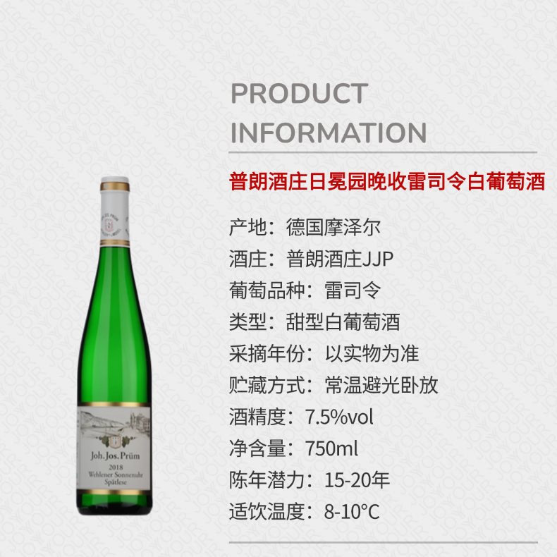 普朗酒庄日晷园晚收雷司令甜白葡萄酒 商品图4