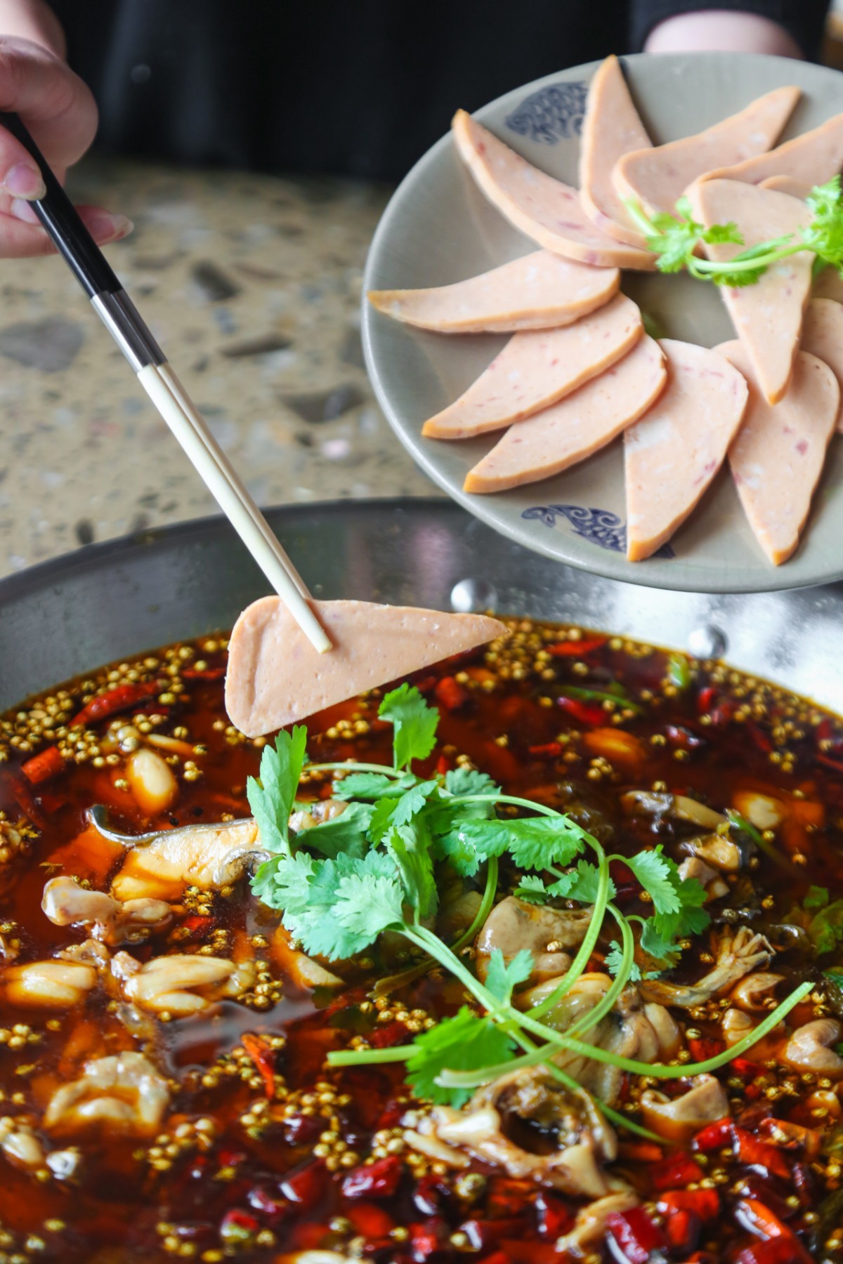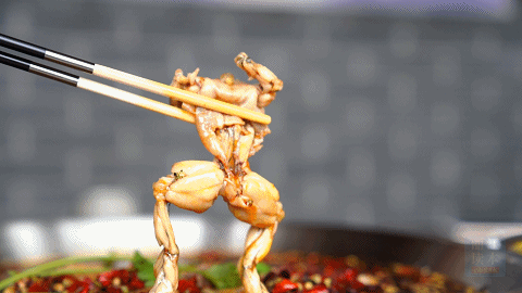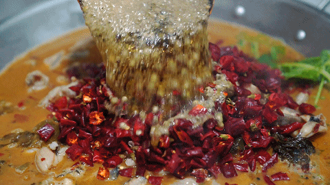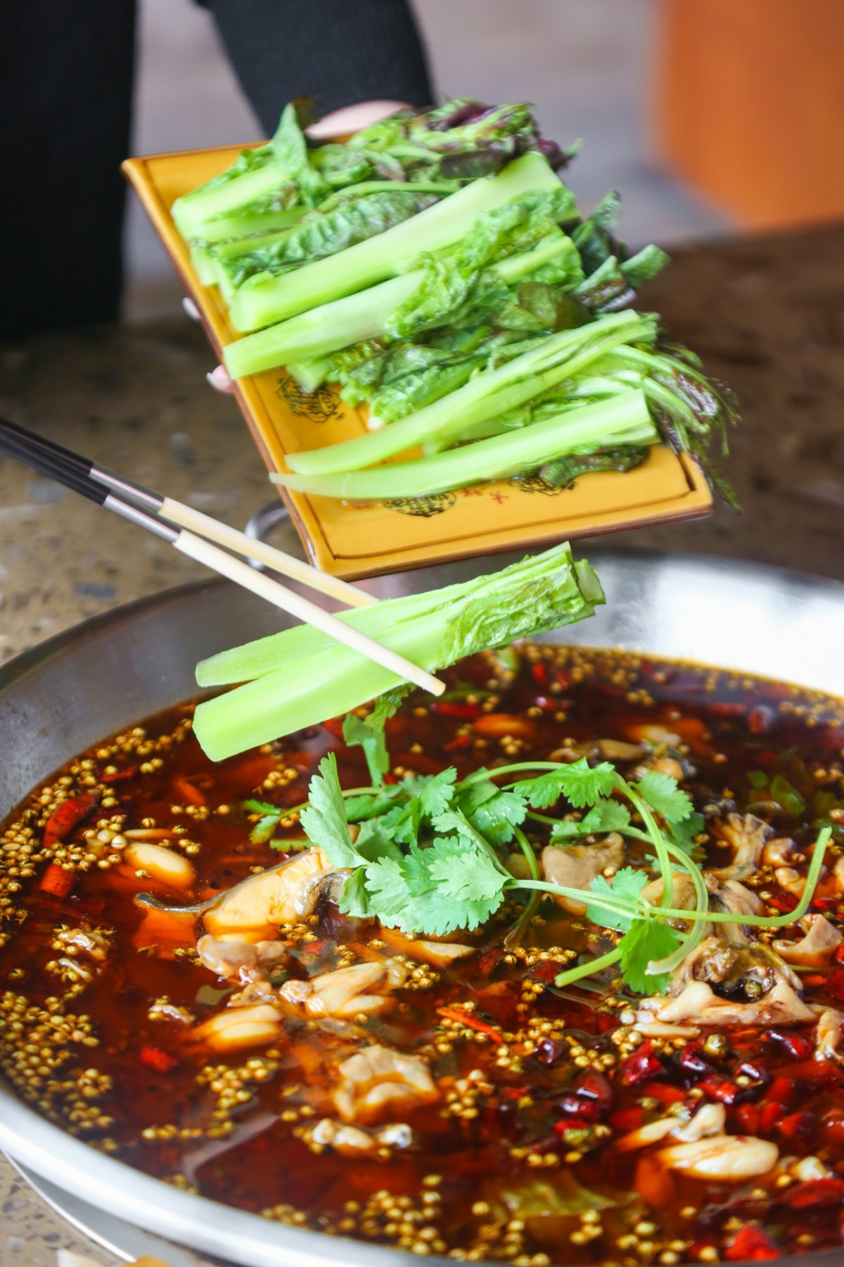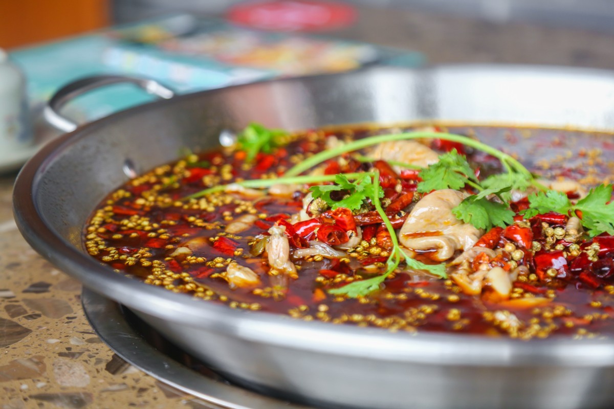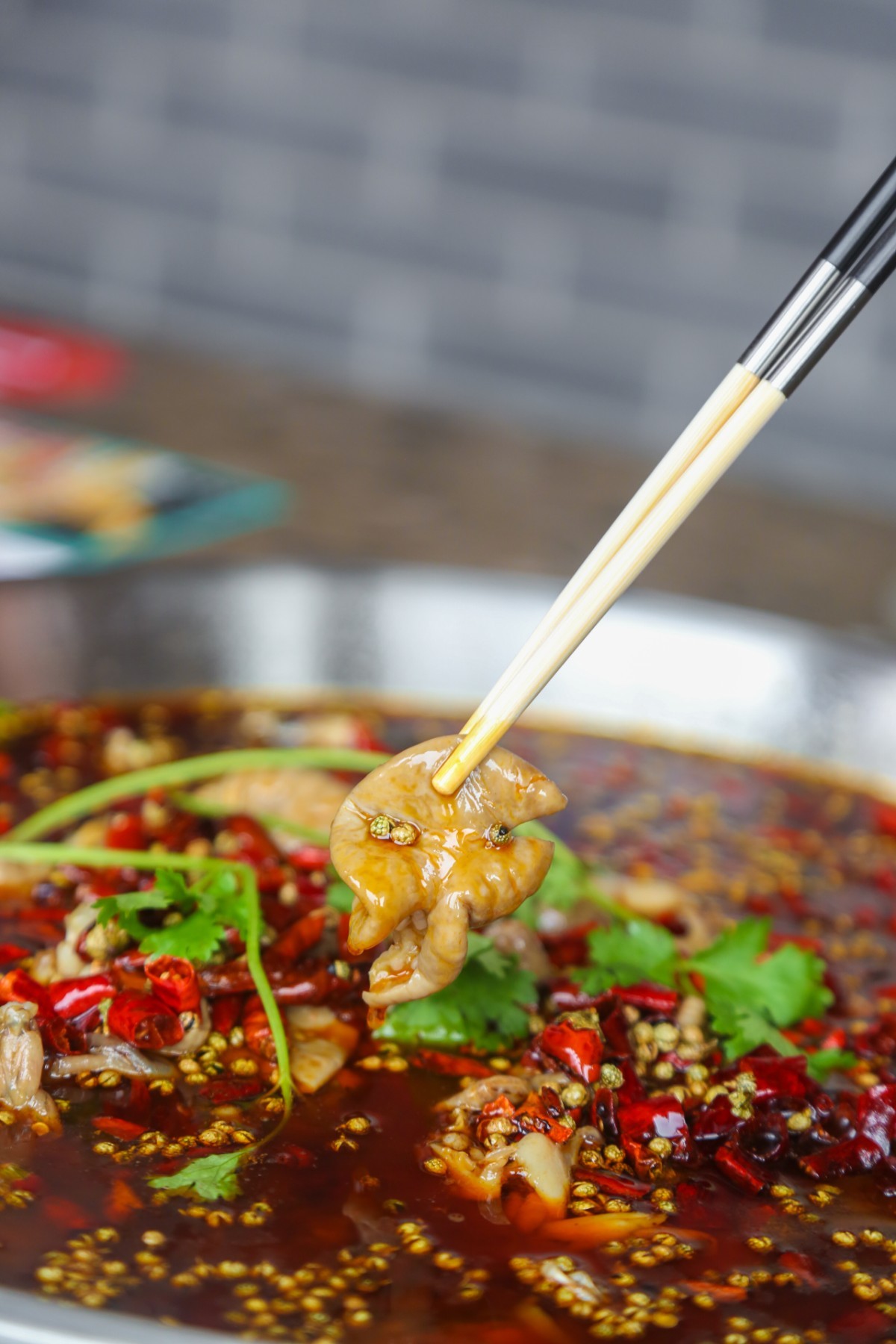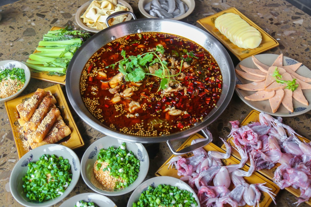 一整只蛙从红汤捞出,每寸肌理都挂满汤汁