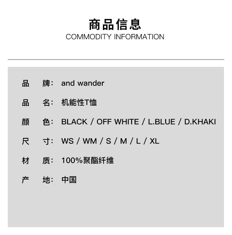 and wander dry mesh T 男女吸湿速干机能性圆领短袖T恤