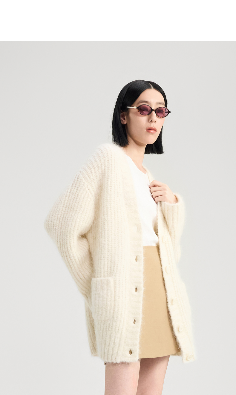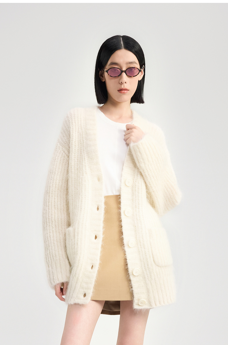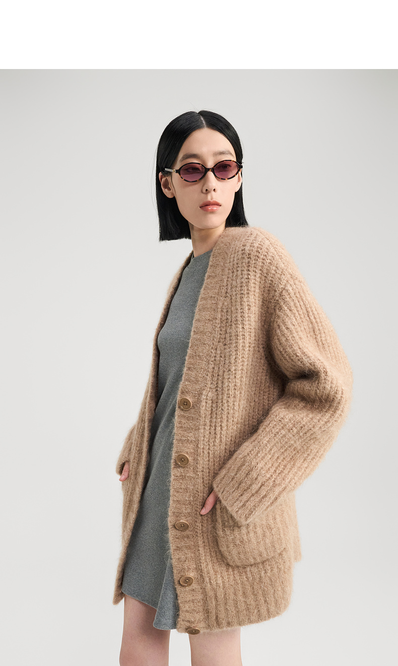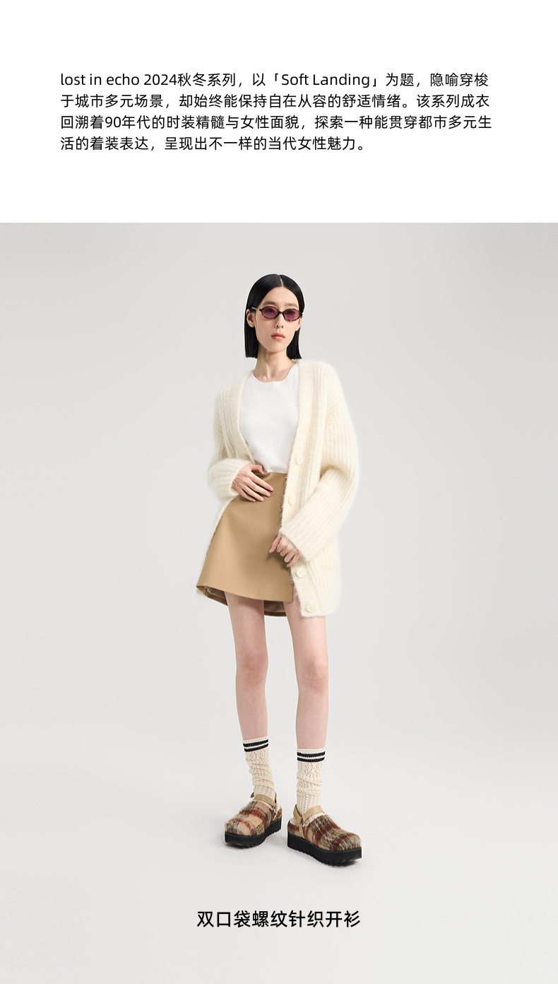 [福利价]lost in echo2024秋冬新款双口袋螺纹针织开衫外套女