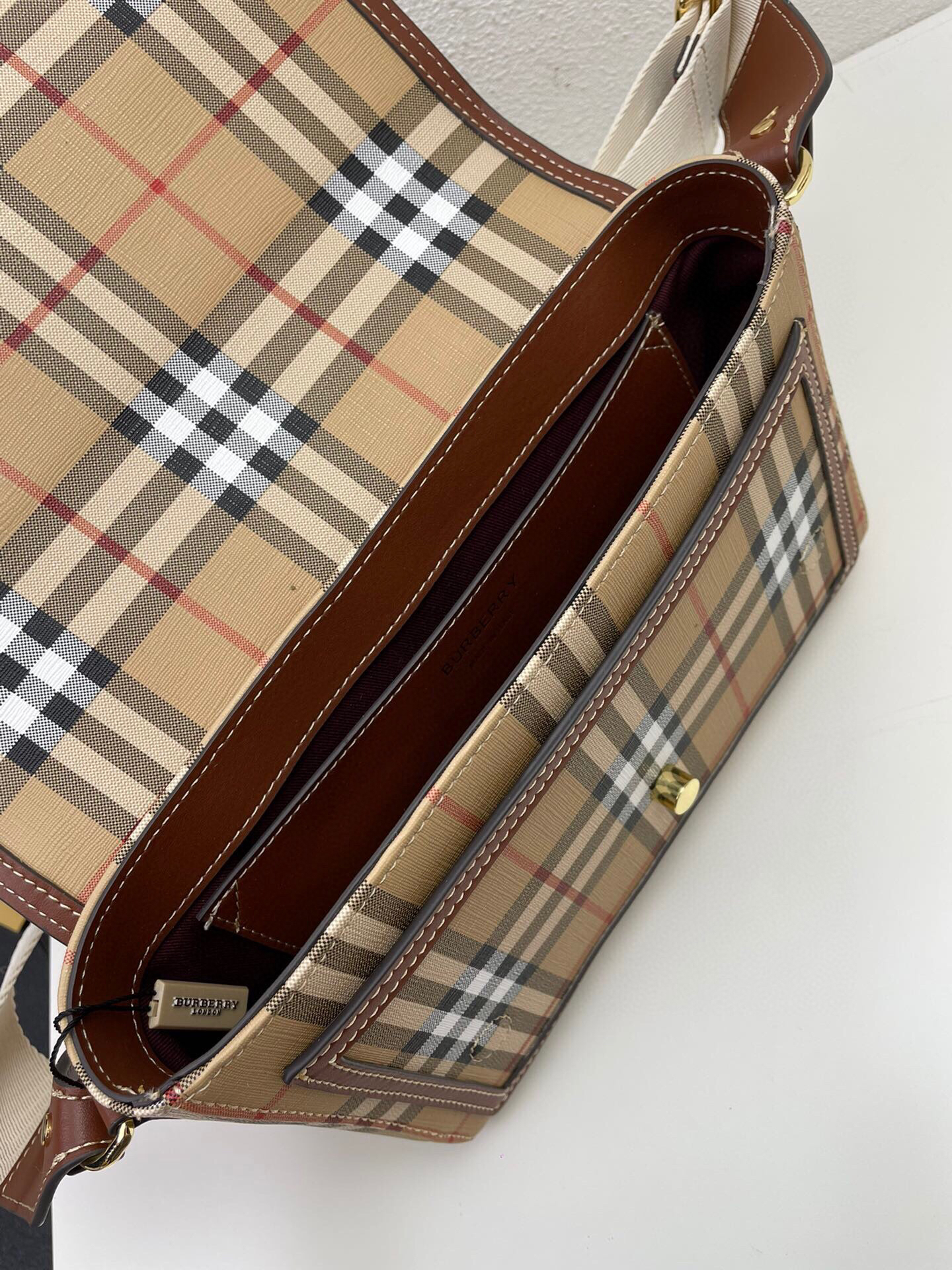 ,精选缉明线皮革与帆布打造,装饰品牌时装秀款 Horseferry 印花,设有精美的徽标镌刻按扣。随心打造斜背、肩背或手拿包造型。