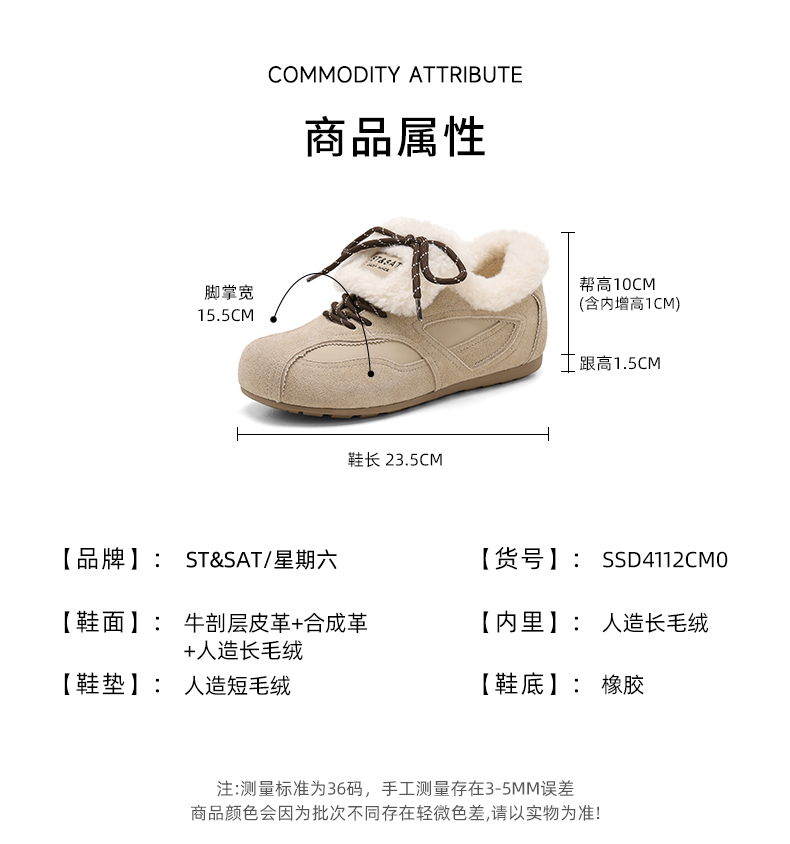 星期六复古休闲绒绒内里泰迪德训鞋SSD4112CM0