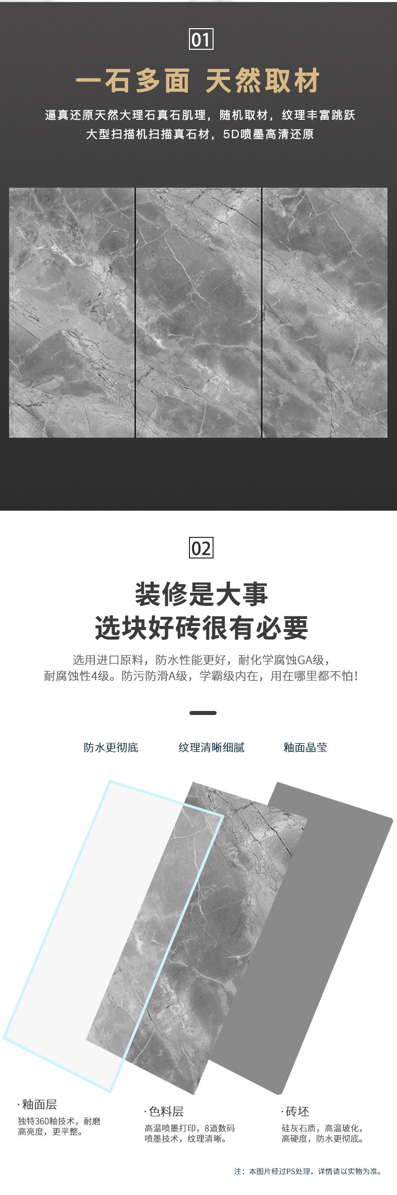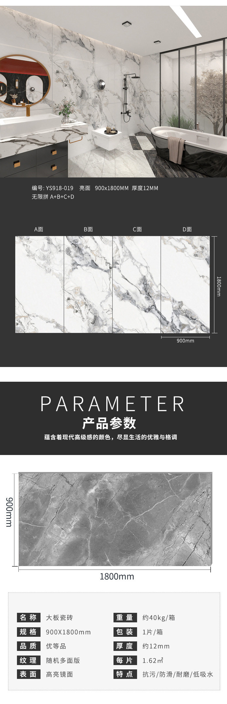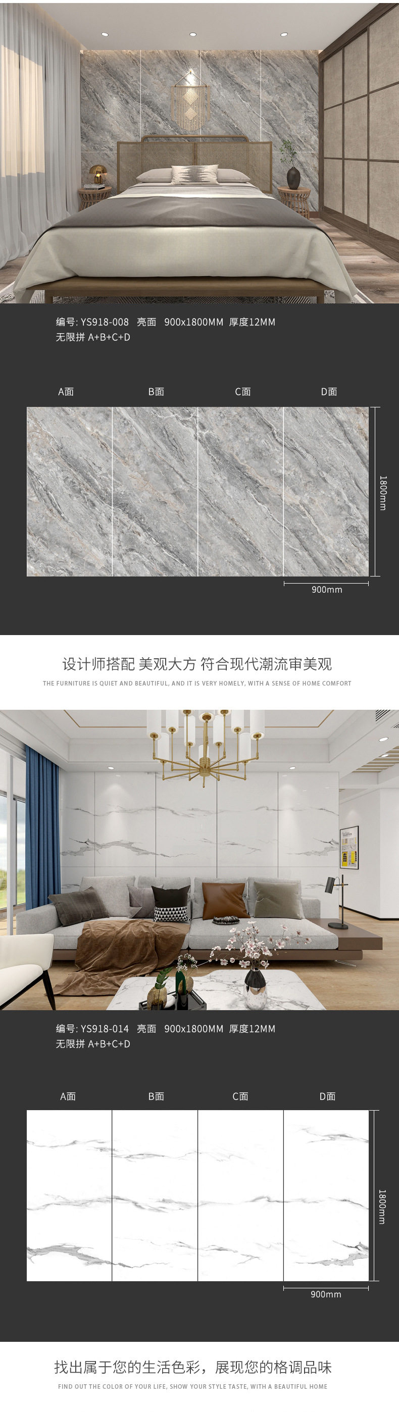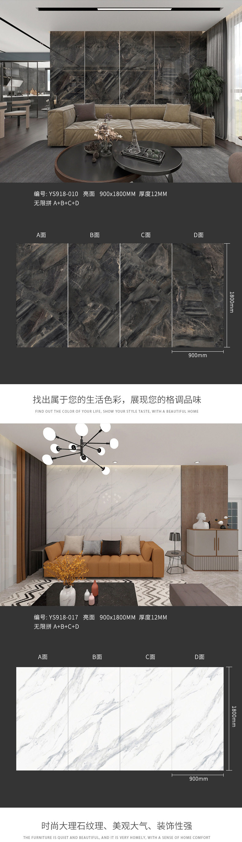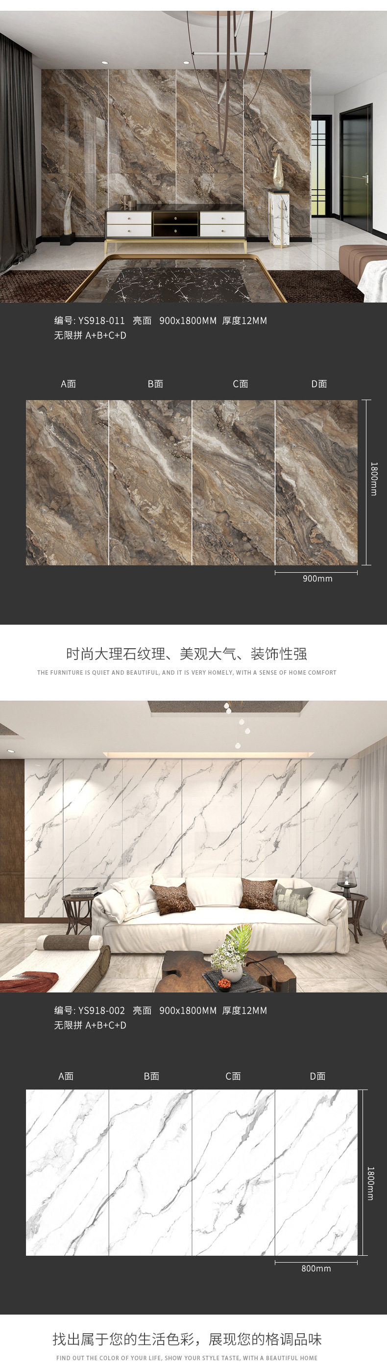 背景连纹900亮光1800规格别墅大板客厅*通体岩板地板砖大理石大 商品图2