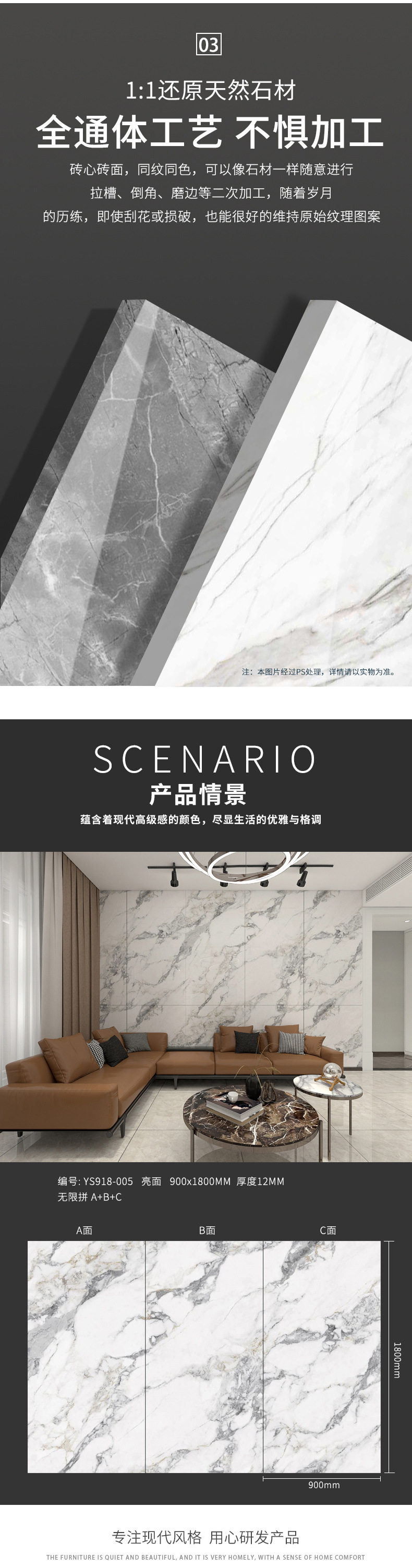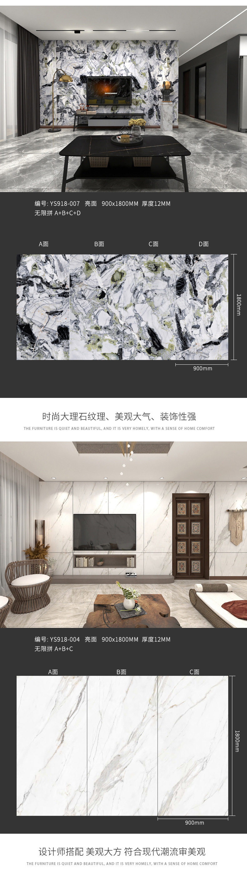 背景连纹900亮光1800规格别墅大板客厅*通体岩板地板砖大理石大 商品图4