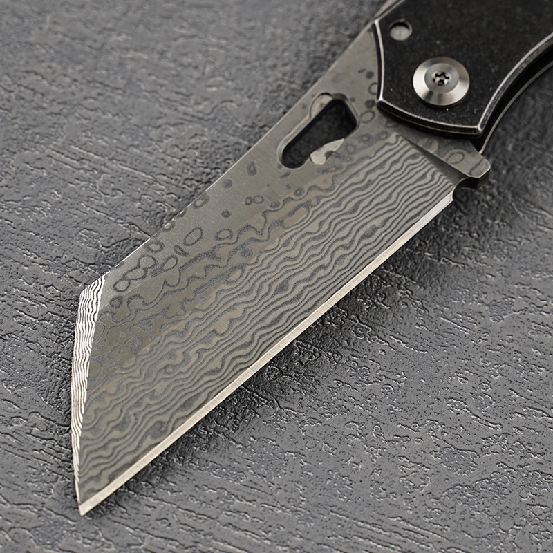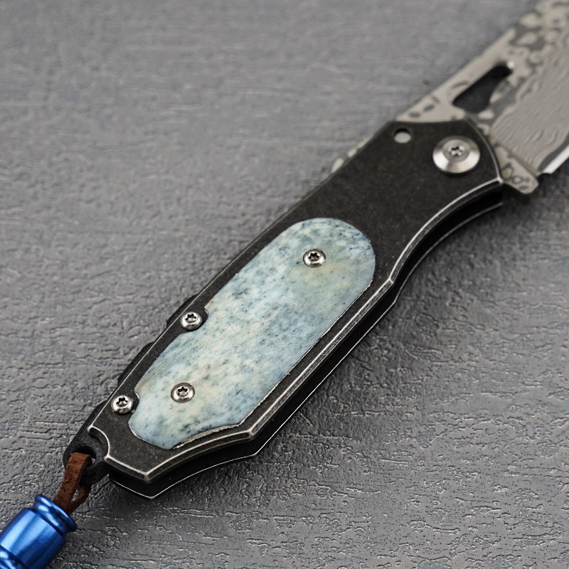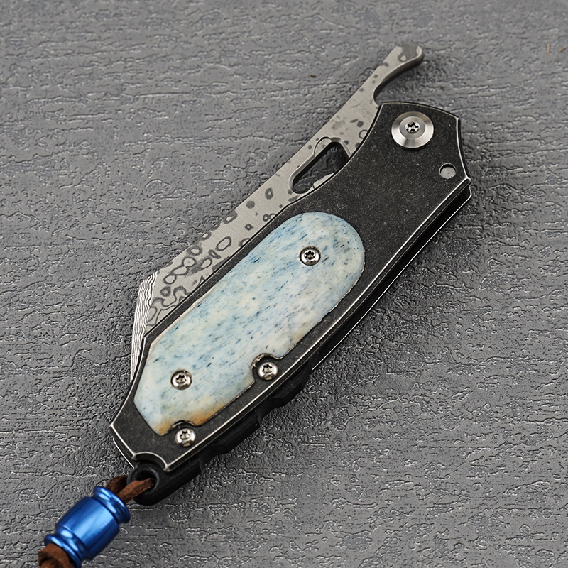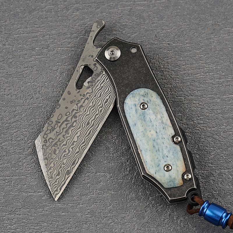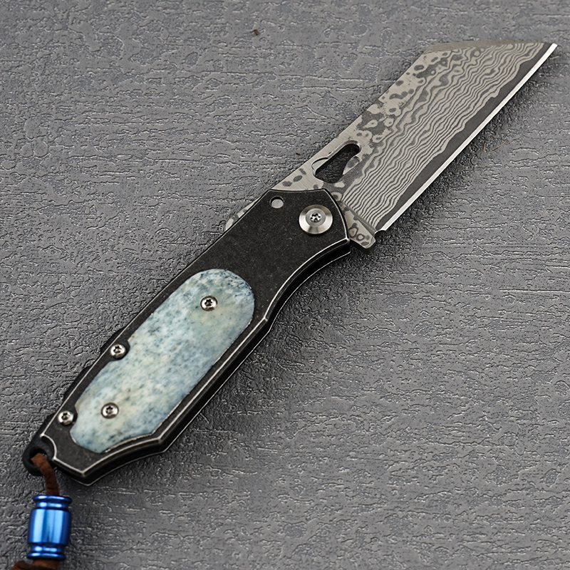 小犀牛VG10夹心层大马士革钢手工折叠刀防身刀牛骨手柄