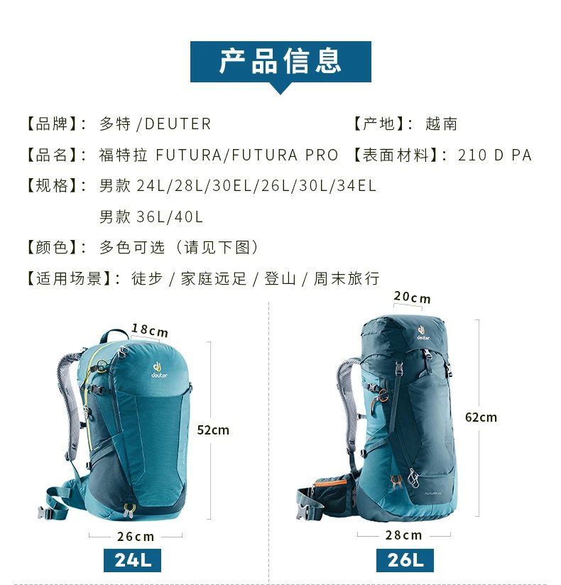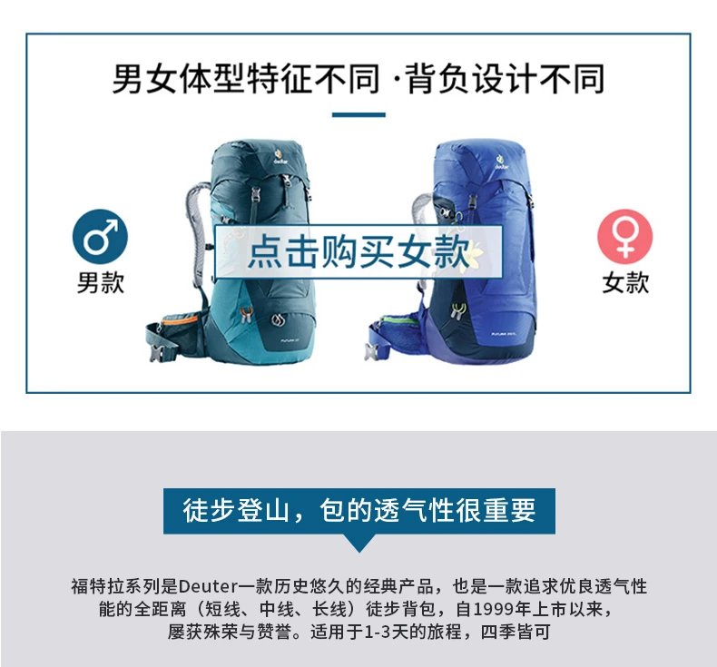 多特DEUTER男款福特拉双肩包大容量男户外登山包徒步防水运动背包