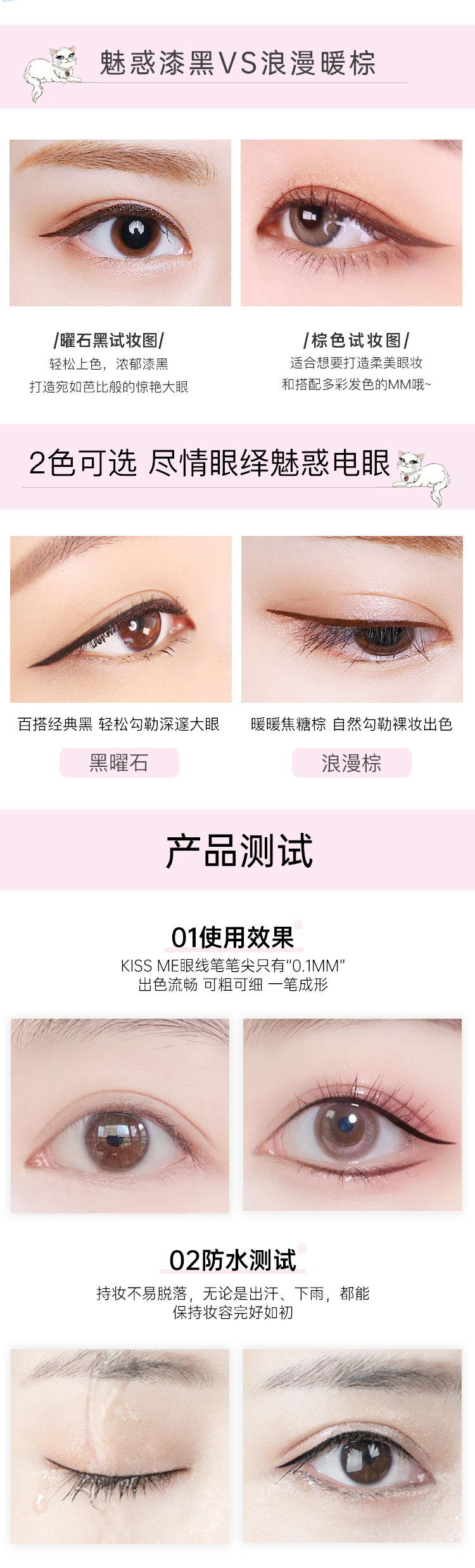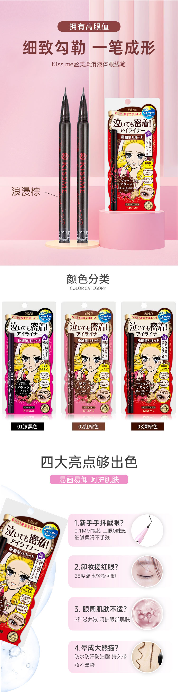 【中欧班列精选】kissme日本奇士美防水眼线液笔新手笔纤细持久不晕染黑棕眼线胶笔