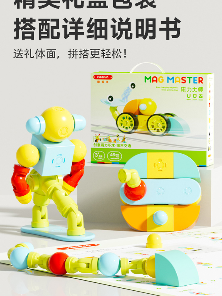 【强磁吸附 轻松实现城市交通】MAGFUN酷彼伴DIY磁力积木 城市交通系列 各种形状 大小积木块 自由搭建各种造型 2-8岁