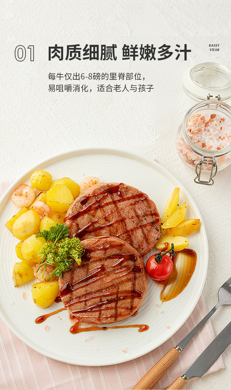 小牛凯西进口整切菲力牛排(130g/片)赠送黑椒酱20g