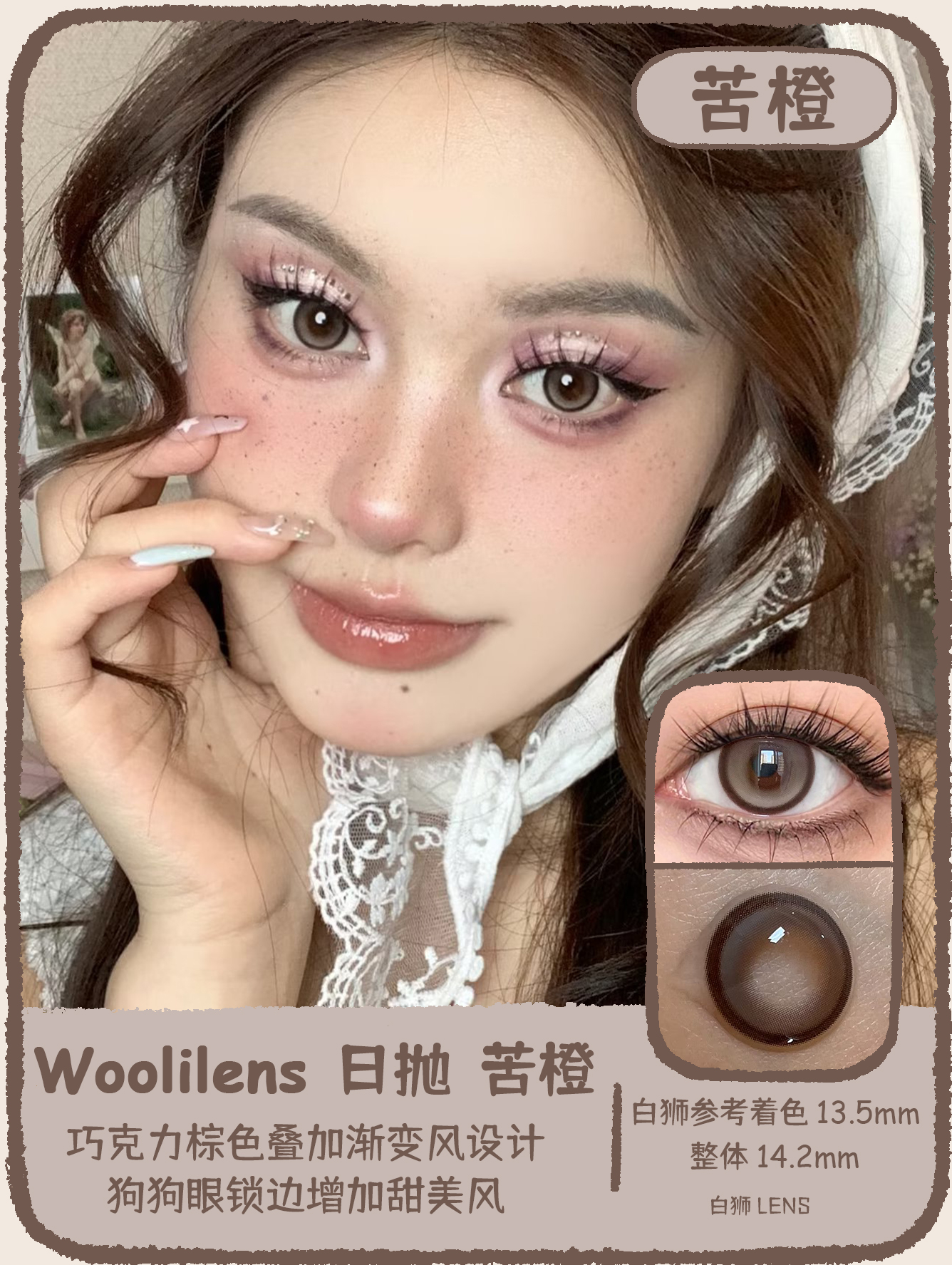 Woolilens旗下 | 蔚蓝&苦橙&半岛铁盒| 14.2mm白狮参考着色中大直径 日抛 一盒十片装