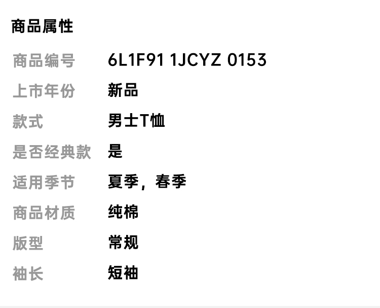 EMPORIO ARMANI 阿玛尼 男士短袖T恤 白色 6L1F91 1JCYZ 0153