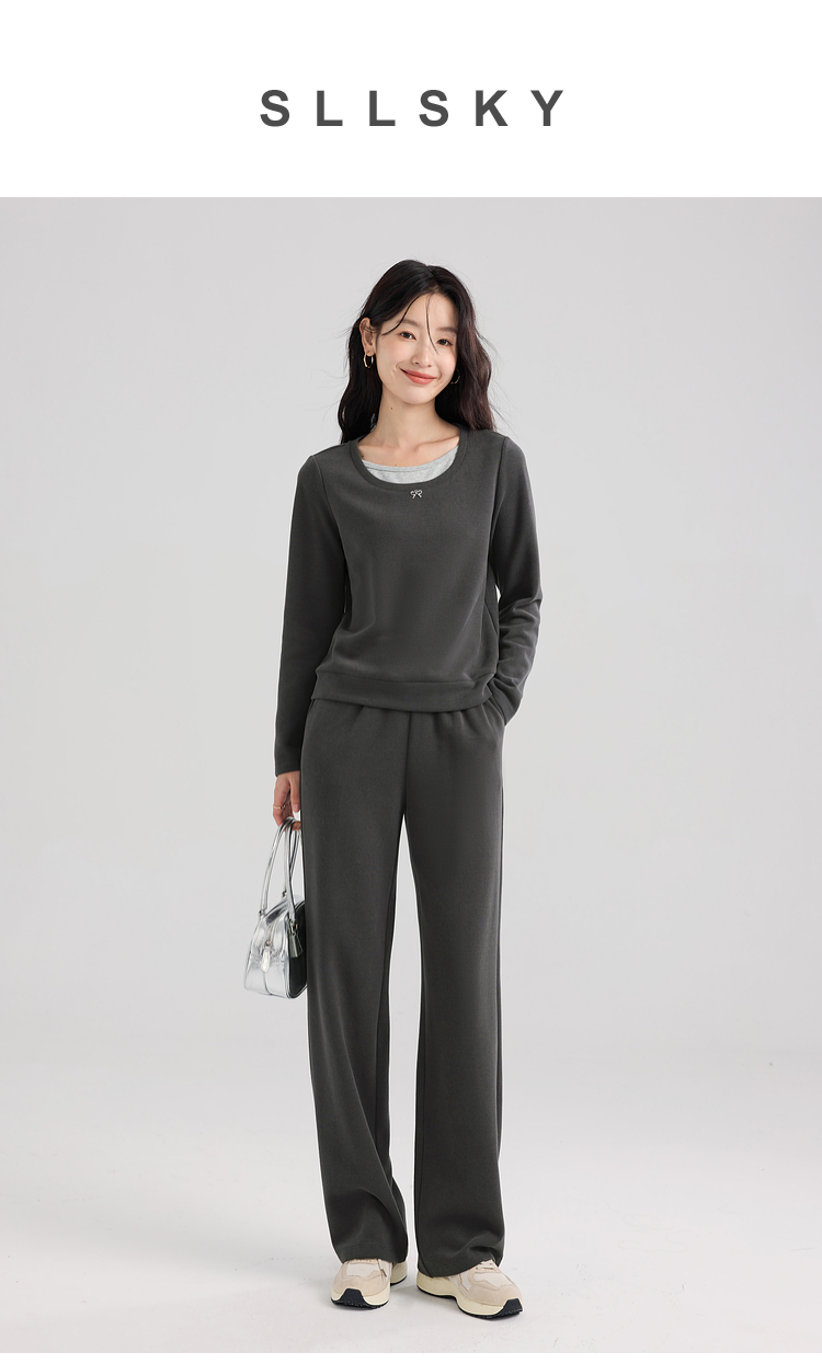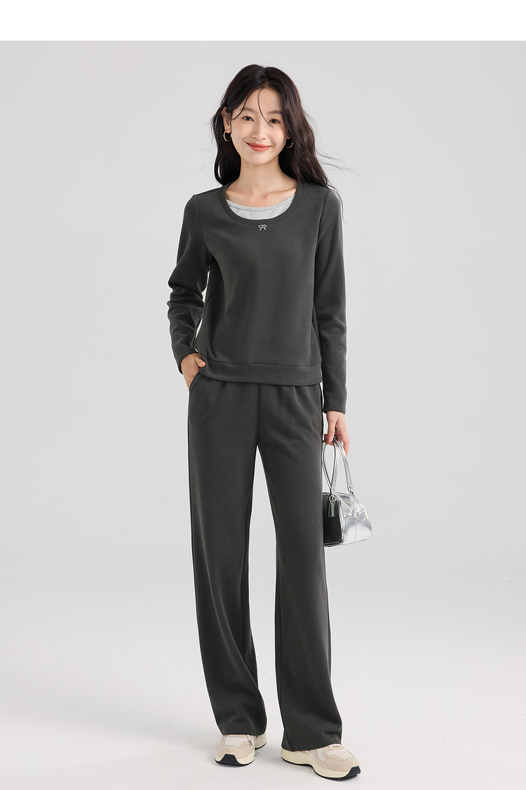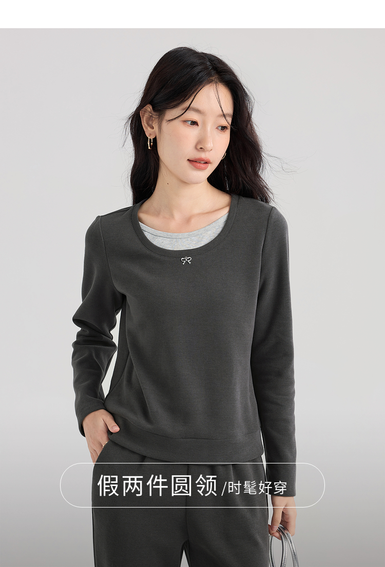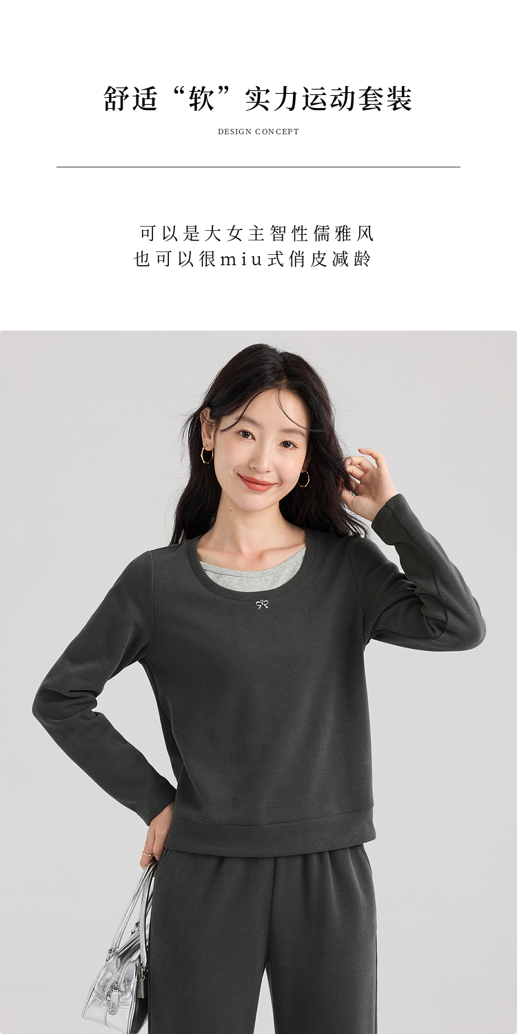 【专属特价】熙世界运动卫衣套装时尚假两件上衣休闲裤两件套一整套入秋穿搭