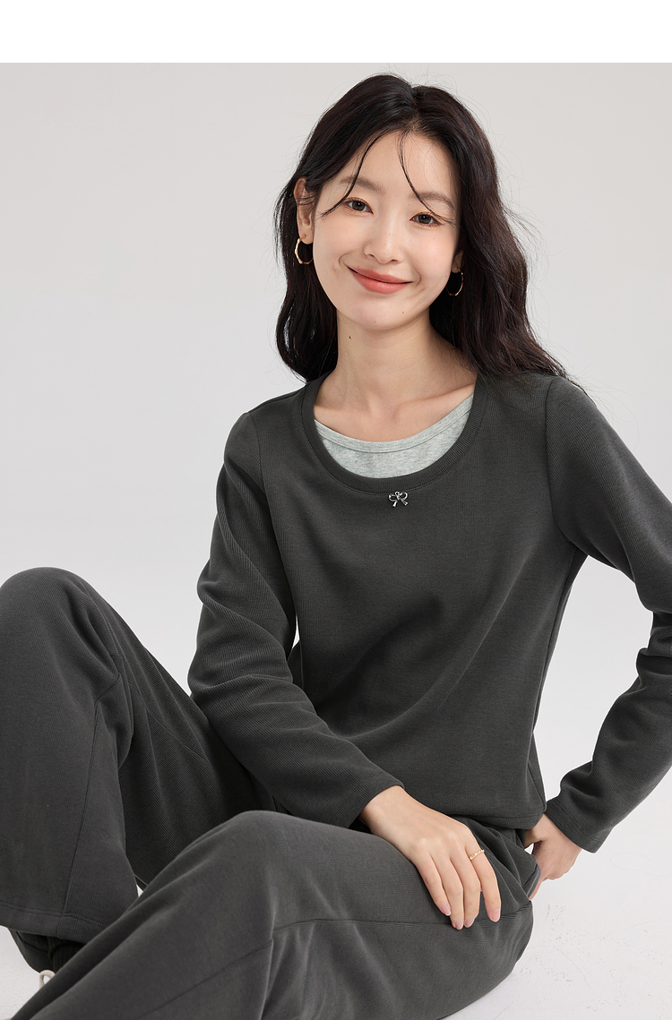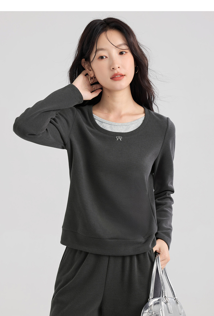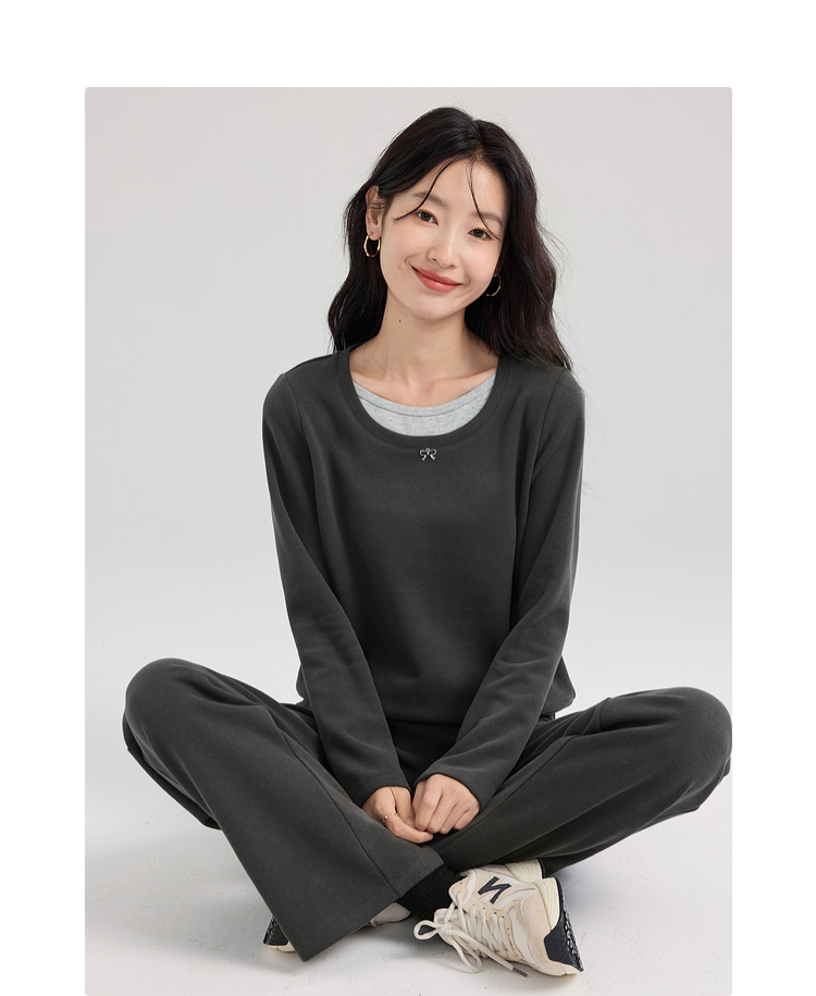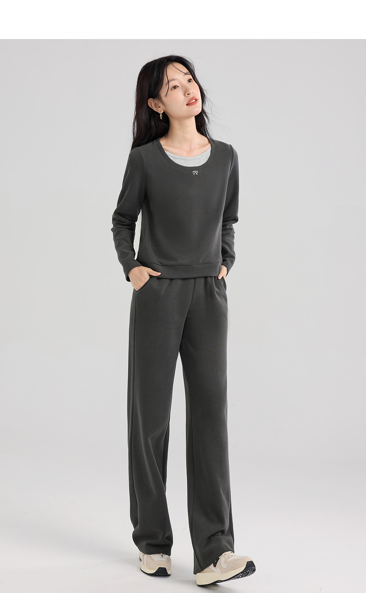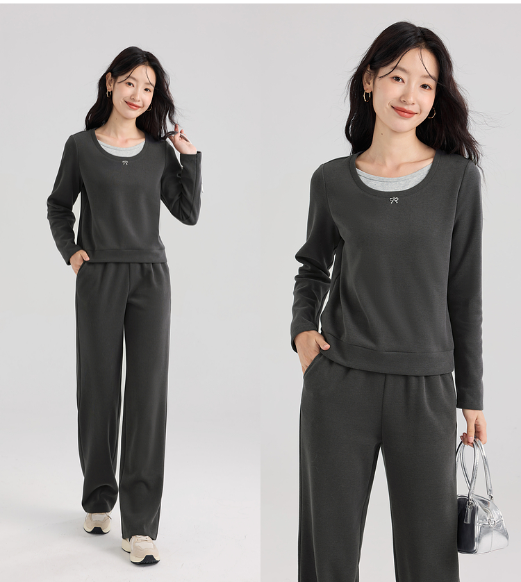 【专属特价】熙世界运动卫衣套装时尚假两件上衣休闲裤两件套一整套入秋穿搭