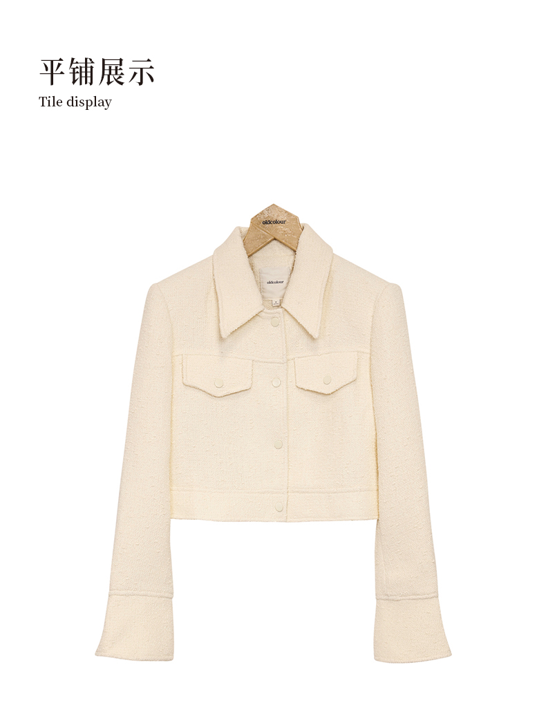 oldcolour白色短款外套春季新款小香风气质直筒上衣女P11041169