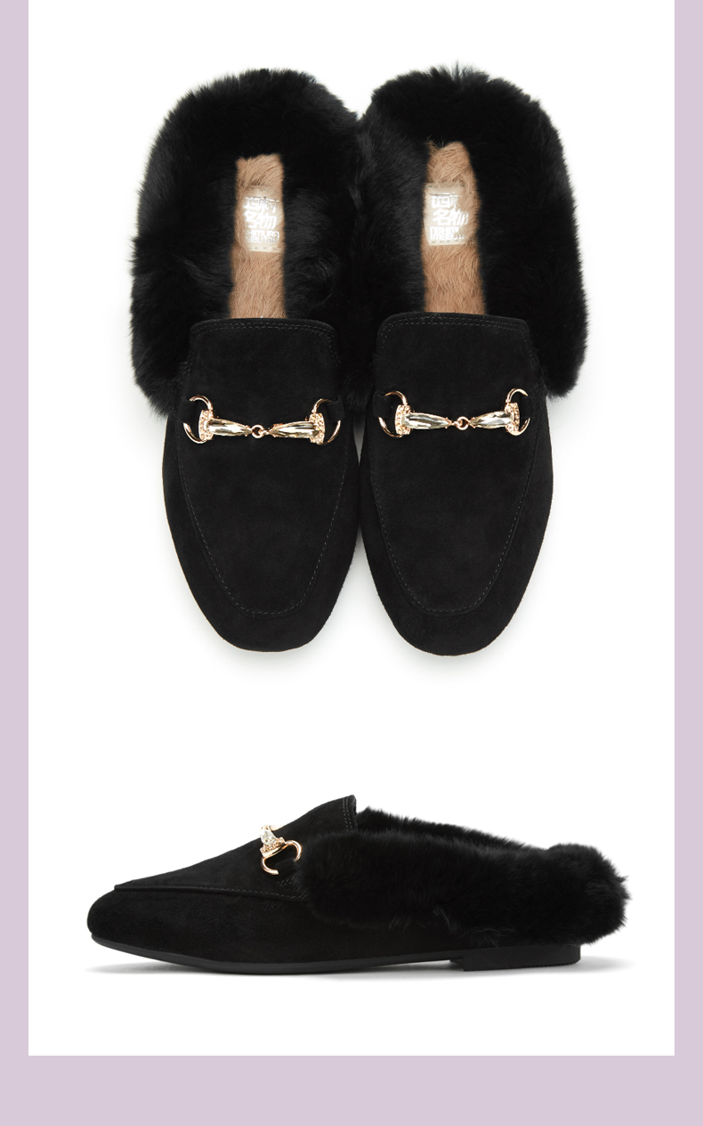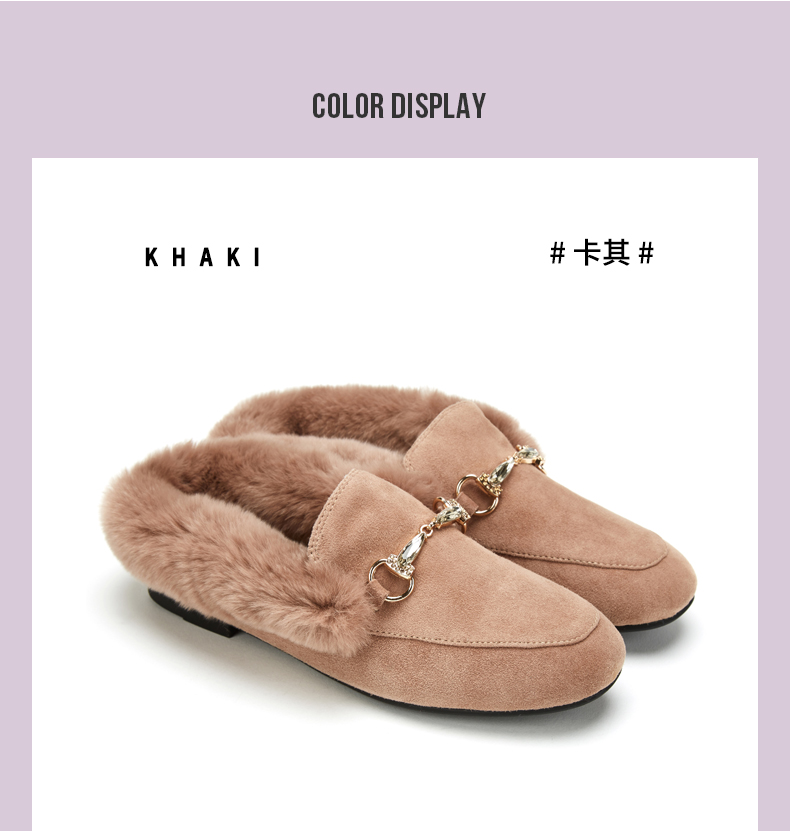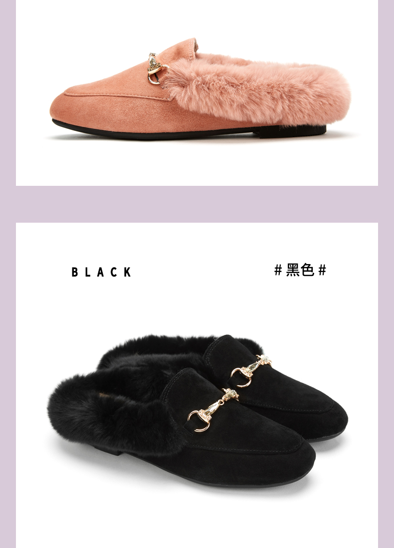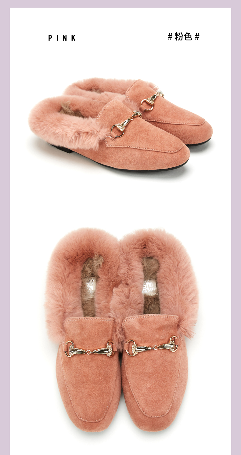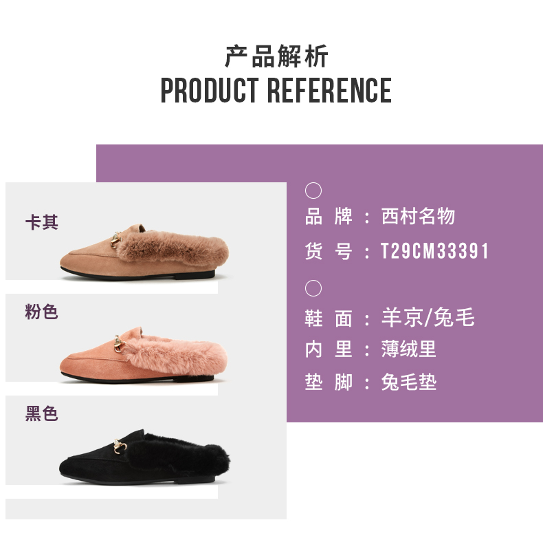 西村名物2020冬季新款毛毛鞋女穆勒拖鞋时尚平底圆头加绒鞋T29CM33391