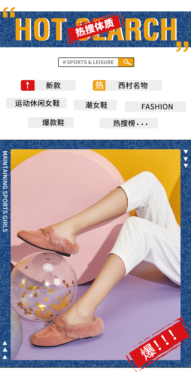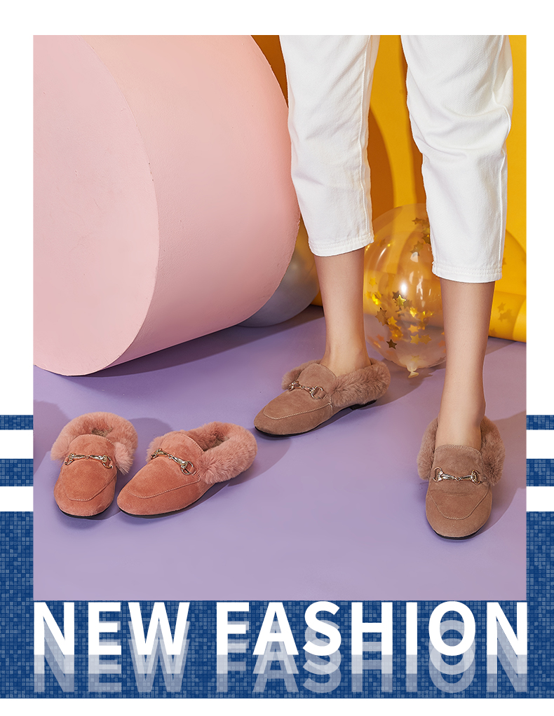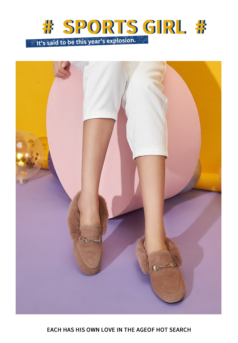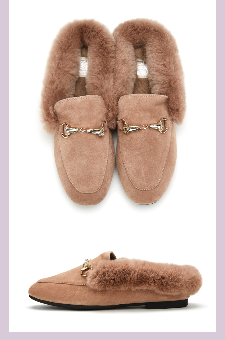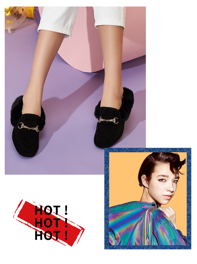 西村名物2020冬季新款毛毛鞋女穆勒拖鞋时尚平底圆头加绒鞋T29CM33391