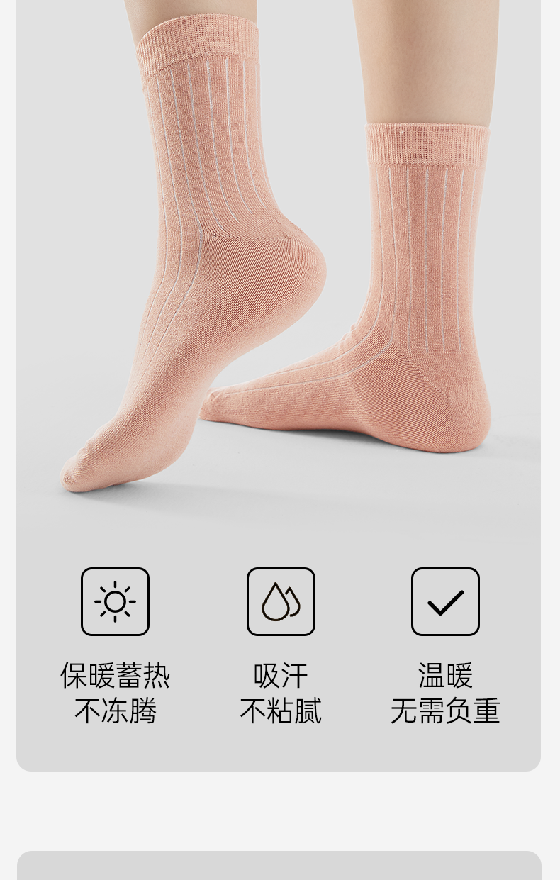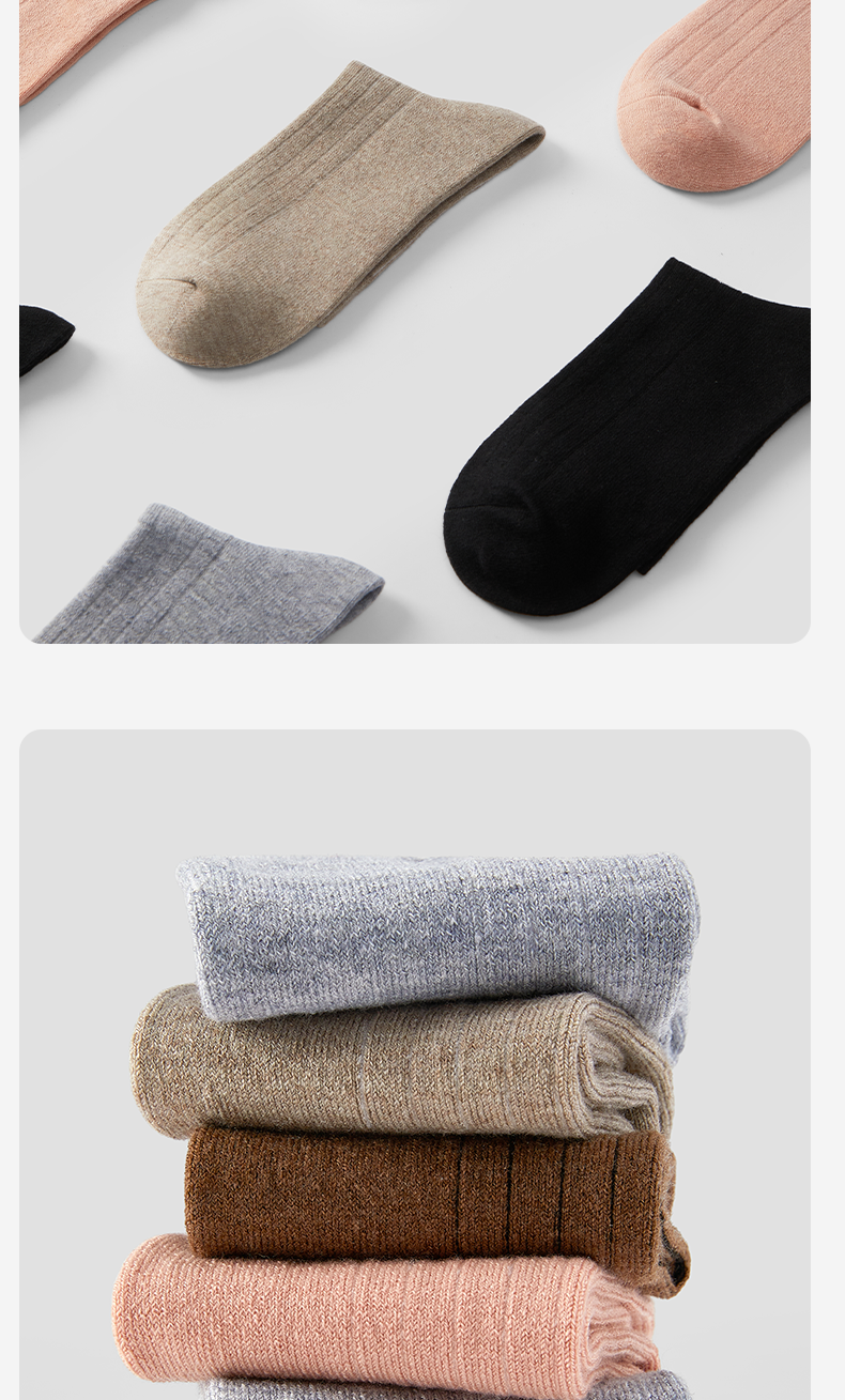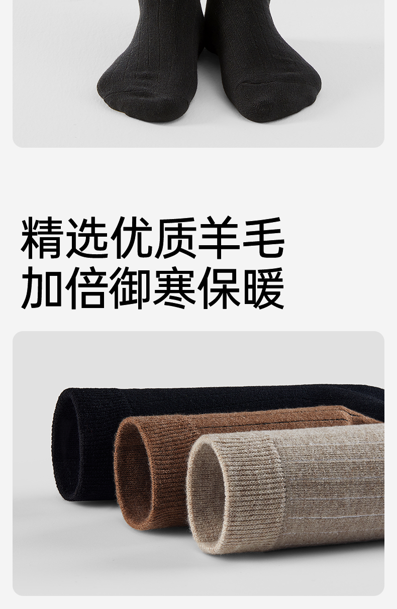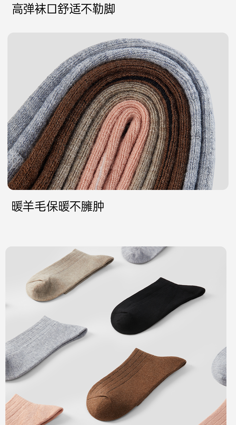 洁丽雅4双装女士保暖羊毛袜御寒柔软舒适防静电中筒袜