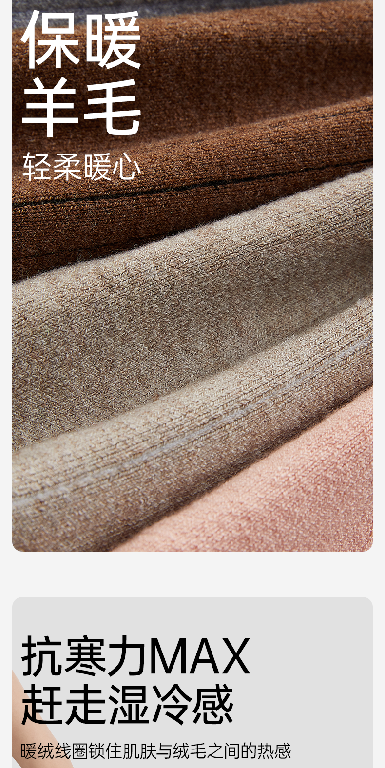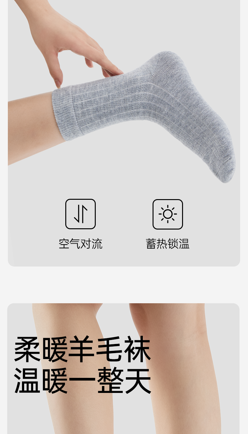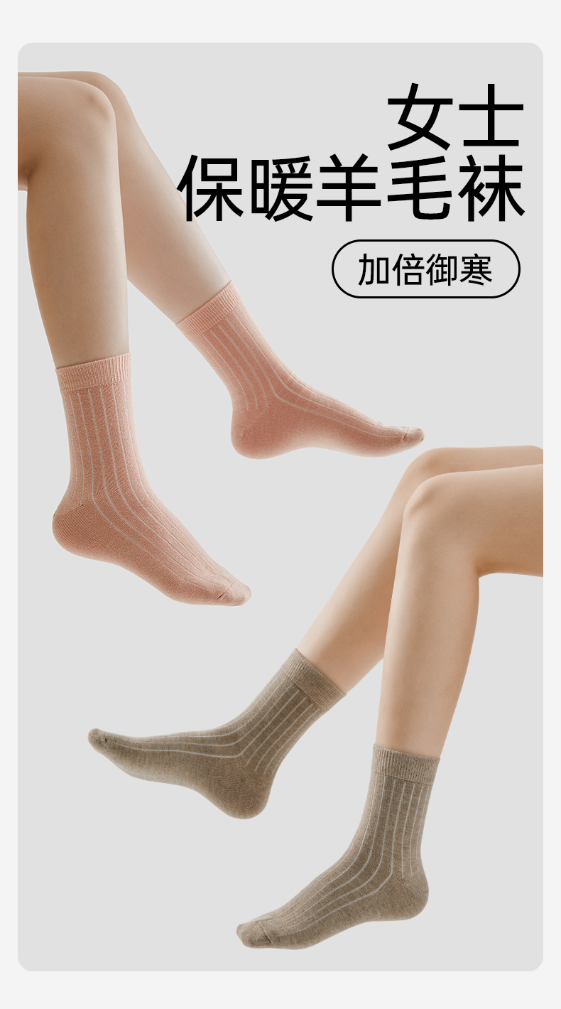洁丽雅4双装女士保暖羊毛袜御寒柔软舒适防静电中筒袜