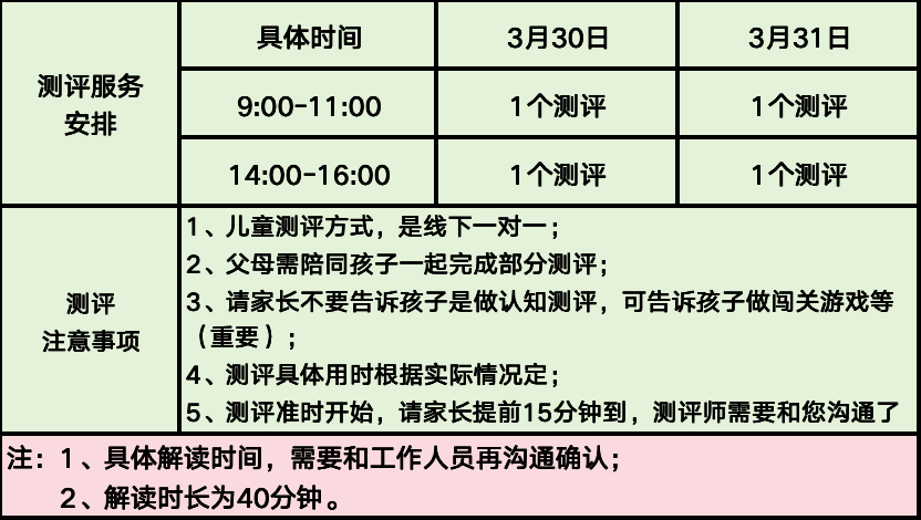 该套测评会对儿童的综合学习能力、家庭成员互动模式和父母性格特质等内容进行全面检测;专家团队也会全方位多维度的对结果进行分析解读,帮助父母探究家庭教育环境下如何更有效地发挥孩子潜能、助力孩子心智成长,并为父母提供切实有效且可行的培养方向和计划。