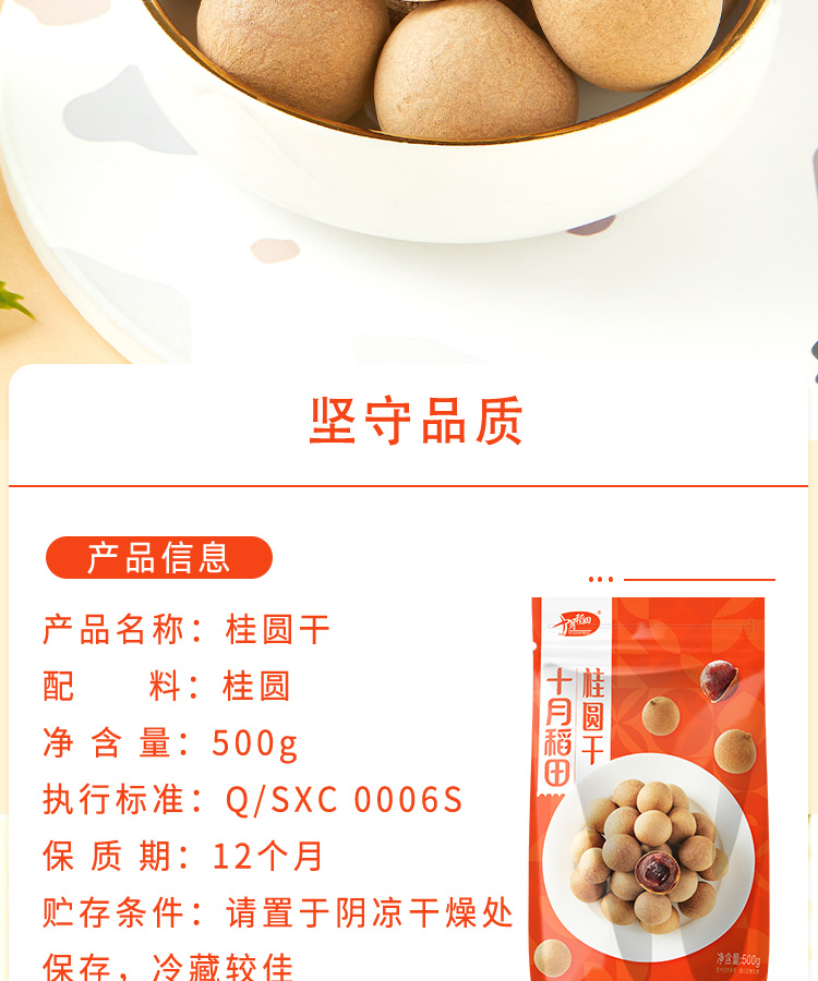 十月稻田 桂圆干500g/袋 干货 龙眼 桂圆 肉干 肉厚 核小 泡水煲汤 包邮