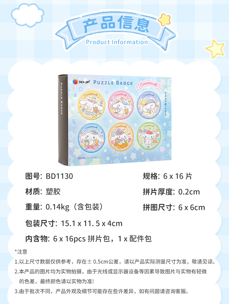 96片 徽章拼图塑料拼图 BD1130 云上童话-Cinnamoroll系列