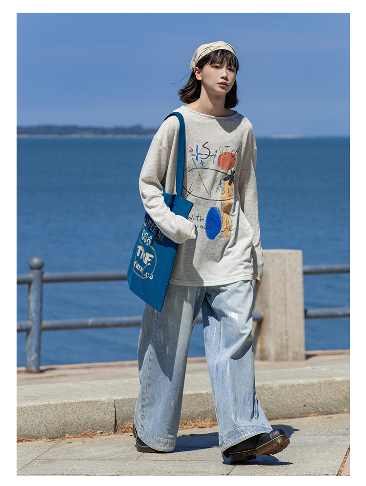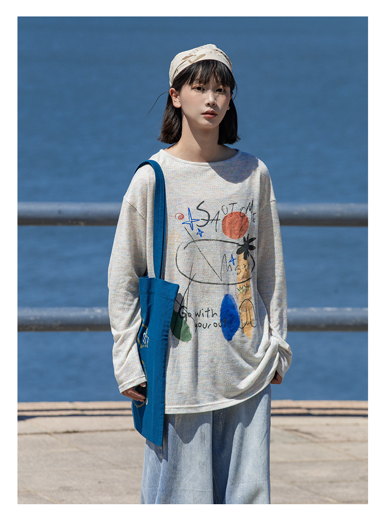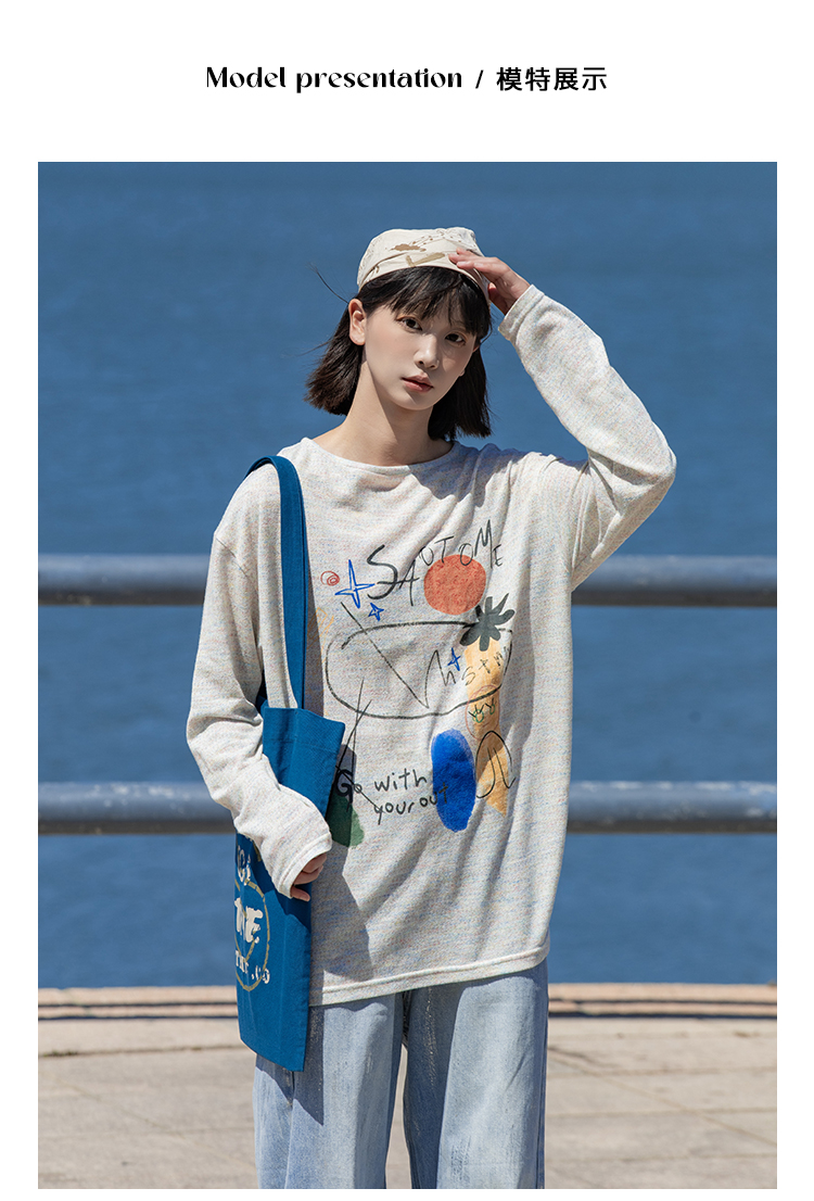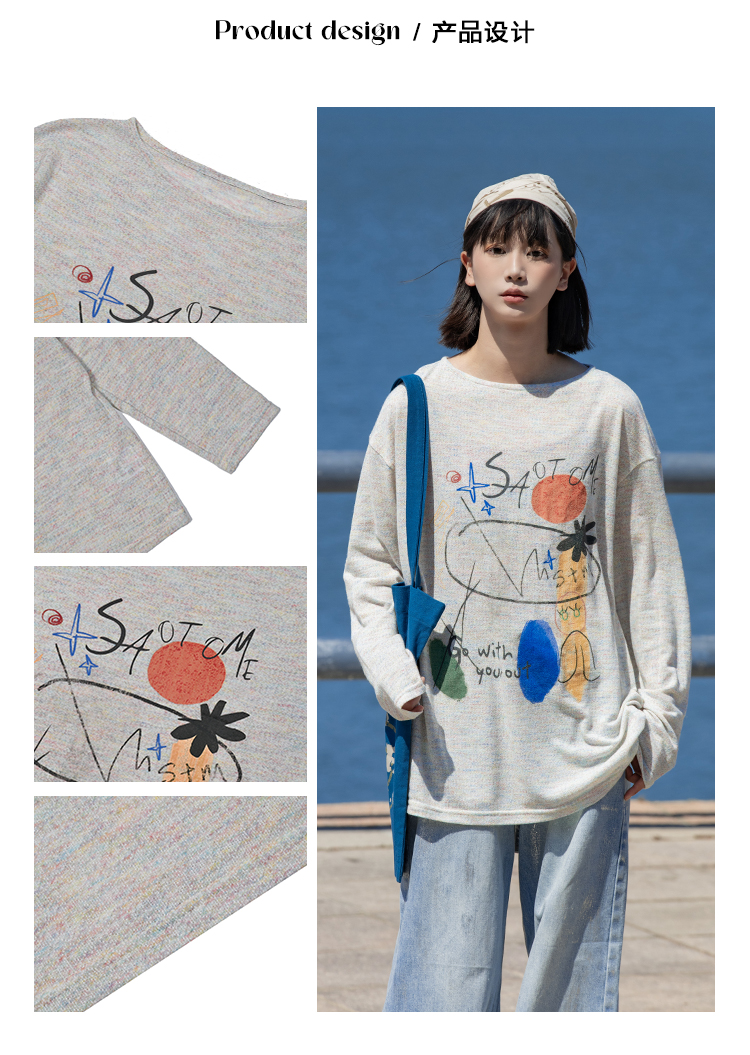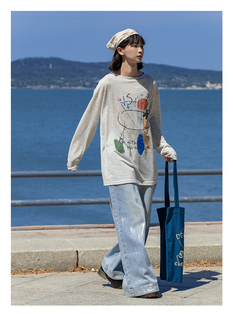 早乙女惠子saotome/STMCX243158/彩棉涂鸦印花轻薄罩衫T恤