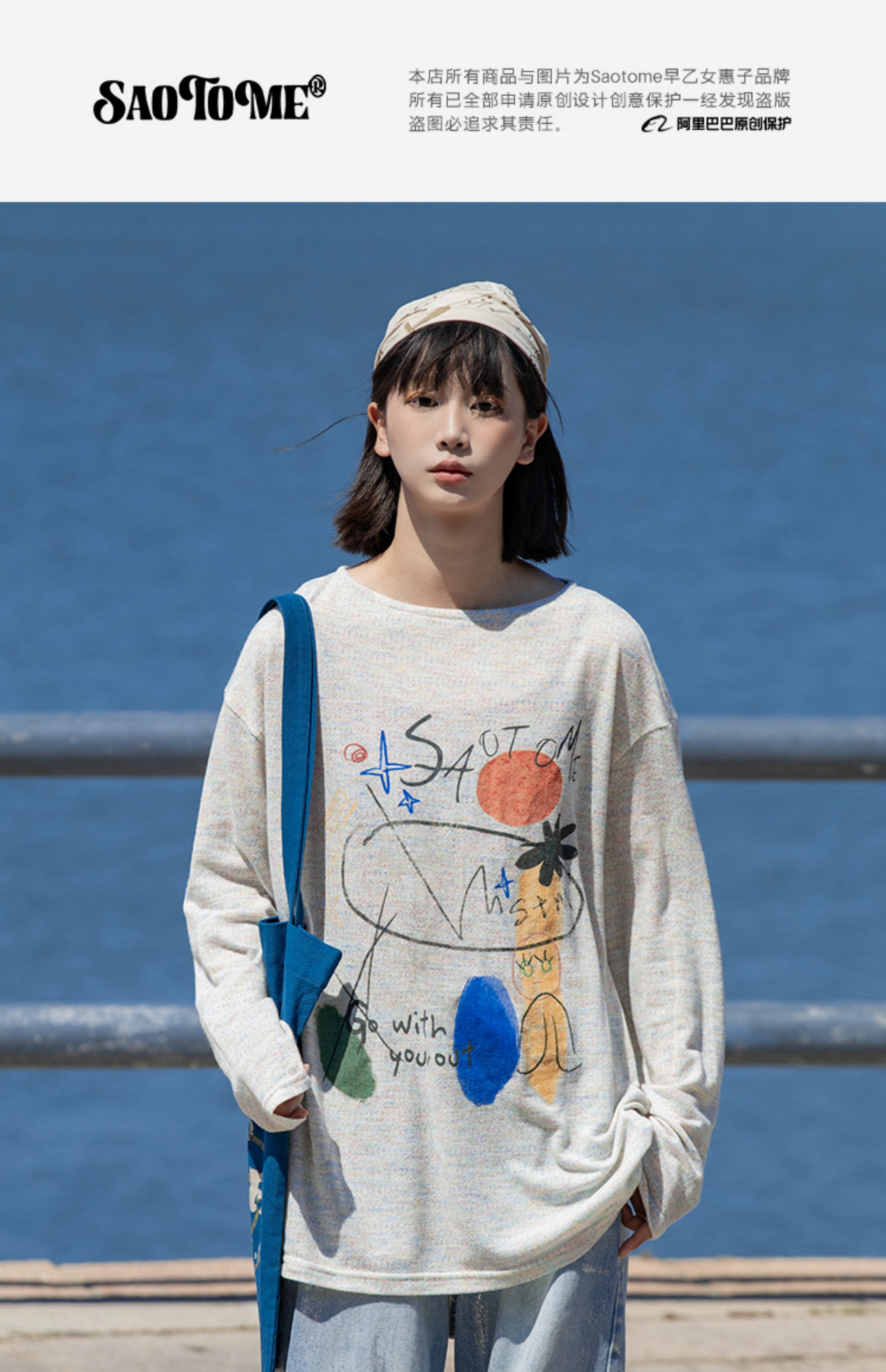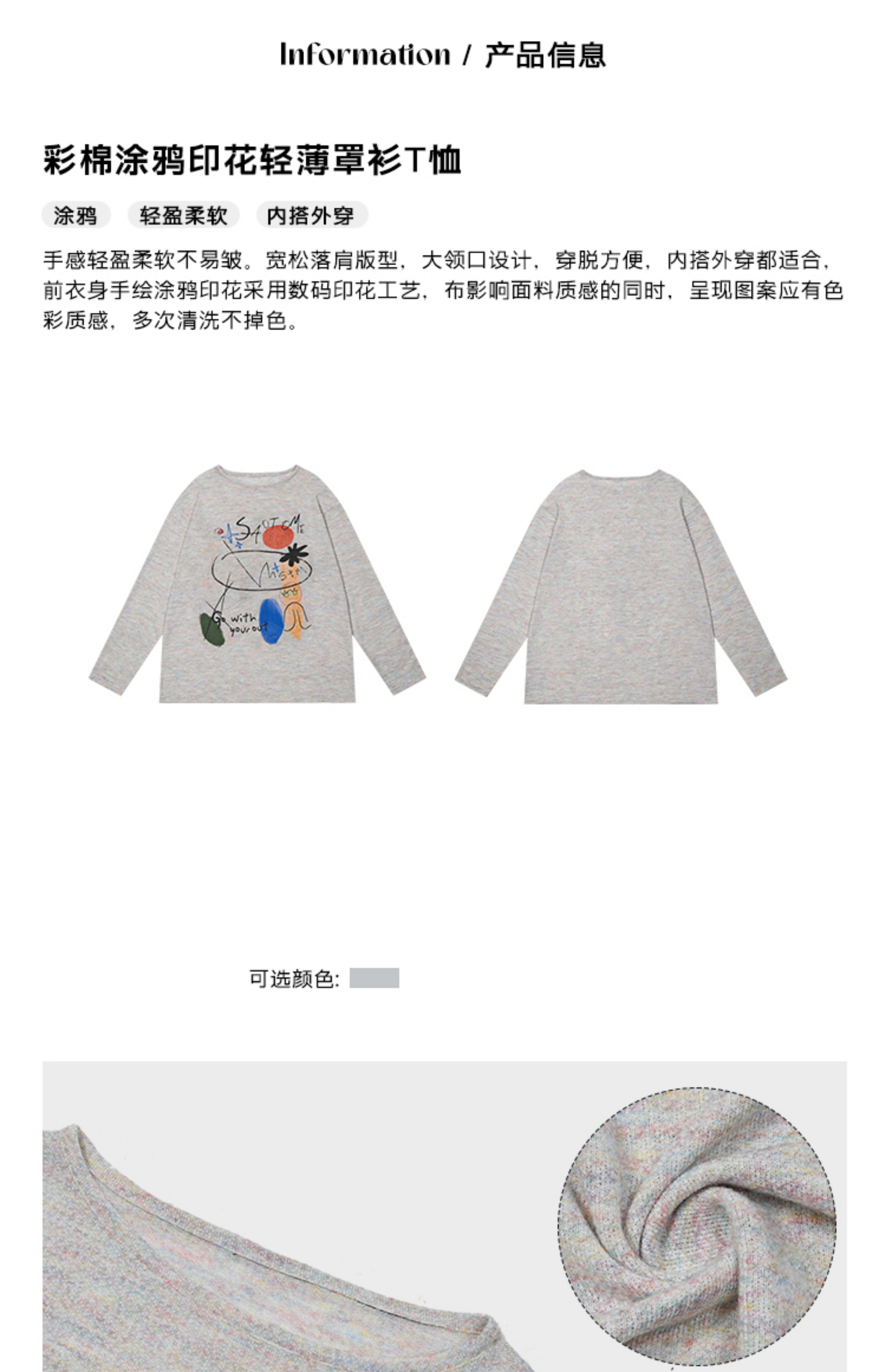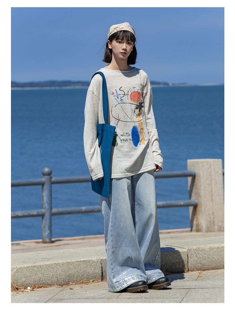 早乙女惠子saotome/STMCX243158/彩棉涂鸦印花轻薄罩衫T恤