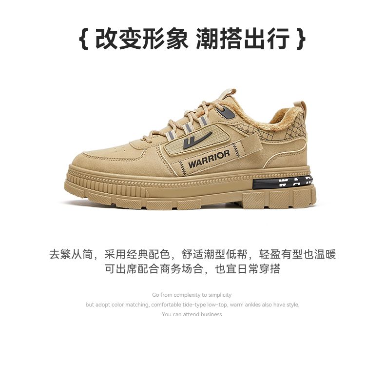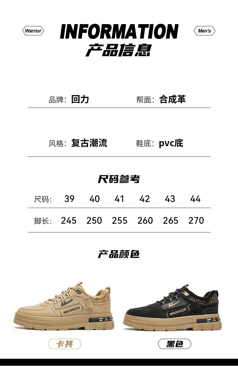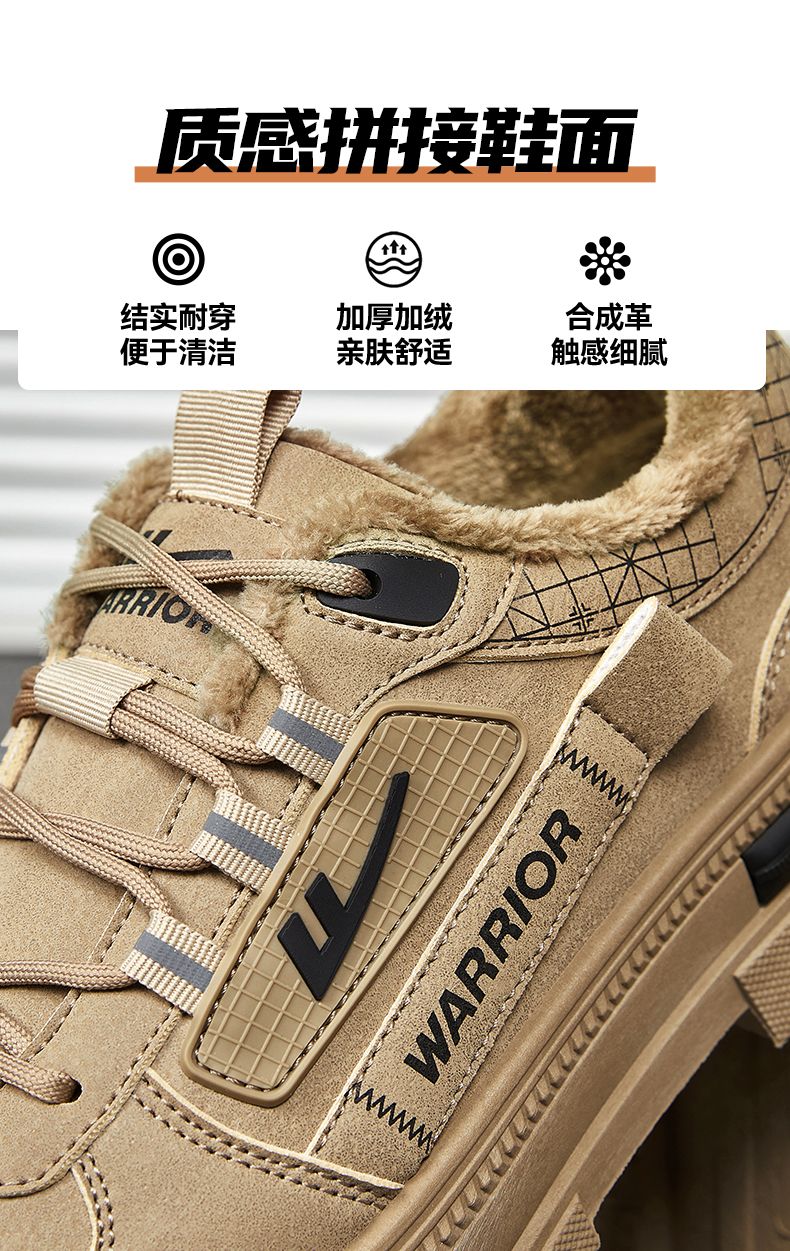 回力男鞋加绒工装鞋2025冬季新款保暖登山鞋男士厚底百搭休闲鞋子