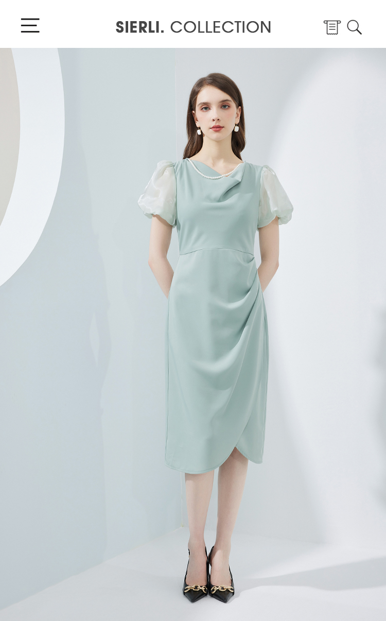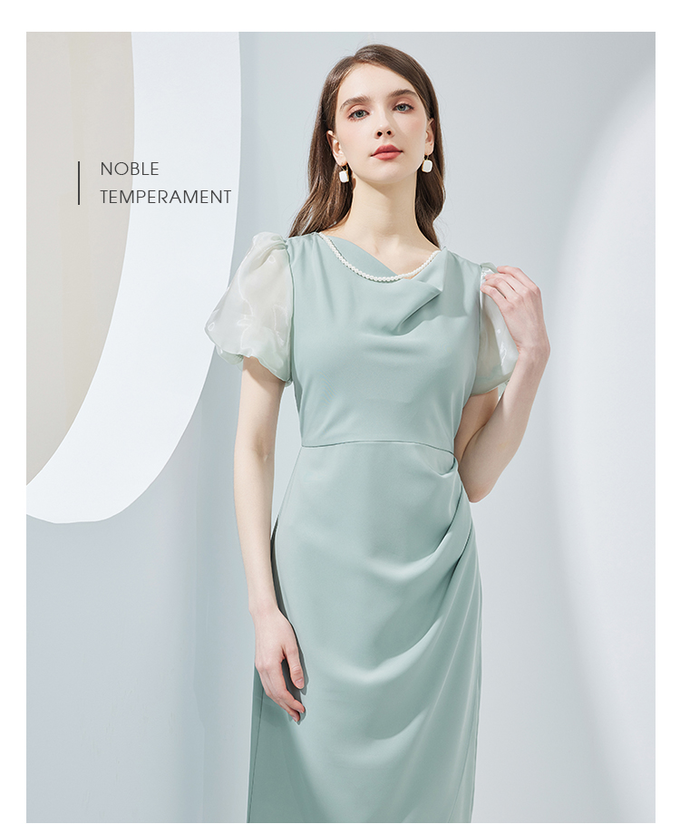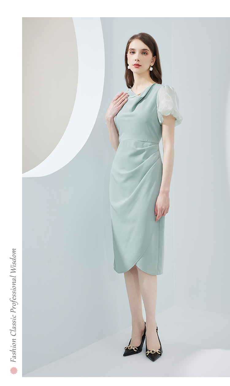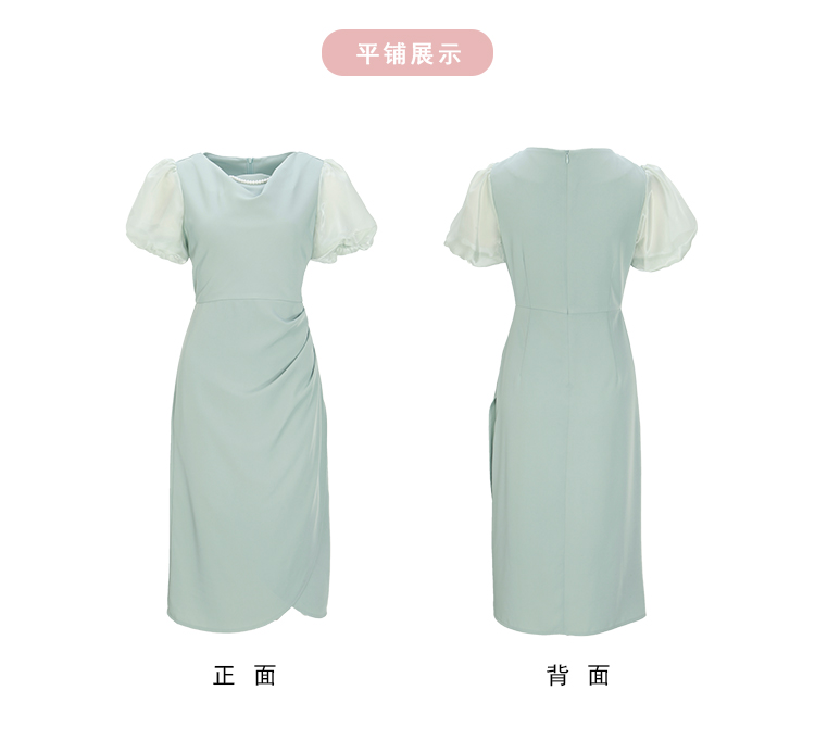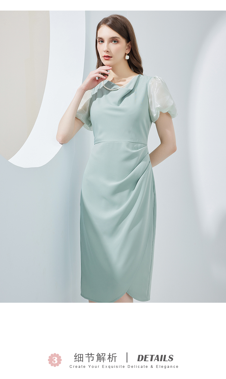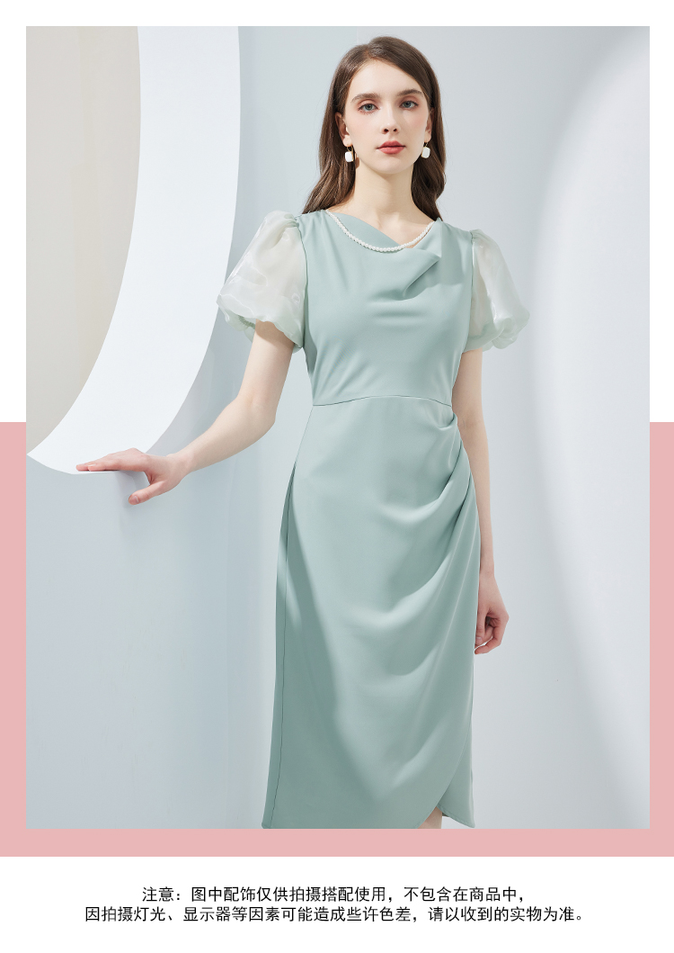 NF8G4斯尔丽瑟俪2023夏季新款泡泡袖公主范腰间褶皱立体裁剪连衣裙