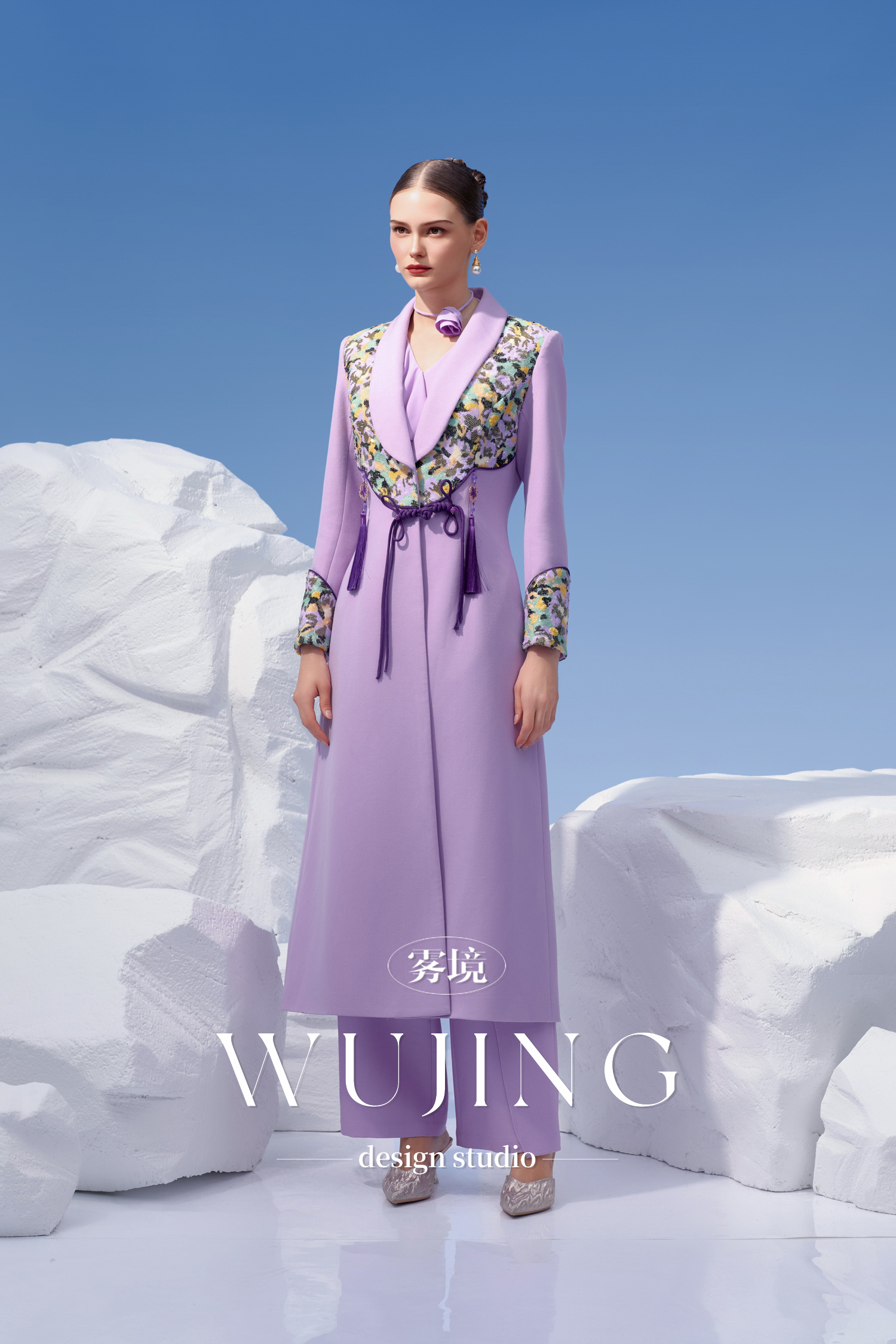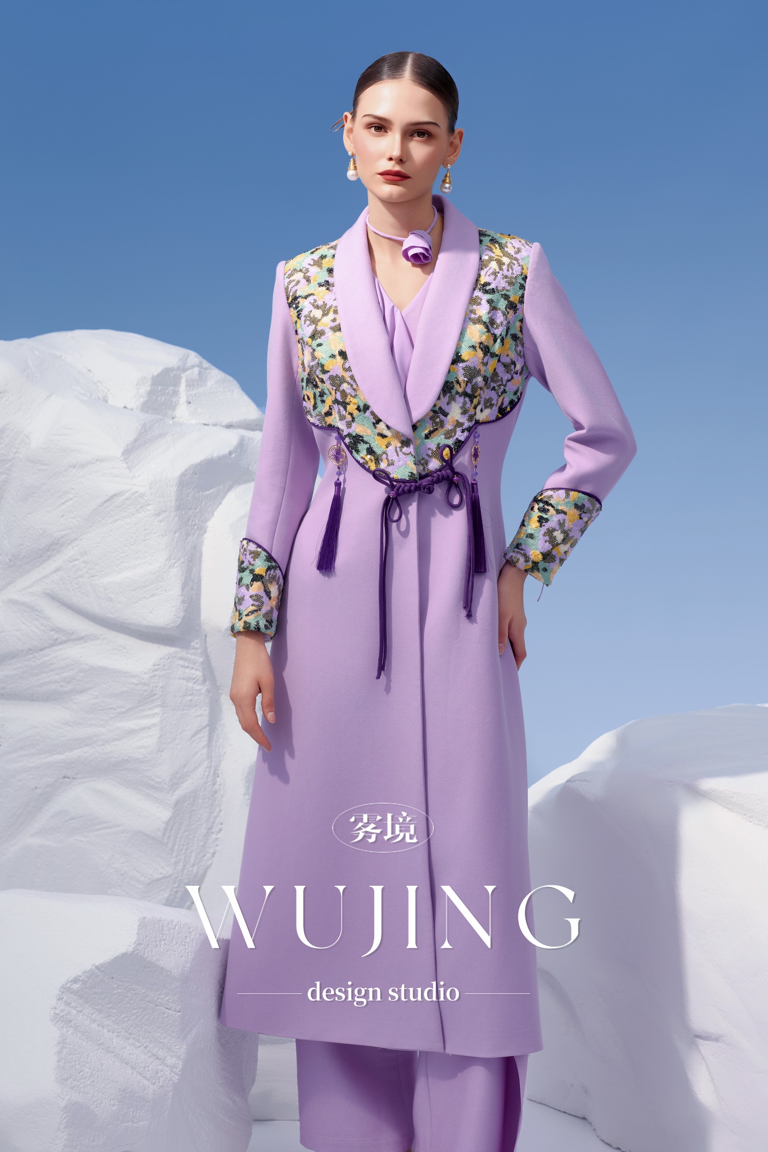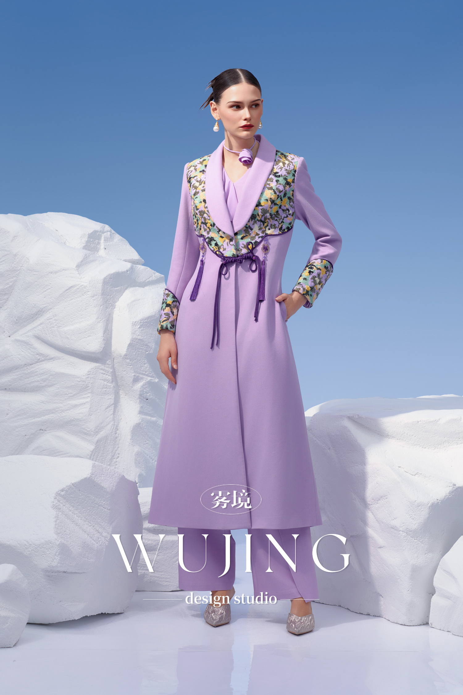 4202068 淡紫静怡 进口亮丝斜纹大衣 雾境
