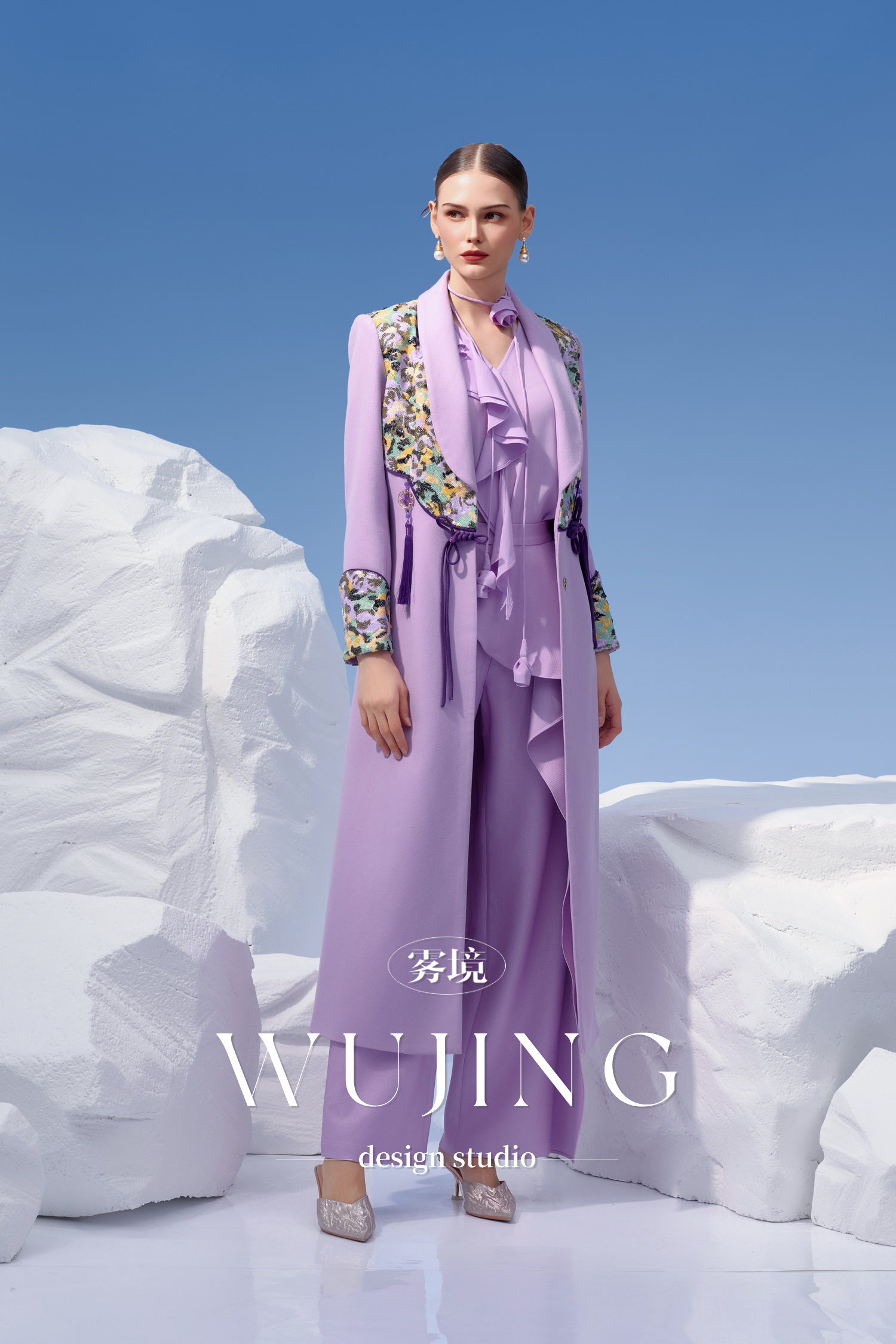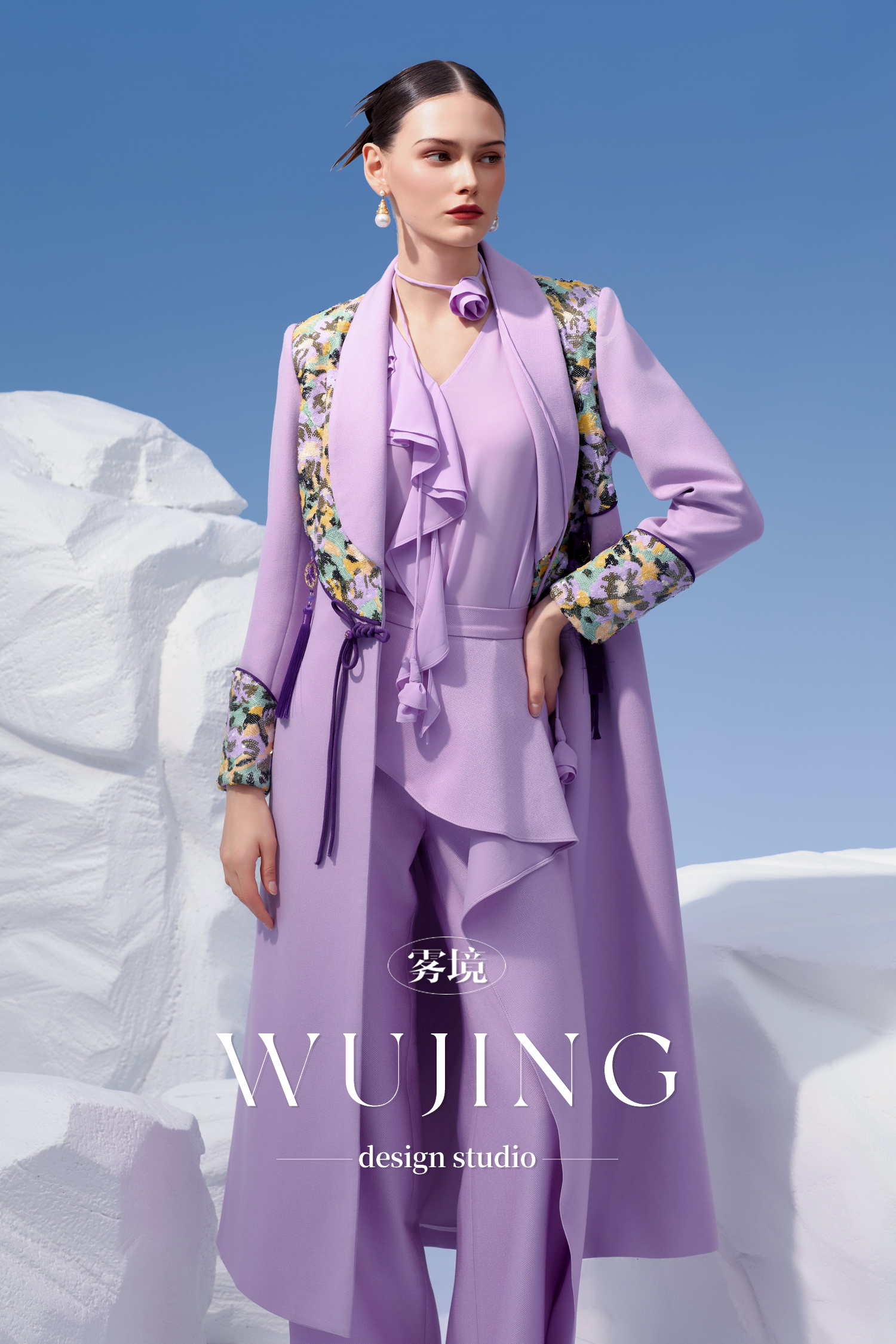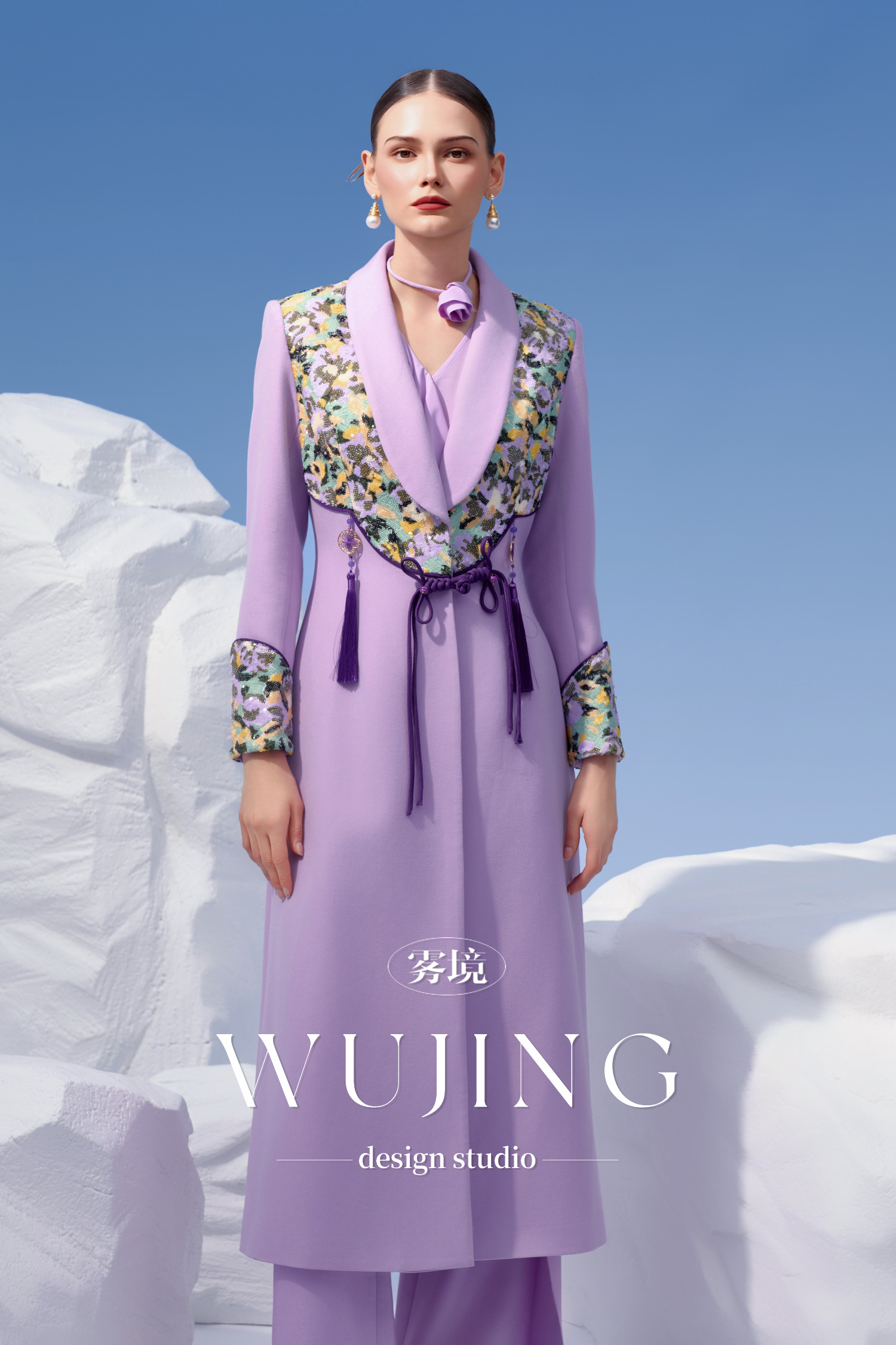 4202068 淡紫静怡 进口亮丝斜纹大衣 雾境