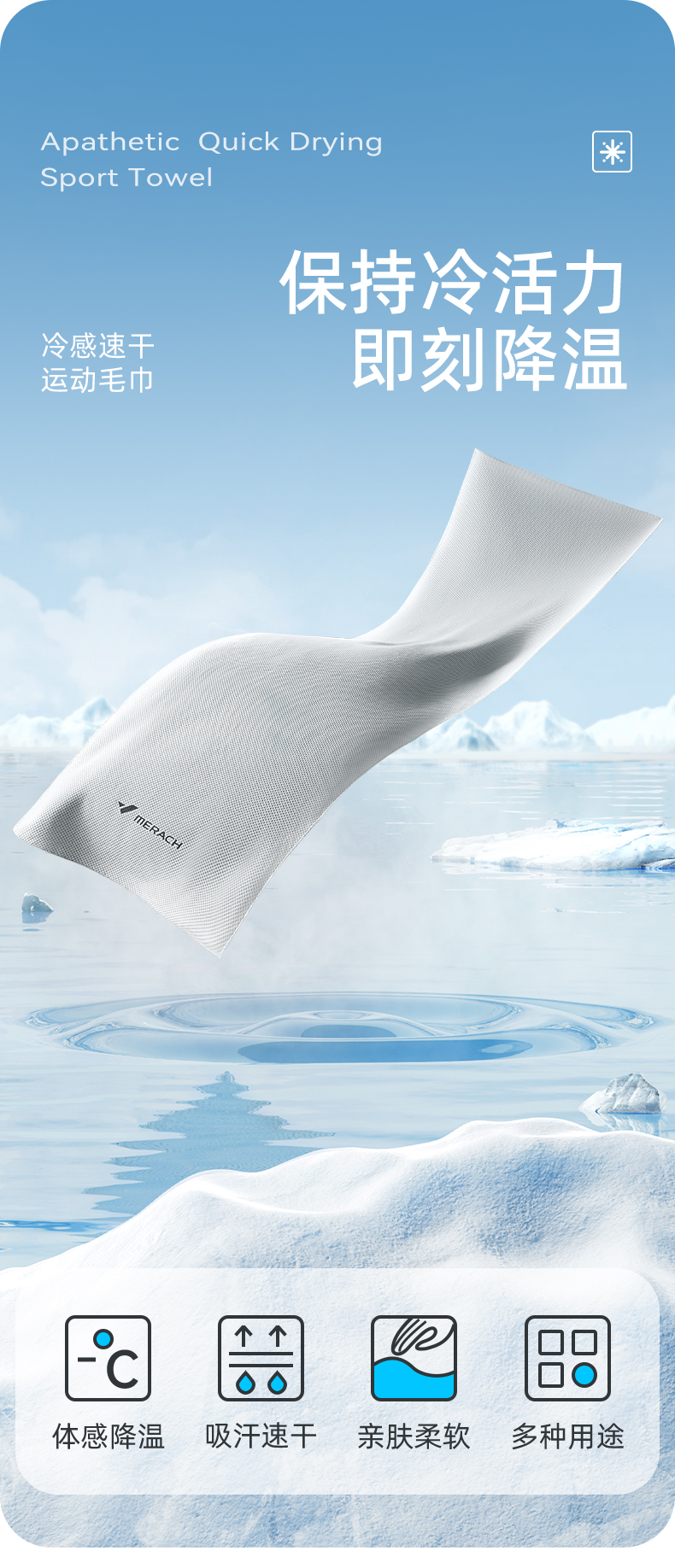 麦瑞克便携冷感运动毛巾男女吸汗健身专用擦汗巾夏季速干冰凉毛巾