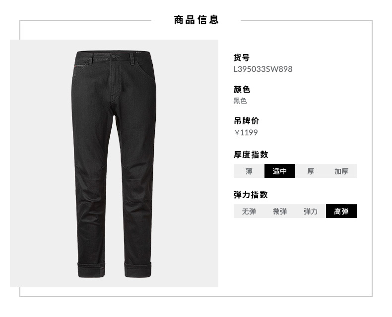 【尺码28-29,36】Lee黑色牛仔裤 商场同款都市骑士新款长裤男L395033SW898