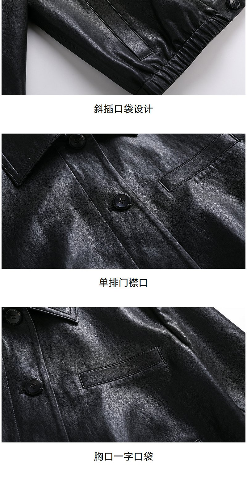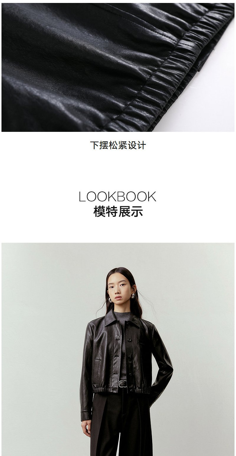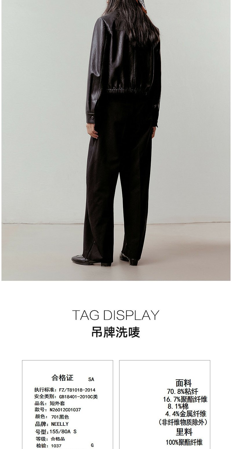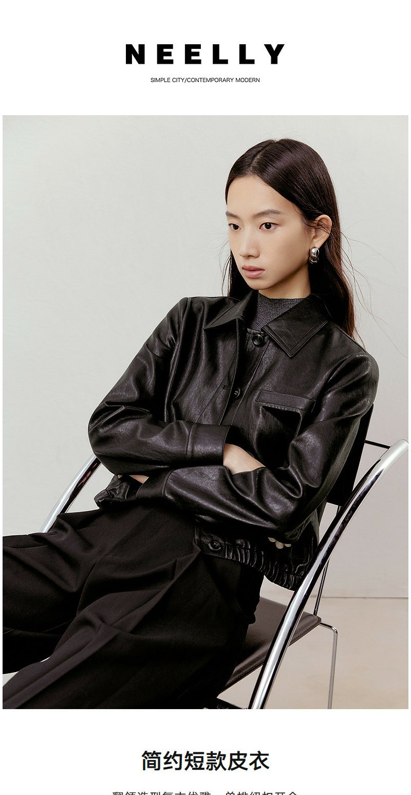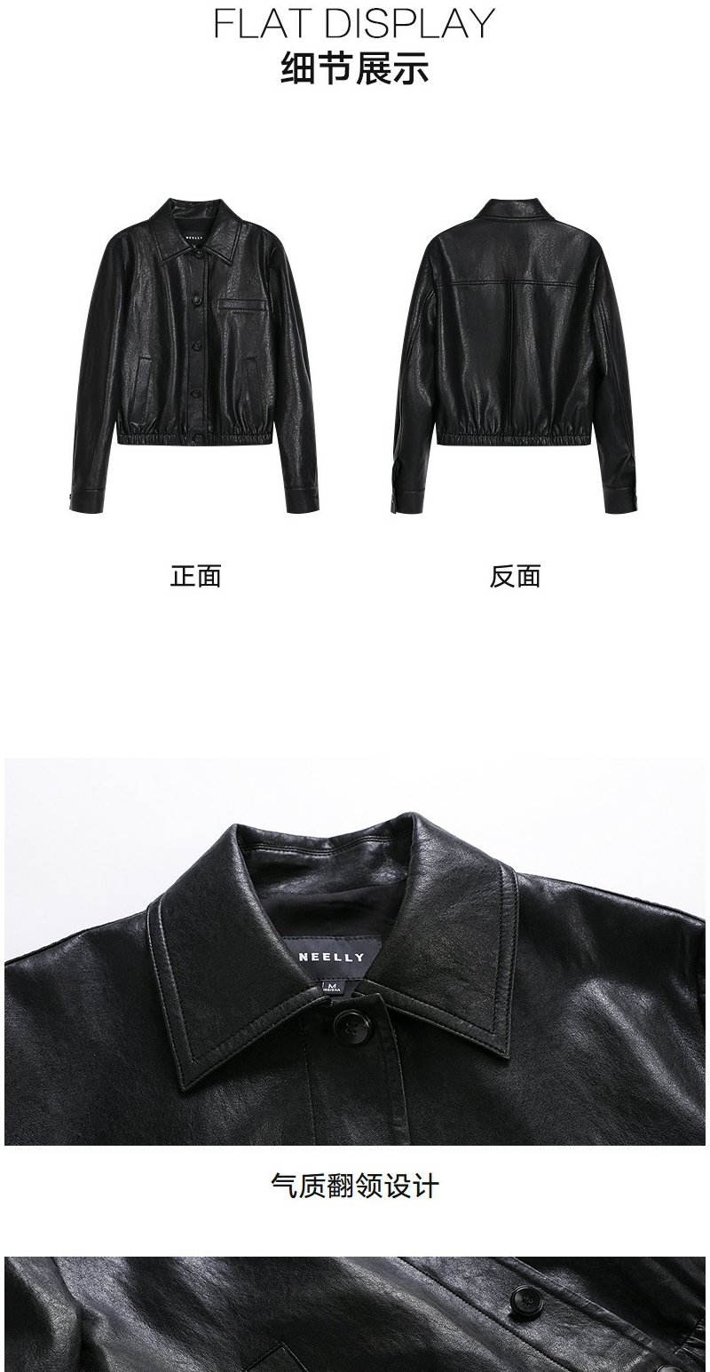 NEELLY纳俪商场同款春新款时尚简约帅气短皮衣女复古翻领百搭外套N26012C01037