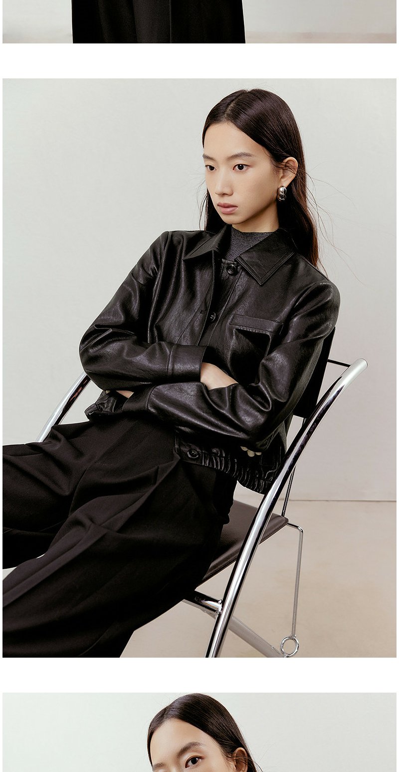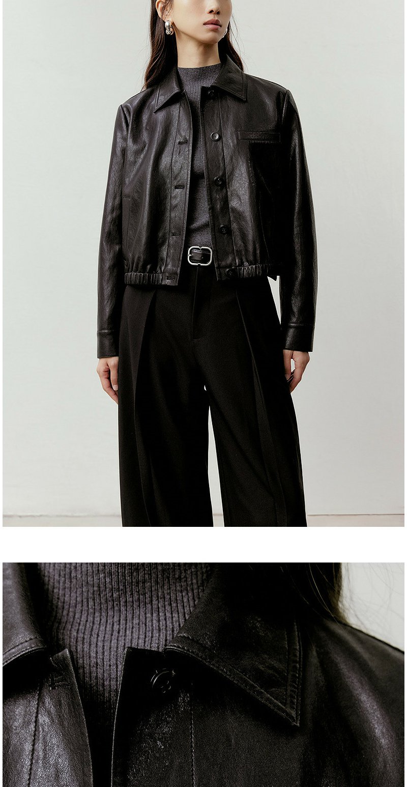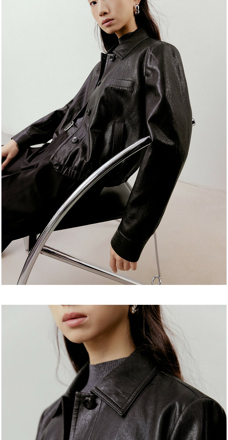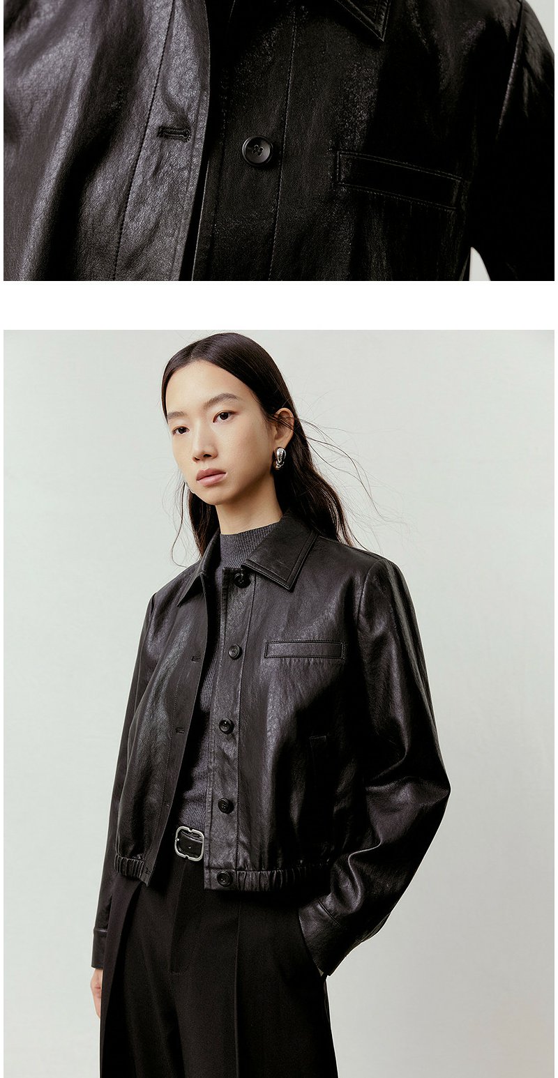 NEELLY纳俪商场同款春新款时尚简约帅气短皮衣女复古翻领百搭外套N26012C01037