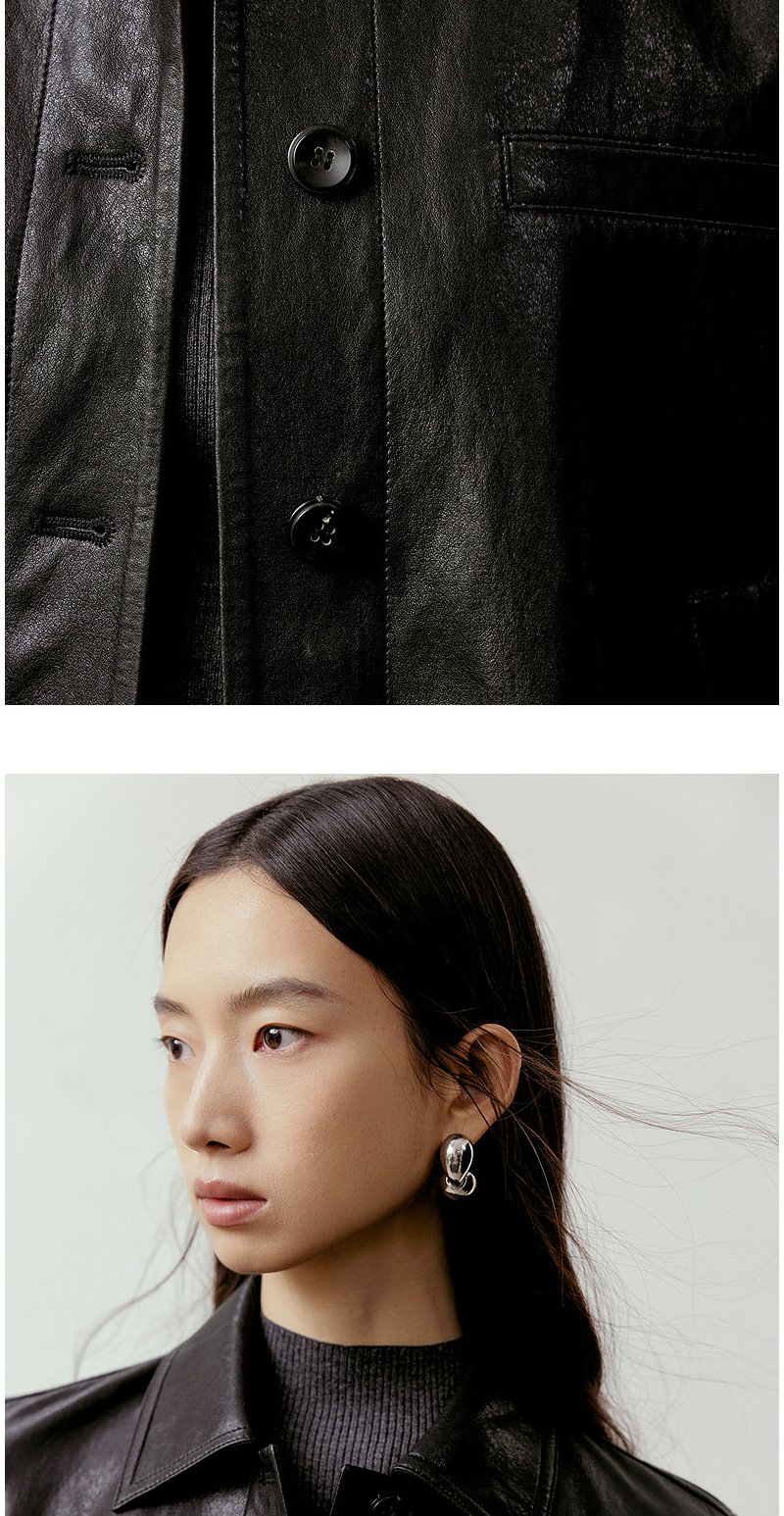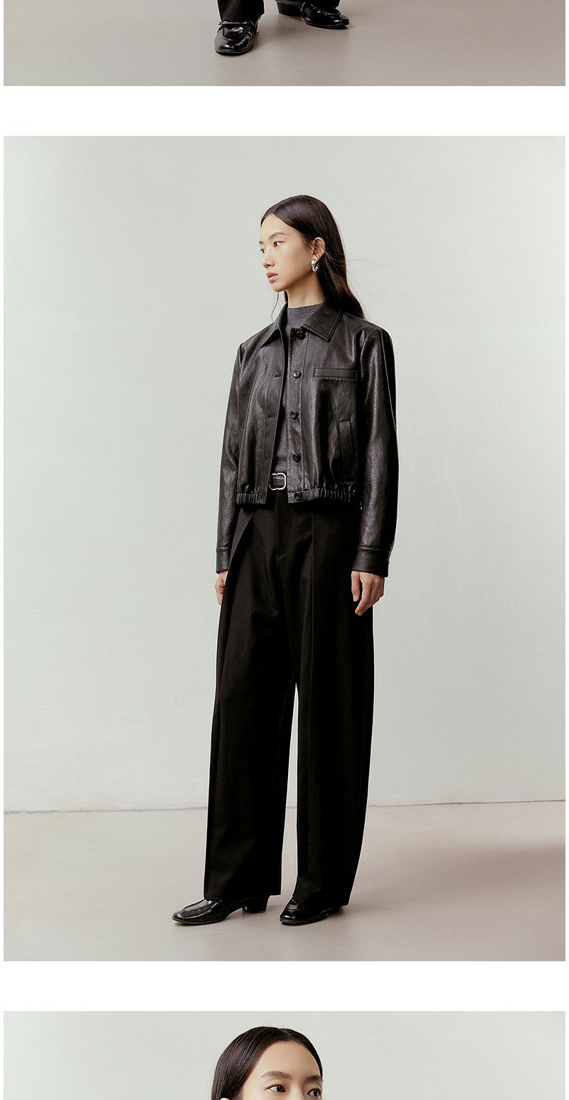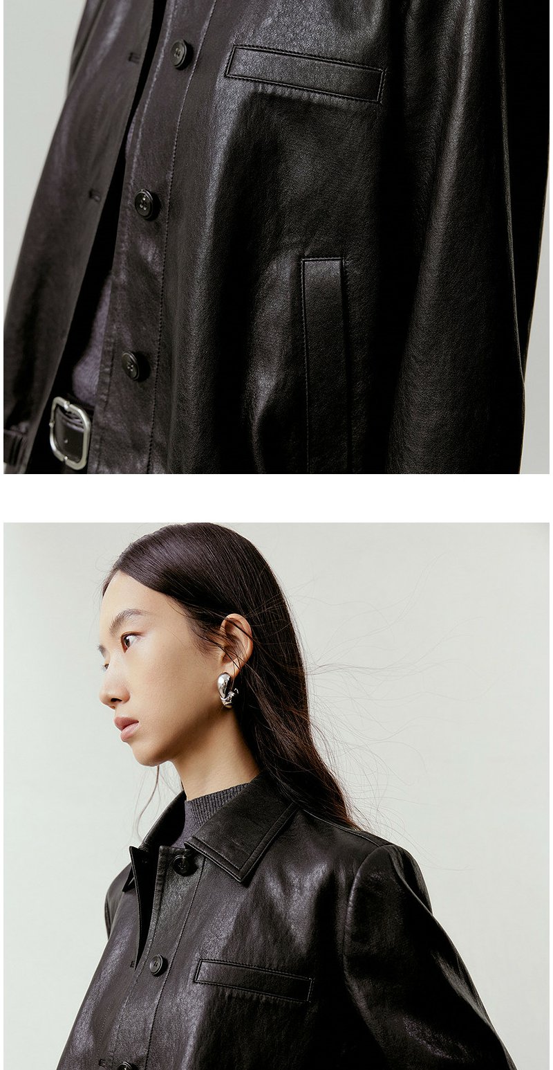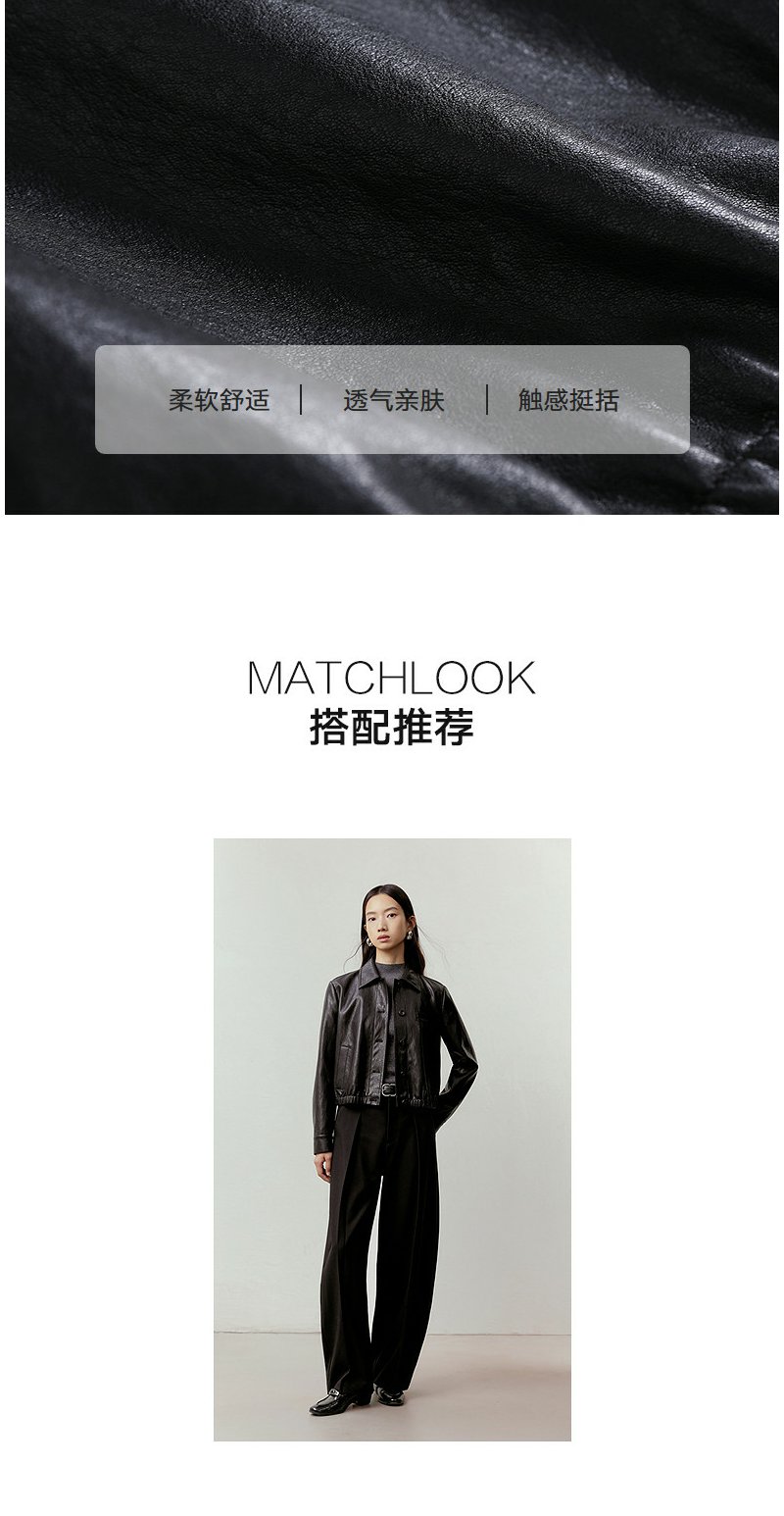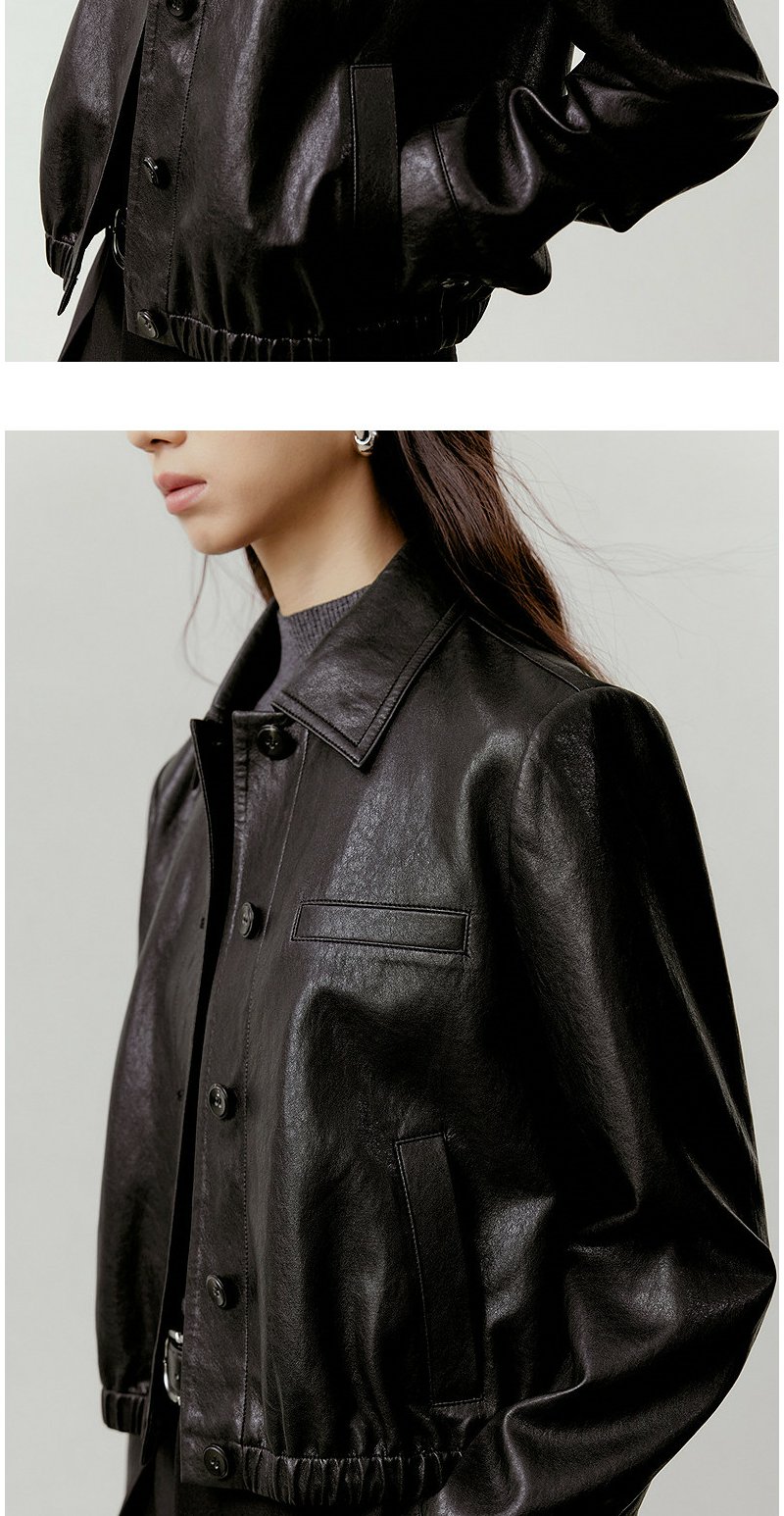 NEELLY纳俪商场同款春新款时尚简约帅气短皮衣女复古翻领百搭外套N26012C01037