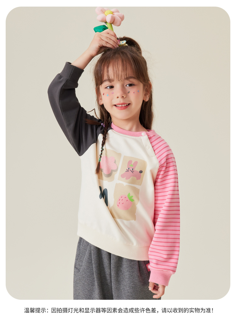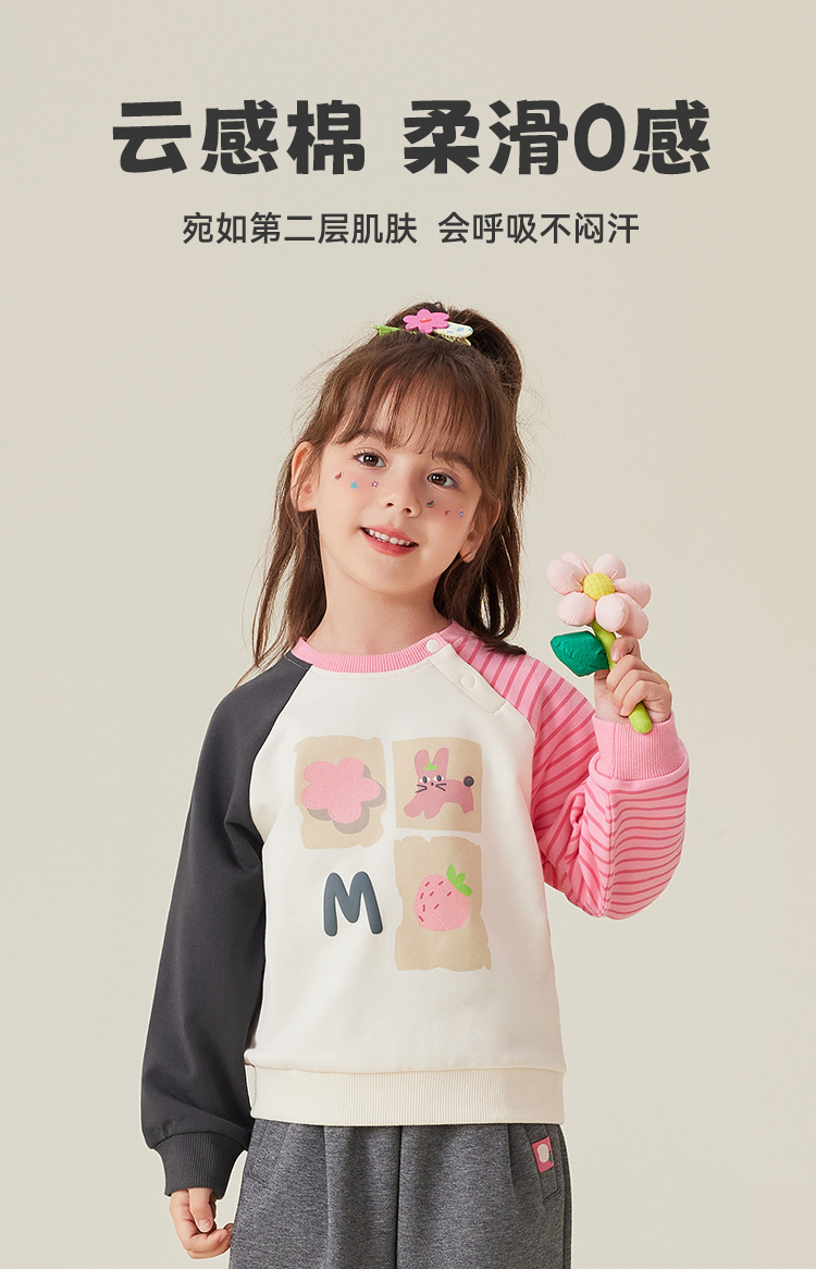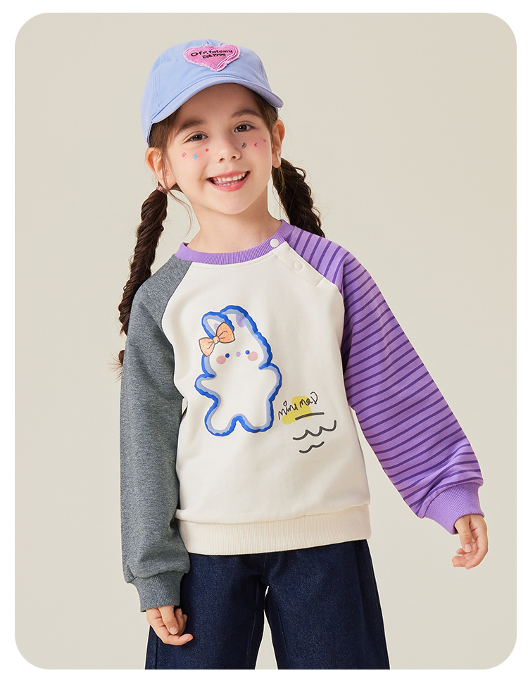 【5A抑菌】【80-140】【MQDmini】女童春秋卫衣儿童撞色圆领上衣