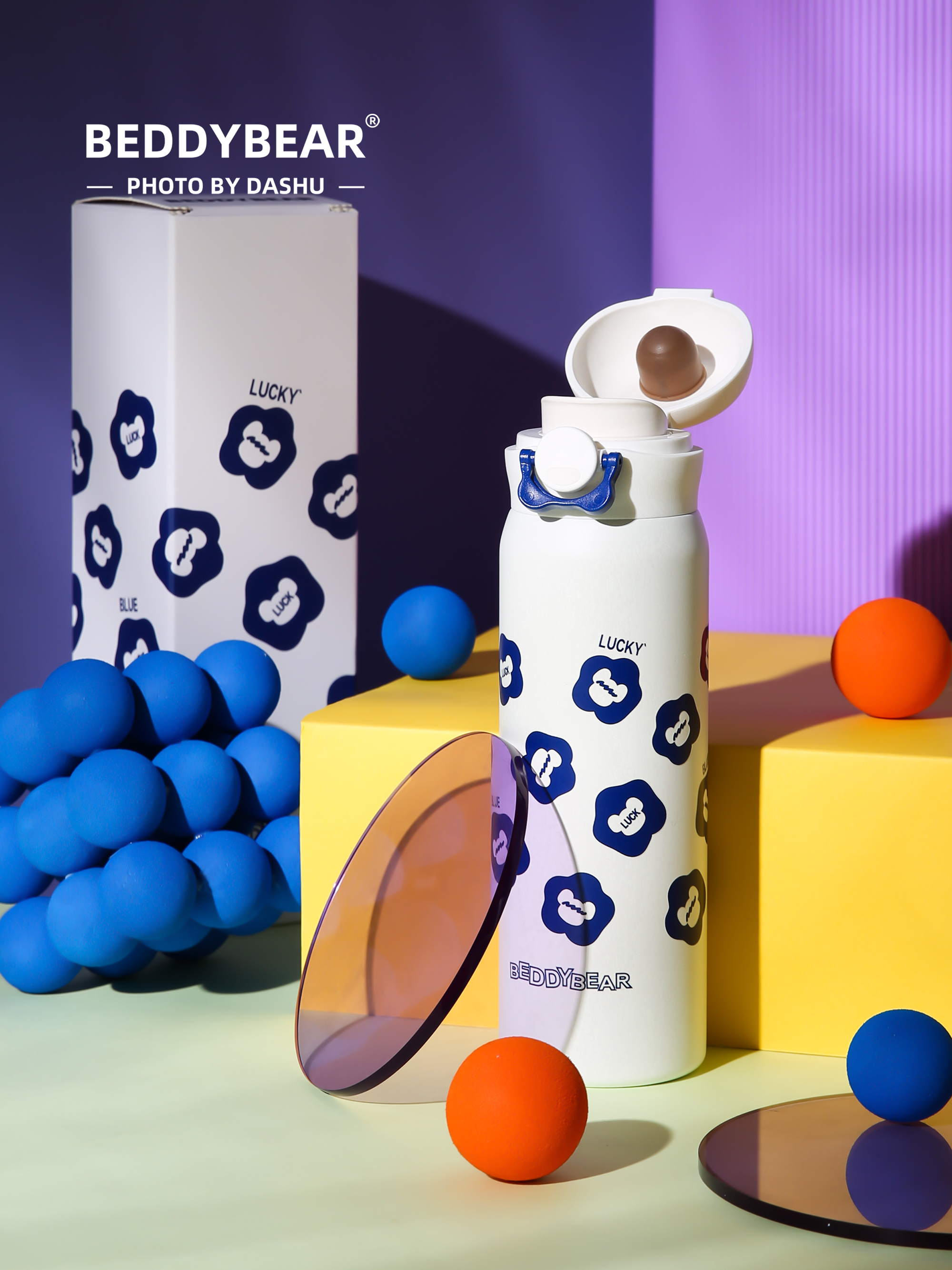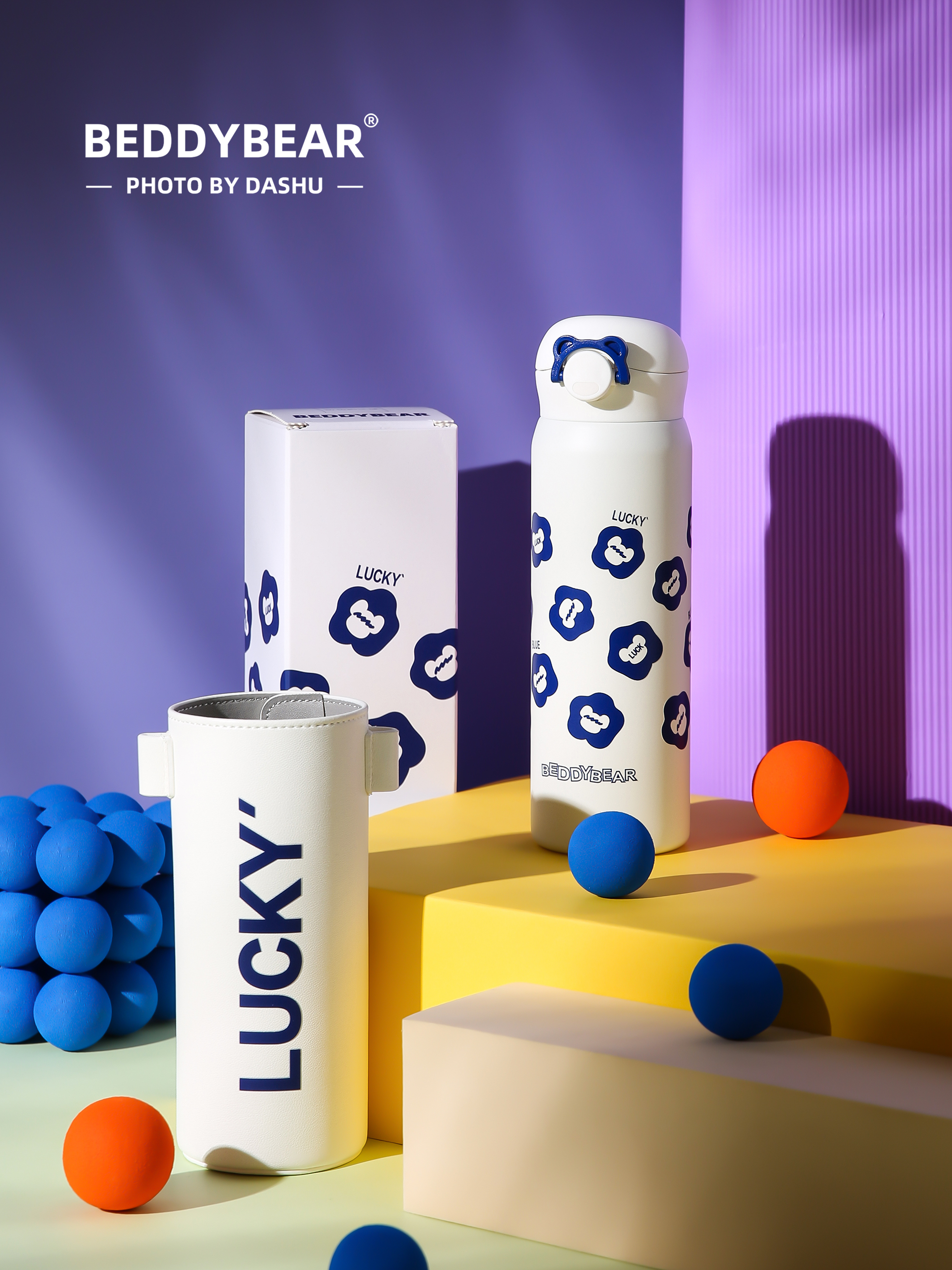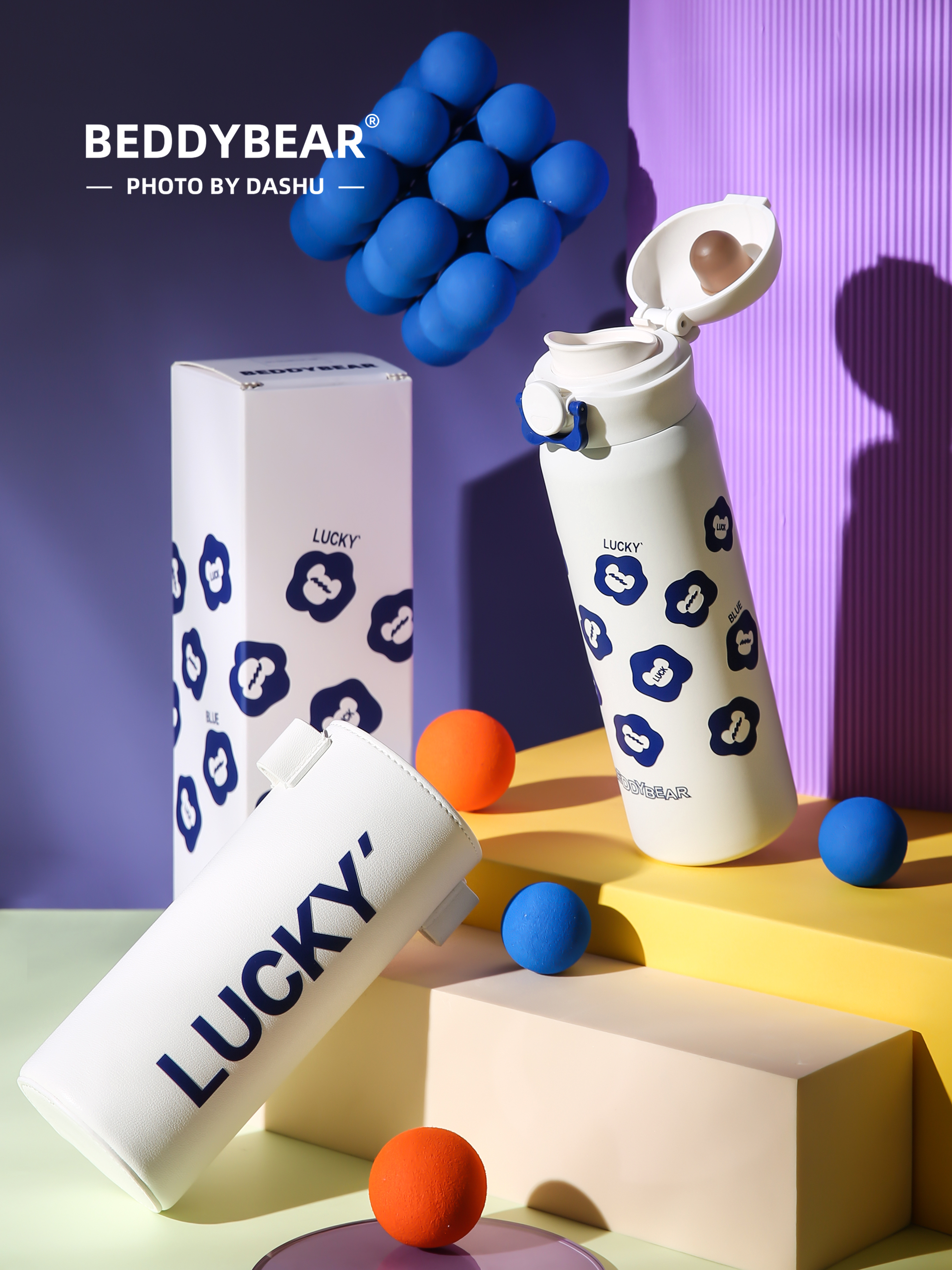 杯具熊克莱因蓝成人学生男女不锈钢保温杯直饮水壶幸运杯弹跳盖杯