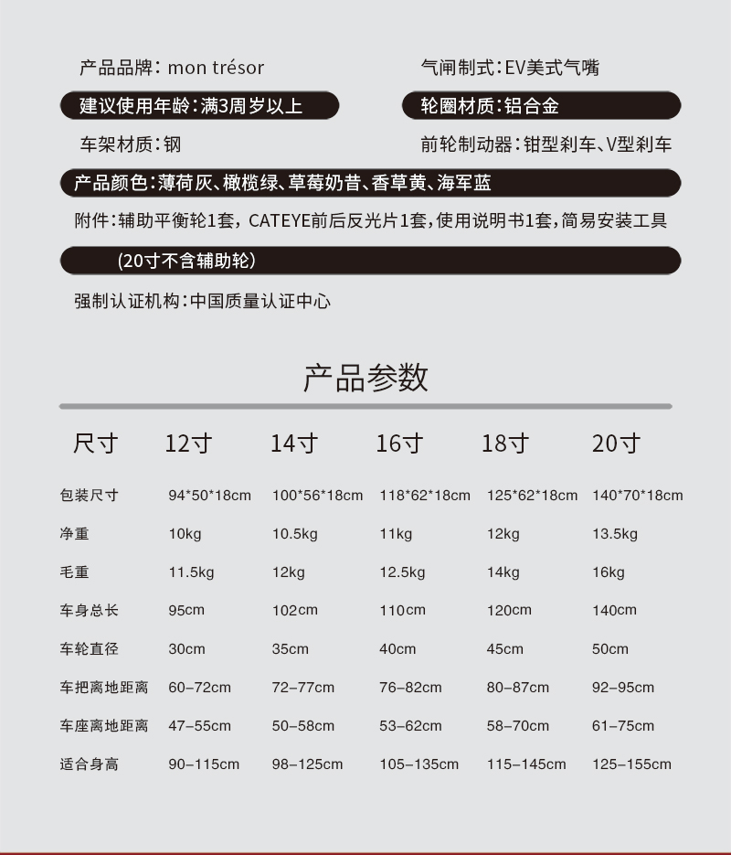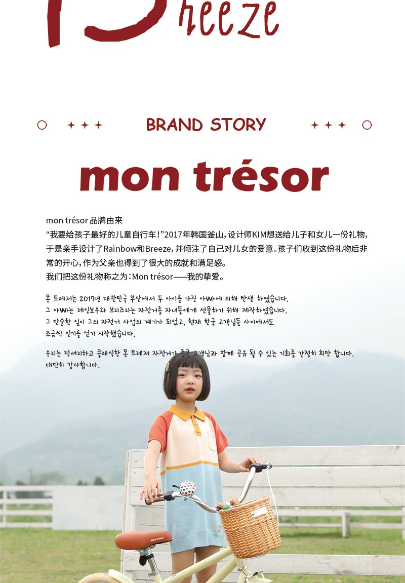 韩国进口montresor 新款breeze微风系列儿童自行车12寸-20寸脚踏车单车童车【蒙特雷索】