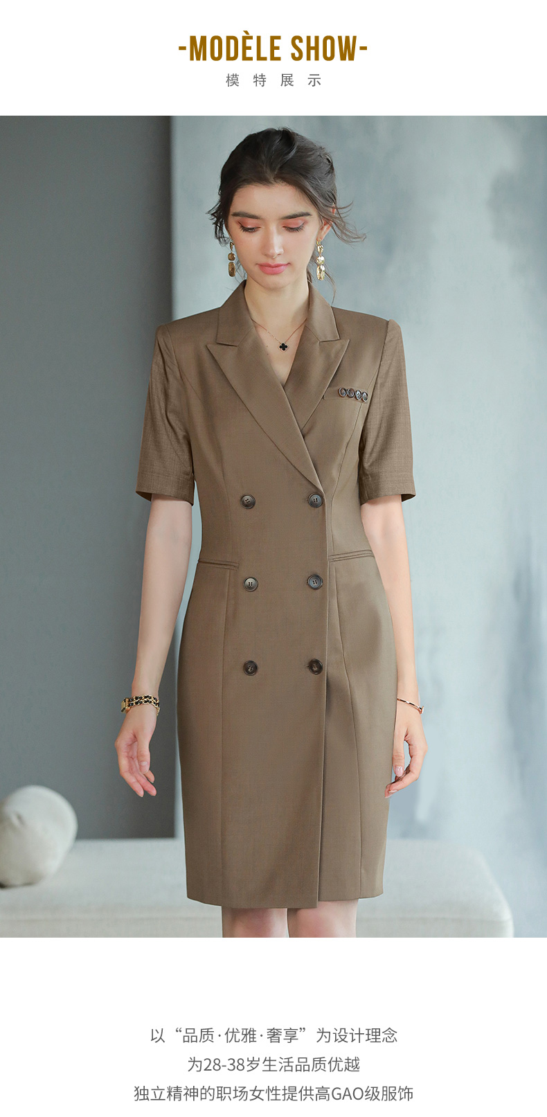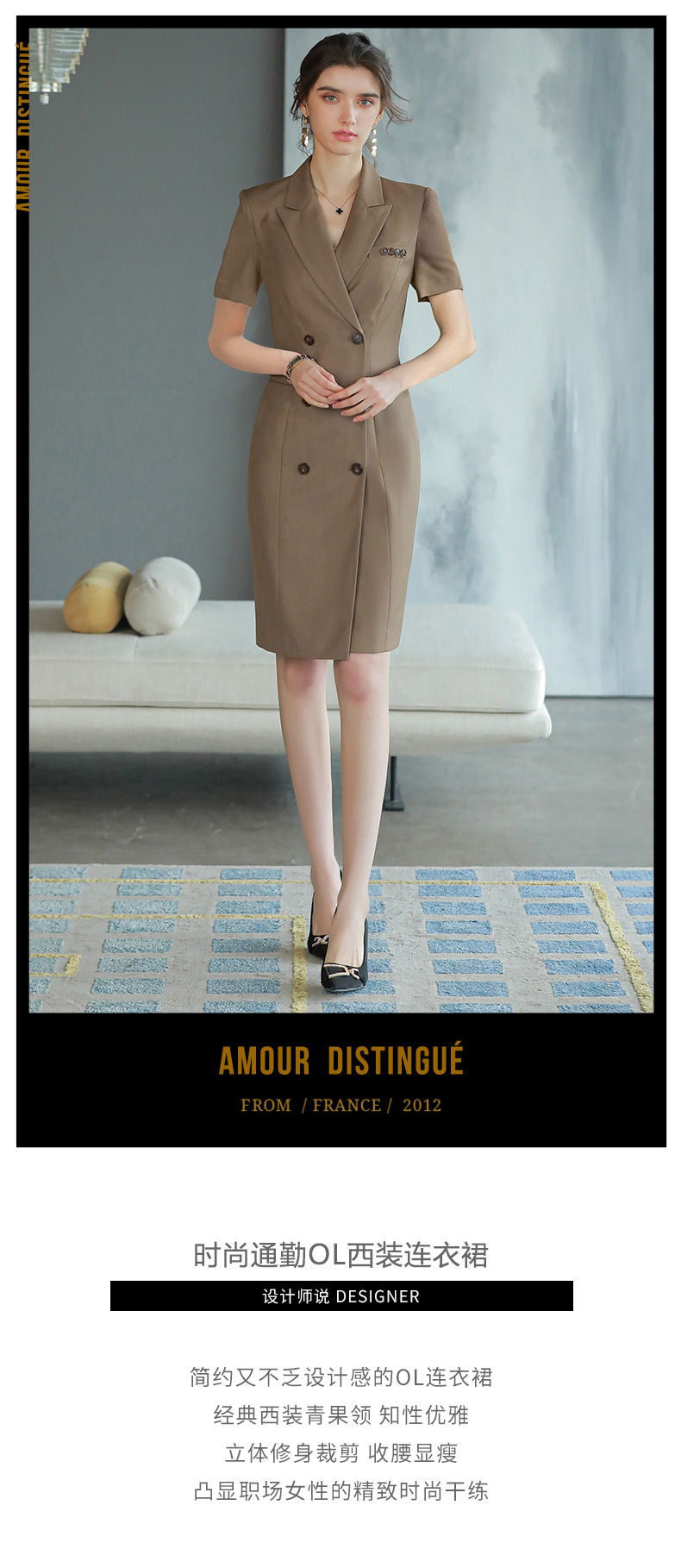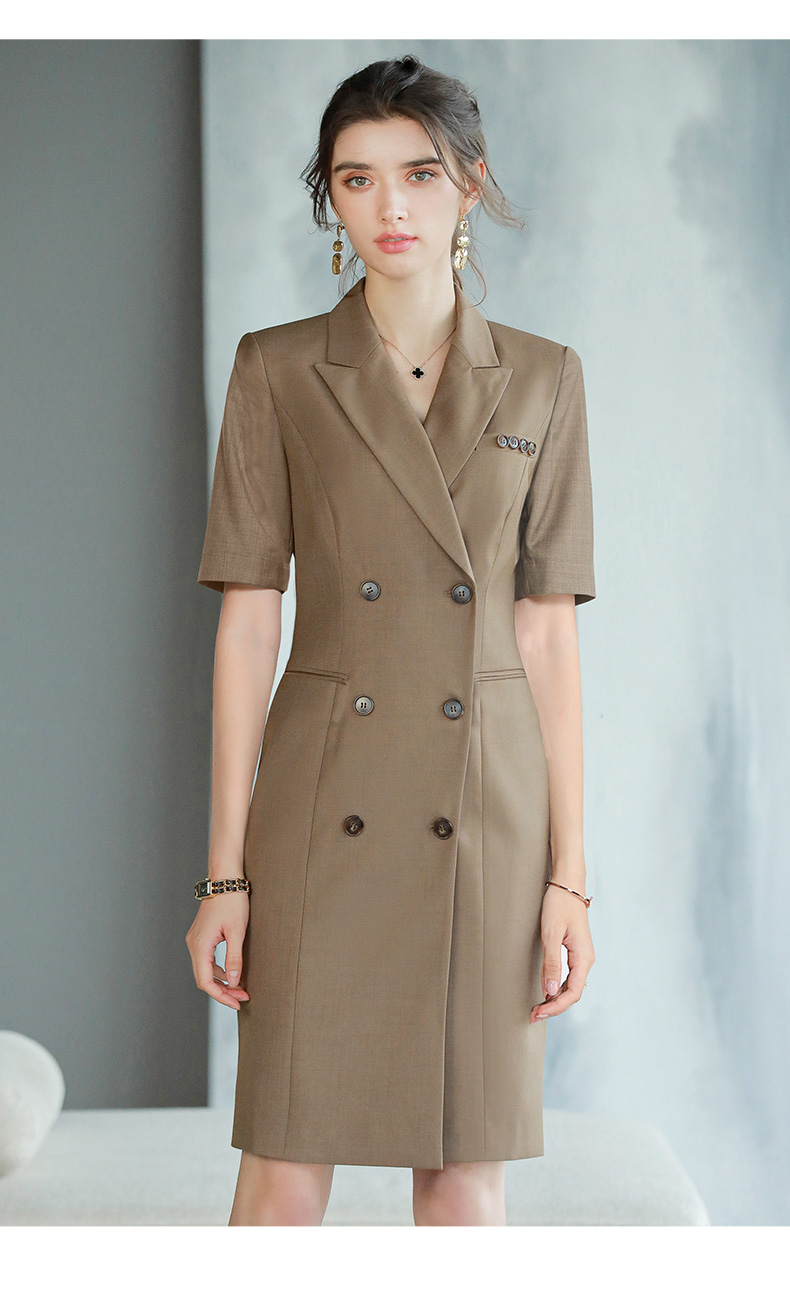 IWY/高档西装连衣裙咖色女总裁范商务正装裙子气质干练双排扣工服Q745