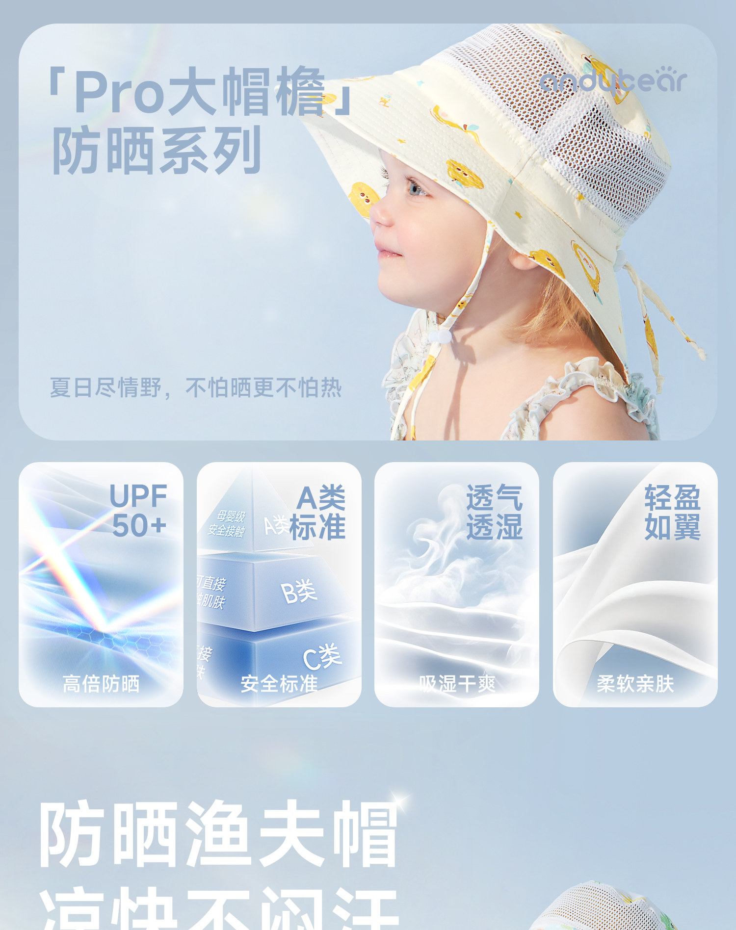 儿童防晒帽宝宝婴儿太阳帽夏季薄款遮阳男童女童男孩一岁渔夫帽子