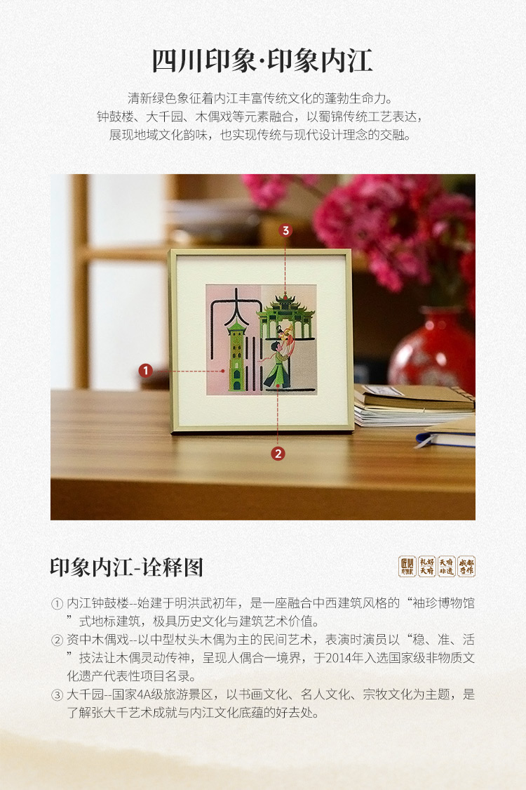 【中国蜀锦•四川印象系列三】老伙记非遗蜀锦摆件 四川文创礼品送领导长辈 广安/达州/遂宁/资阳/内江 手工织锦装饰画挂件 成都文化手信 高档丝绸家居书房摆台织锦画