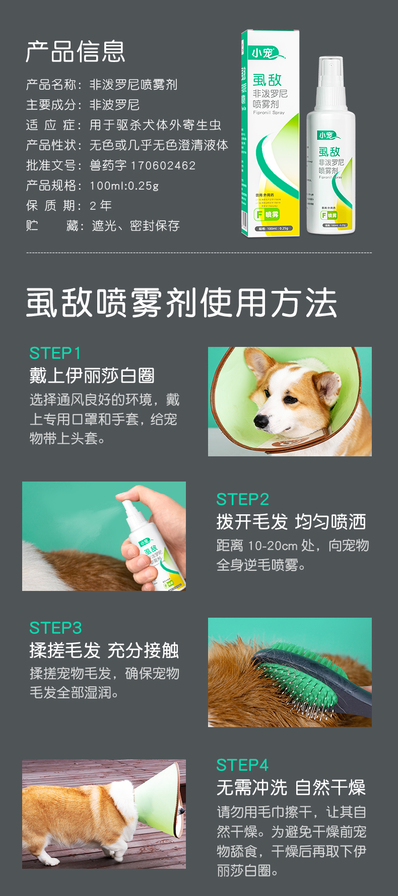 小宠虱敌非泼罗尼喷雾剂100ml 体外驱虫喷剂 安全高效去跳蚤虱子蜱虫