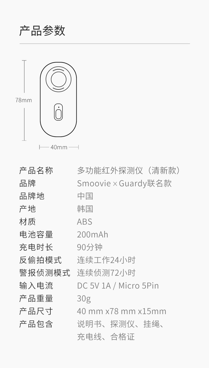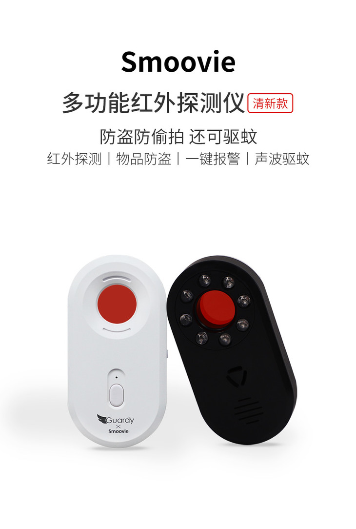 【防偷窥、防针眼摄像头】Smoovie多功能红外探测仪清新款|红外探测|一键报警|声波驱蚊
