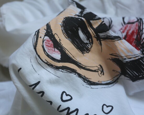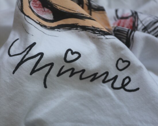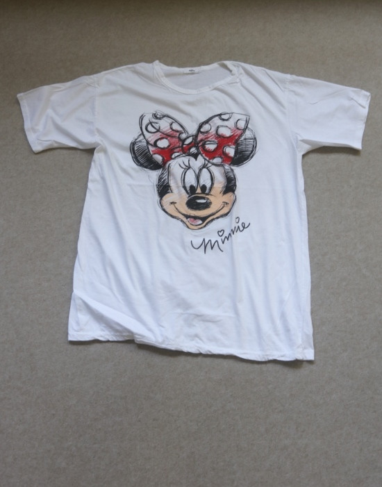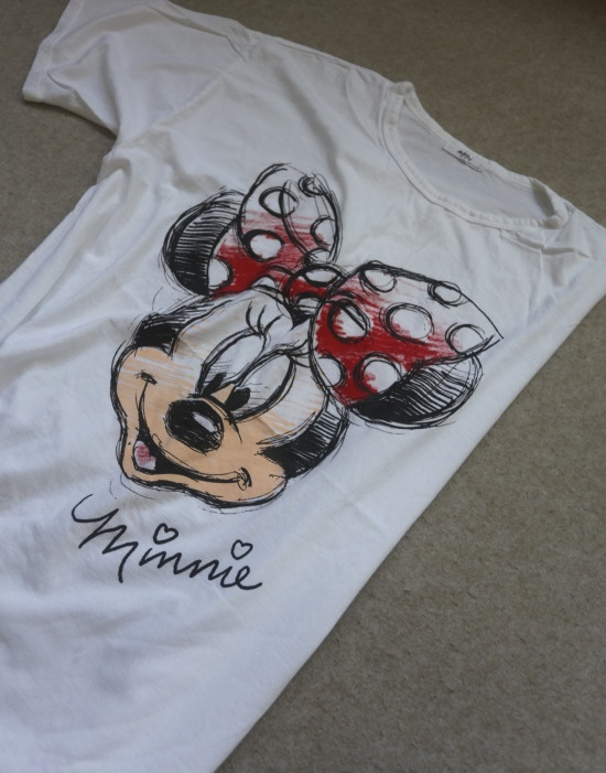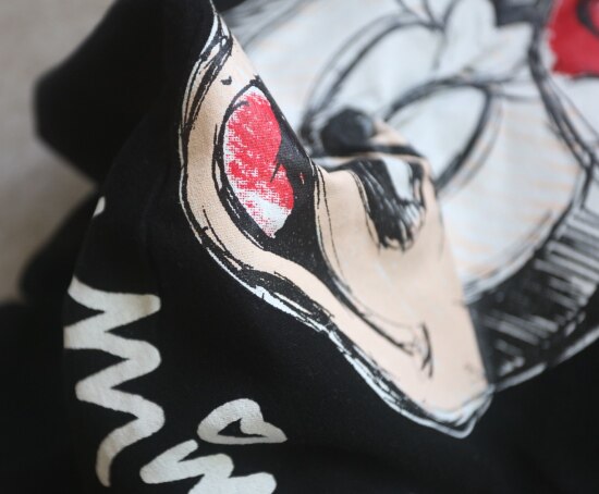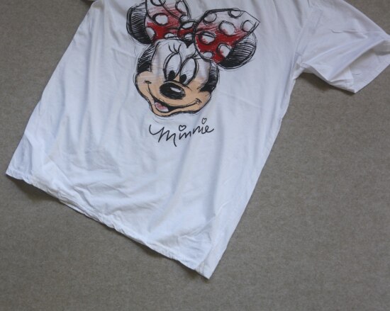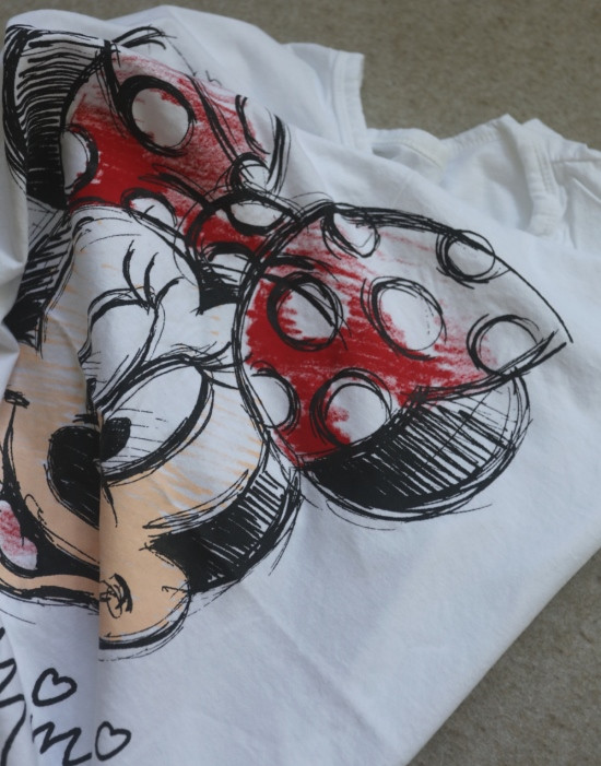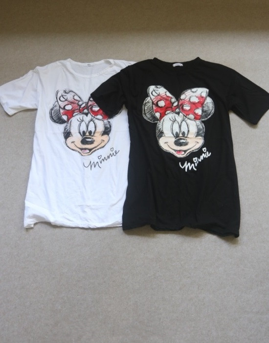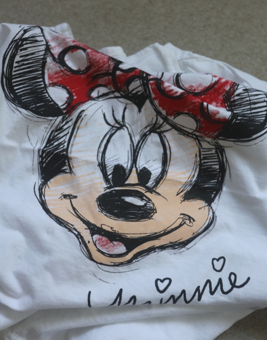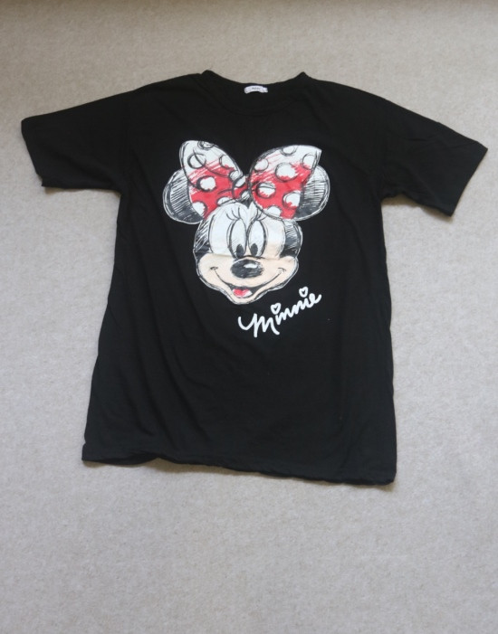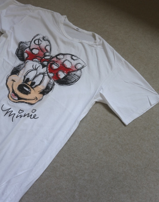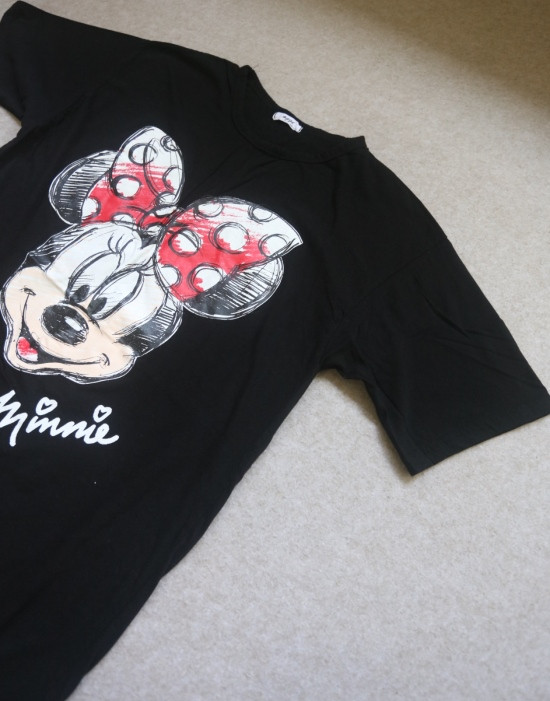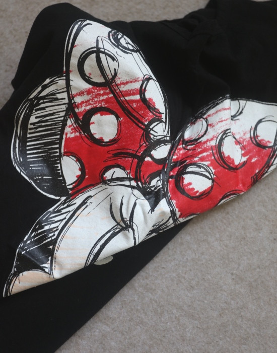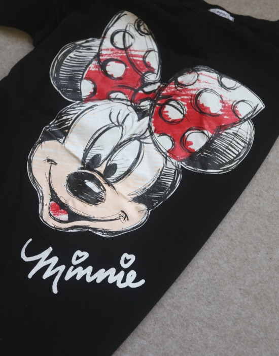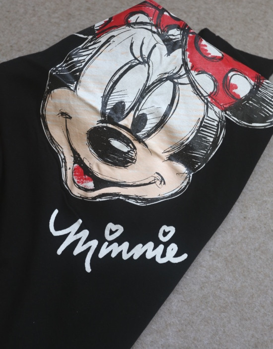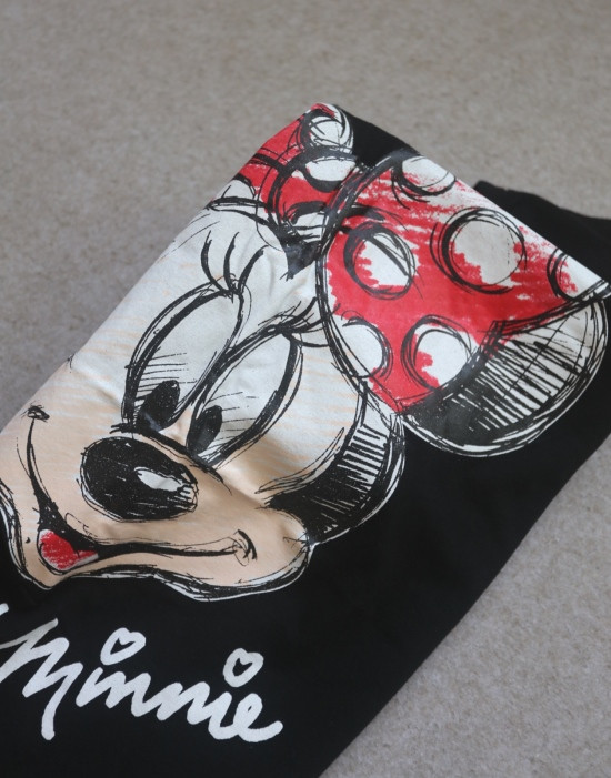 只有前身有米妮图案 小圆领口 落肩大廓形 袖长近肘
