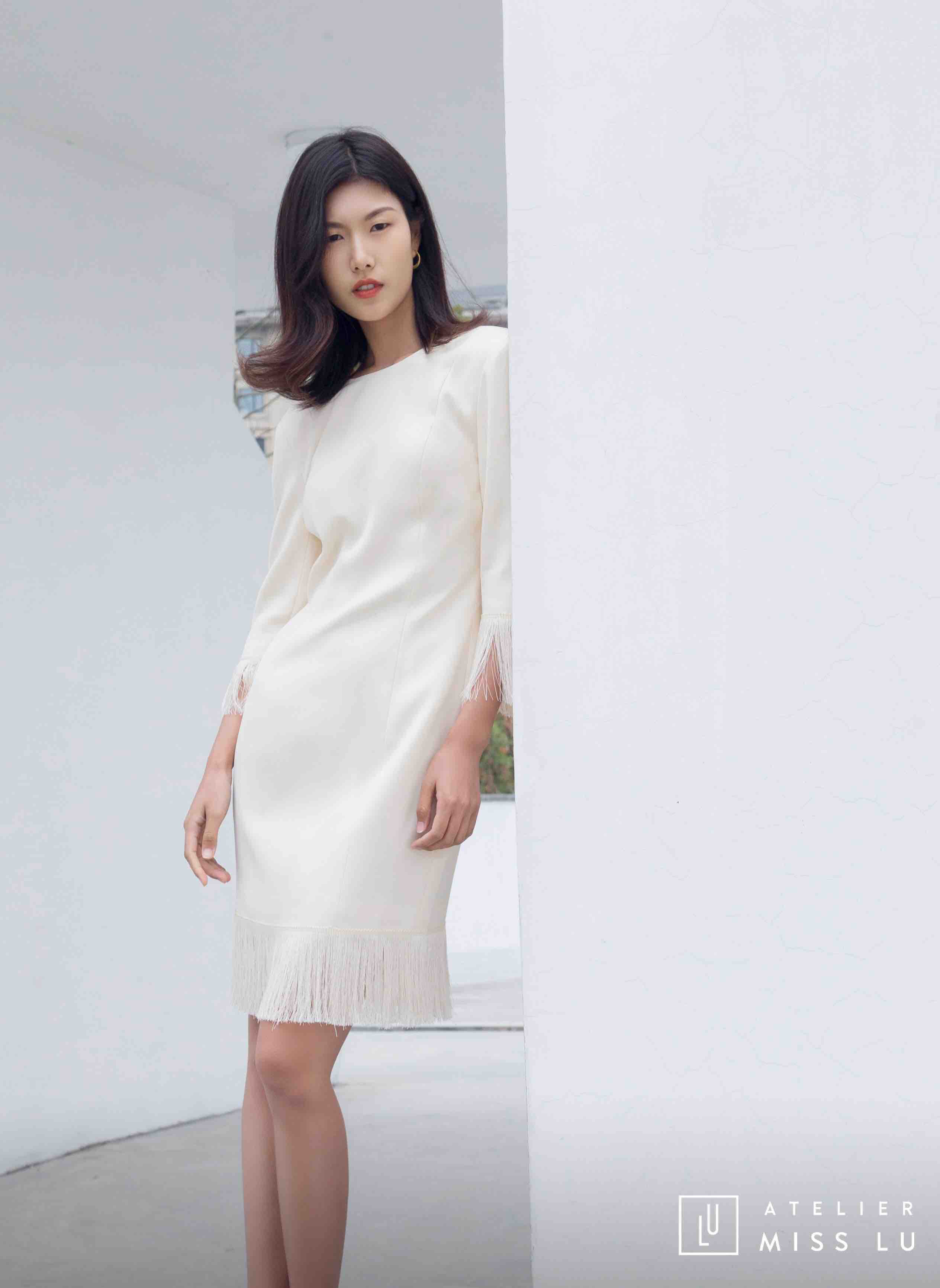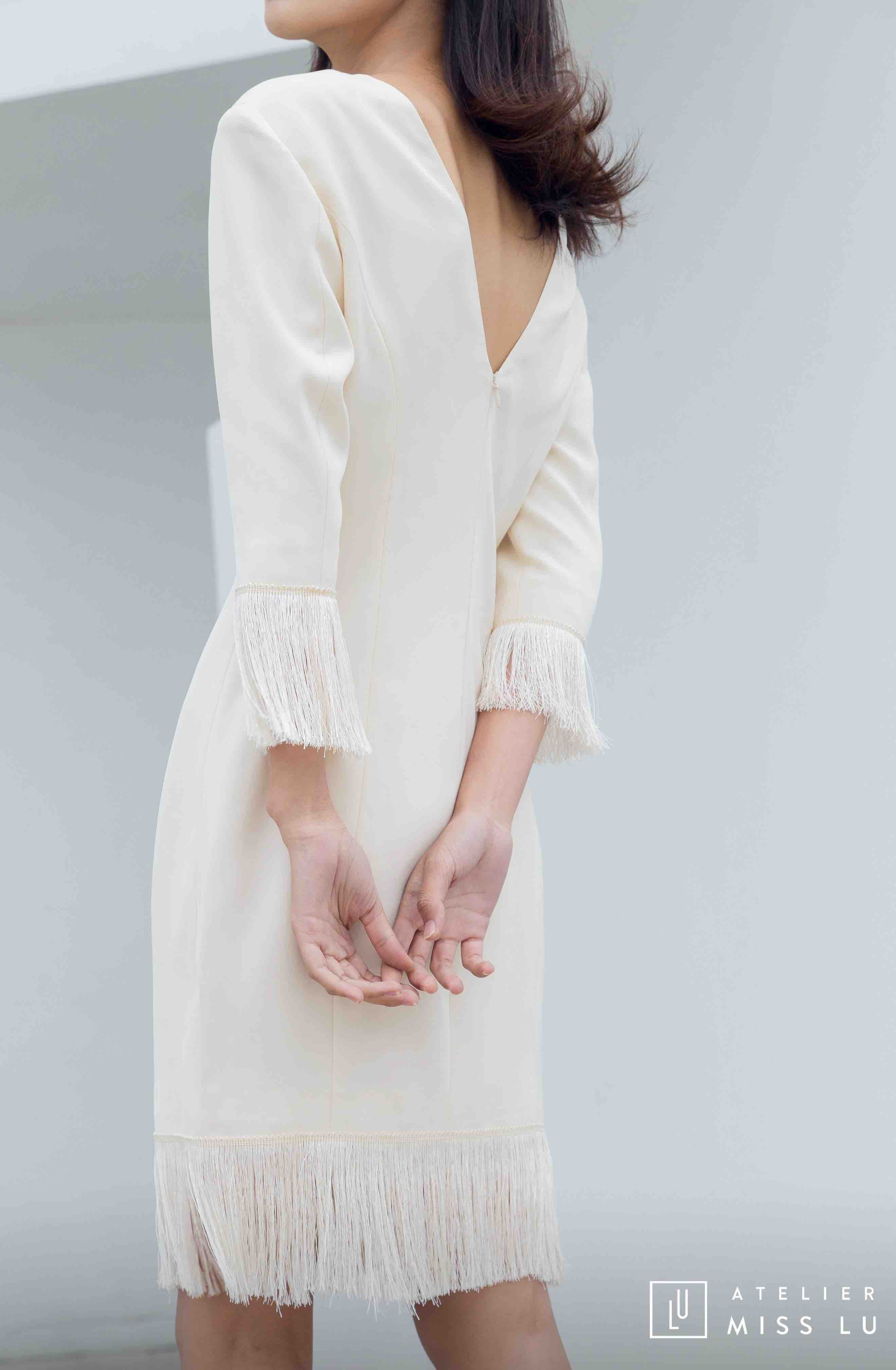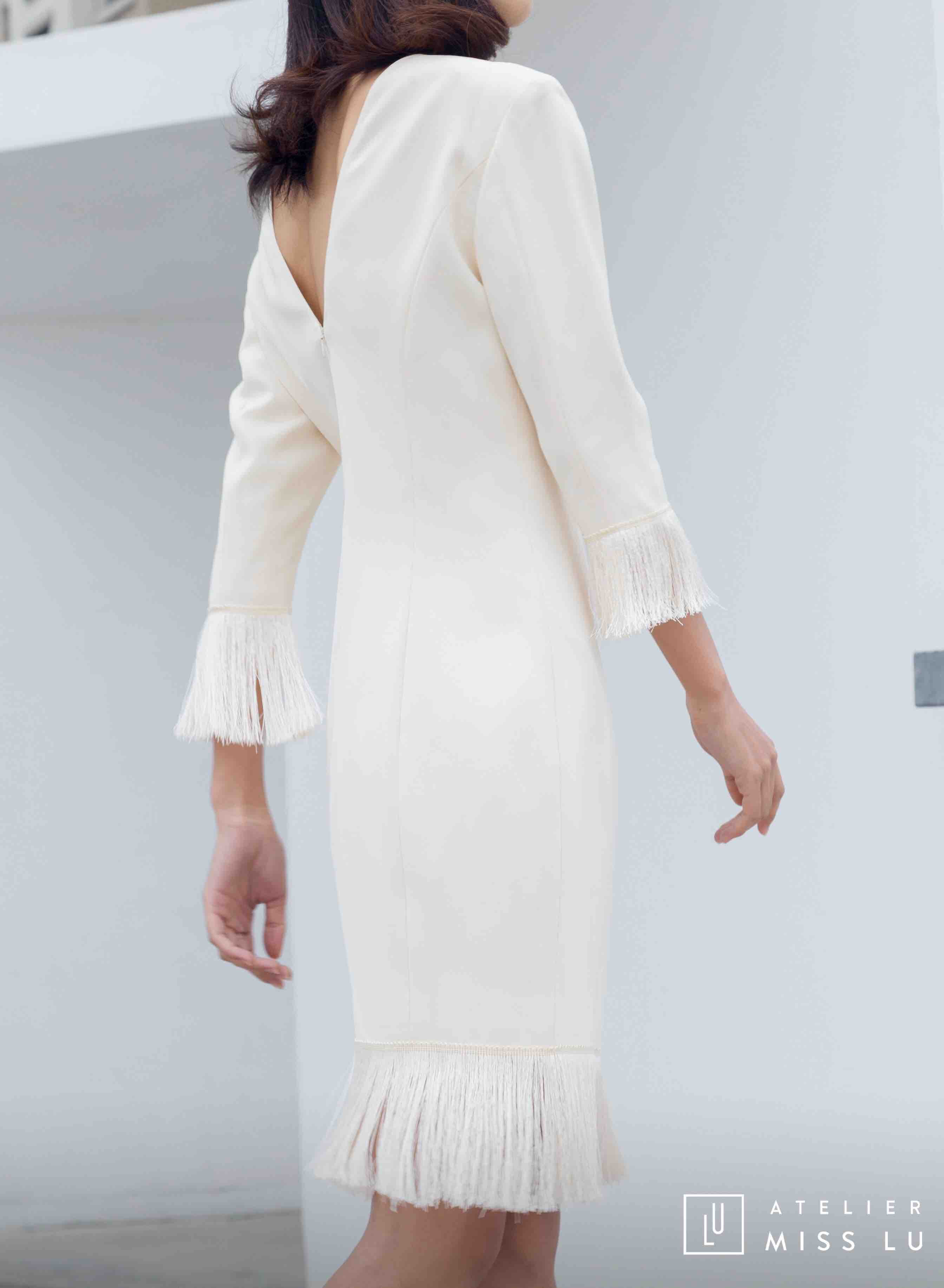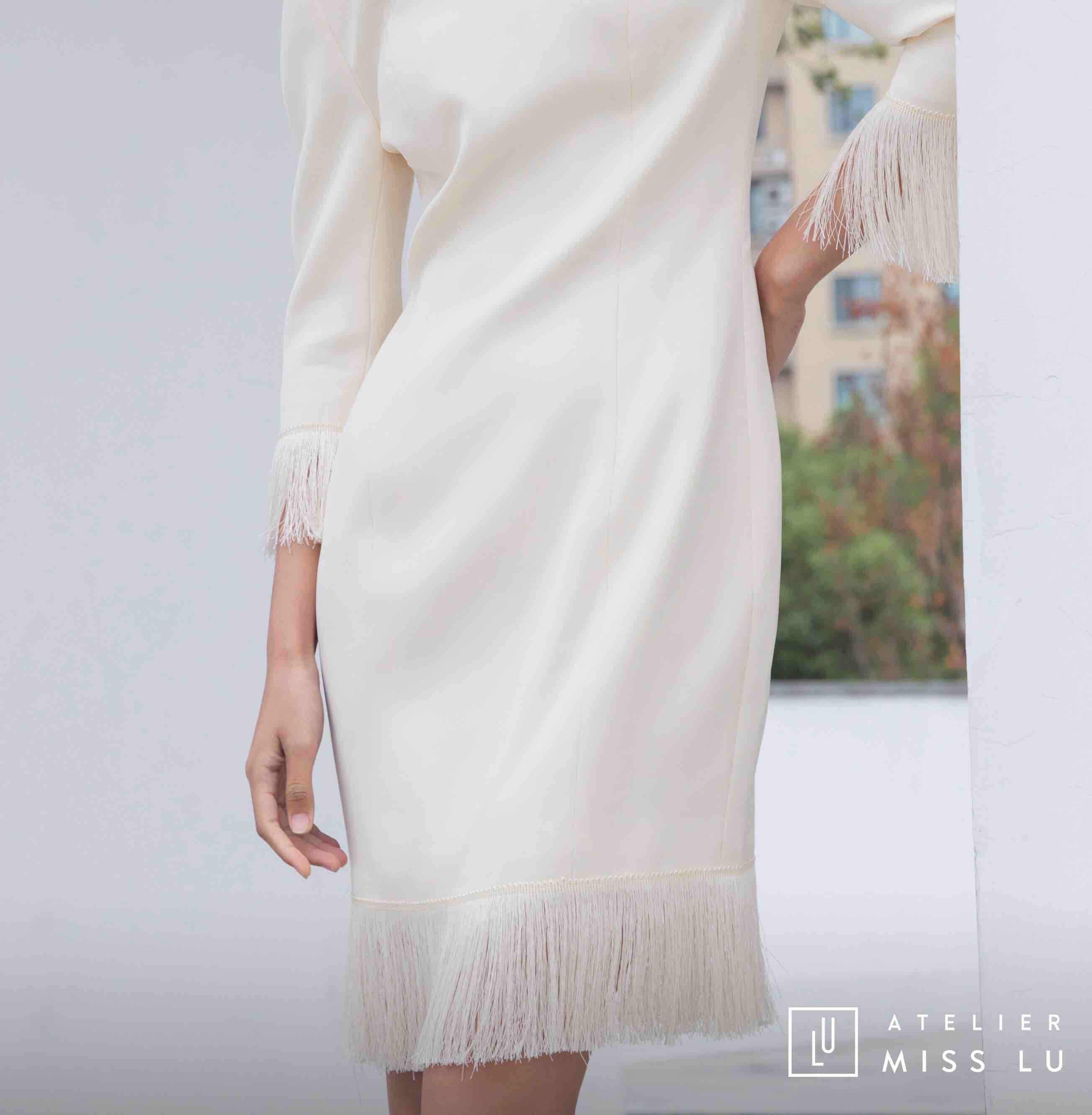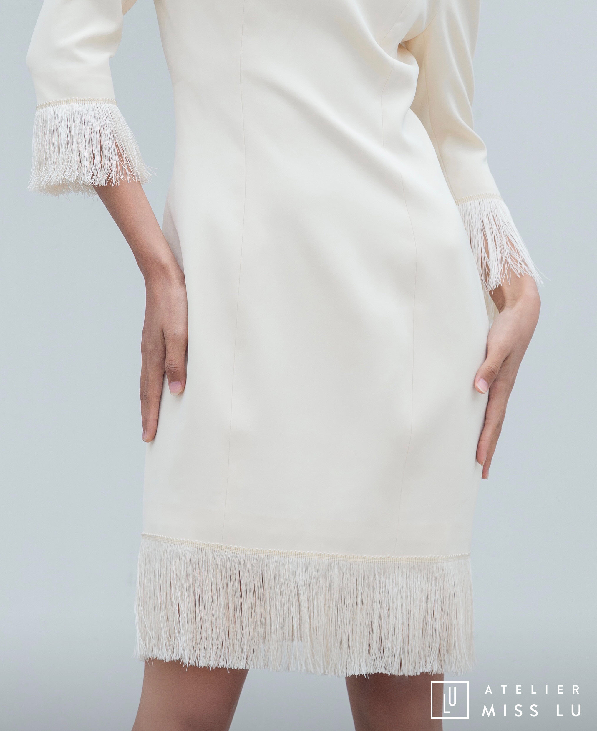 AtelierMissLu / Hera-黑色袖口下摆流苏装饰连身裙