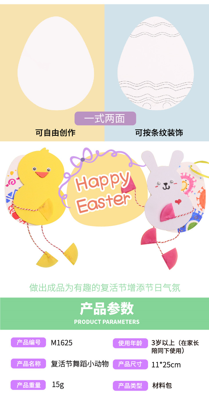 复活节舞蹈小鸡小兔 diy儿童制作材料包幼儿园绘画 手工diy舞蹈小鸡小兔儿童制作材料包幼儿园绘画
