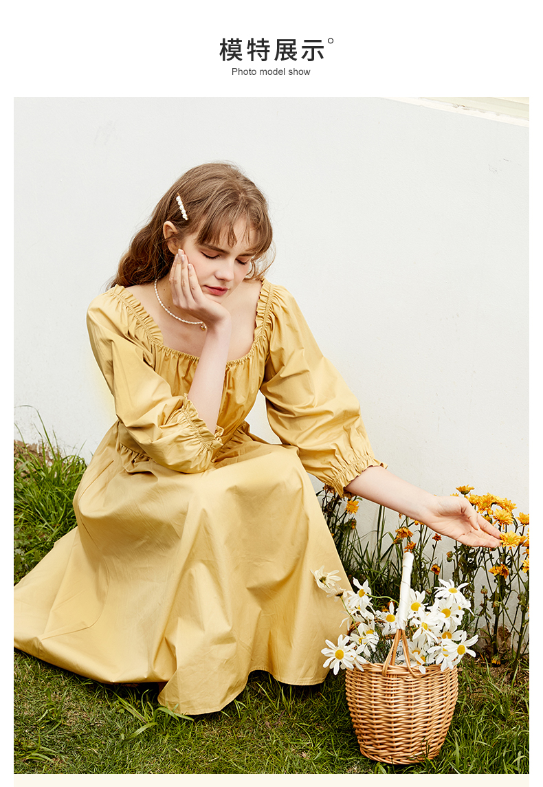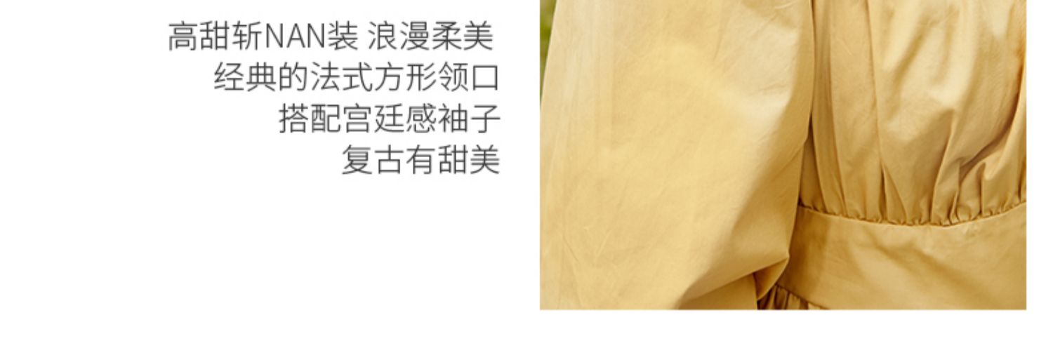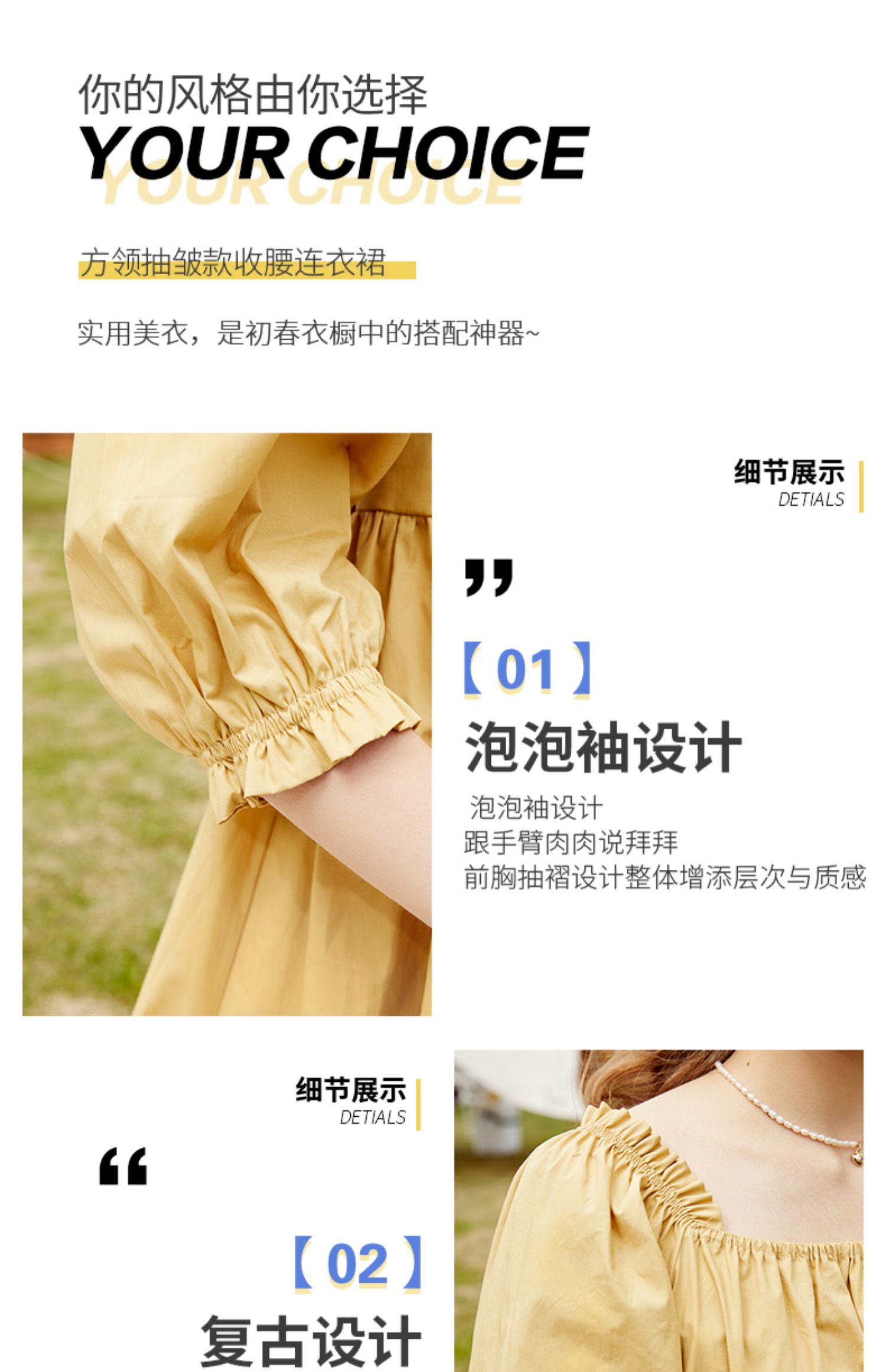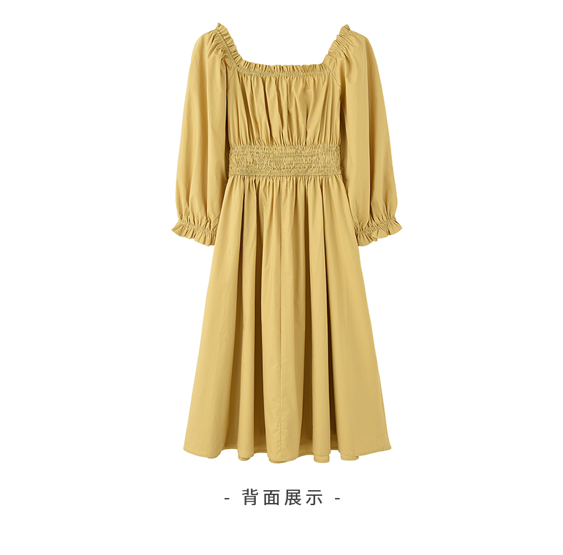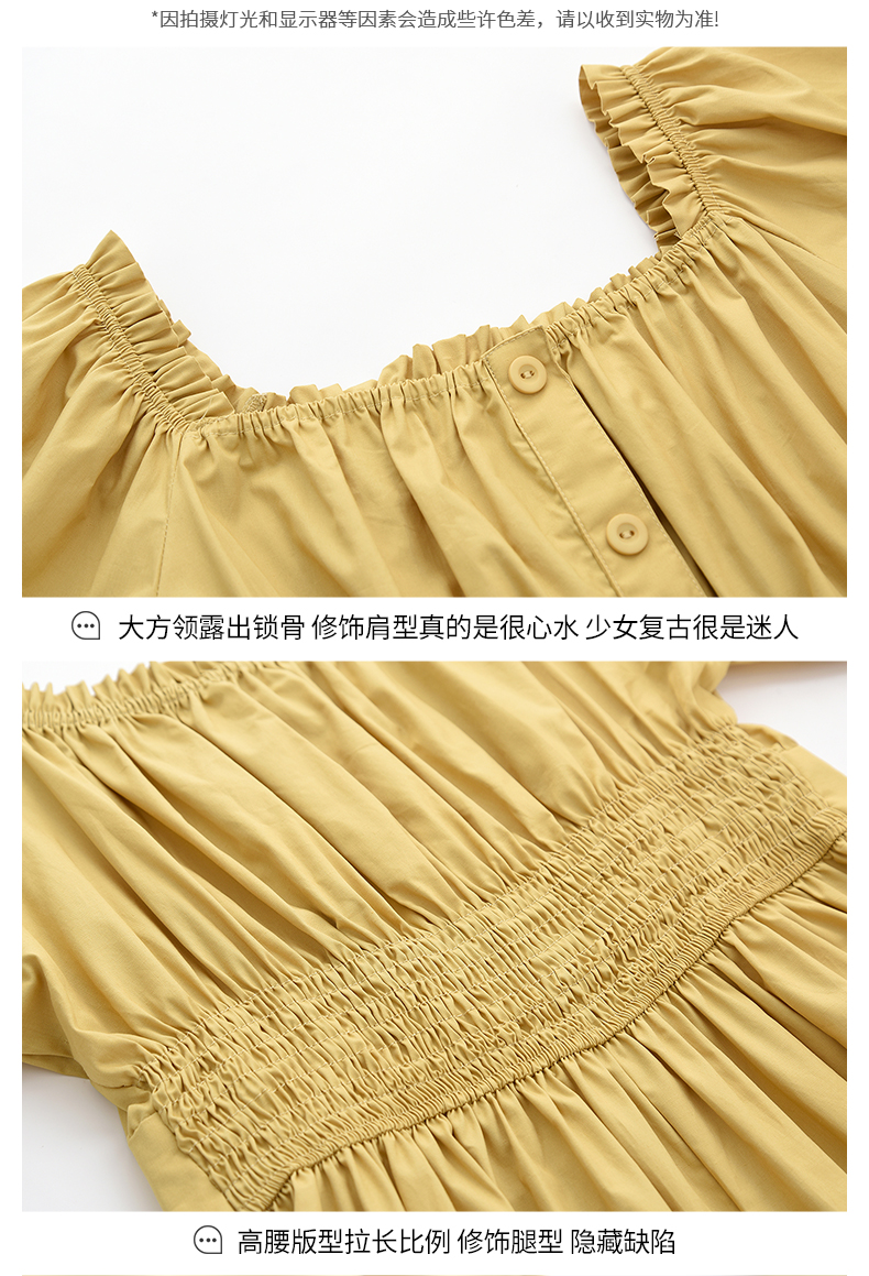 【新品】2021年夏季新款法式气质方领泡泡袖连衣裙中长款超仙气温柔风长裙