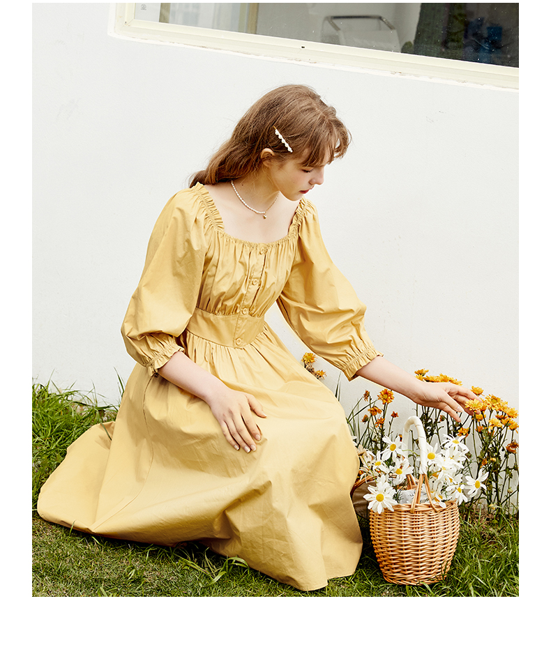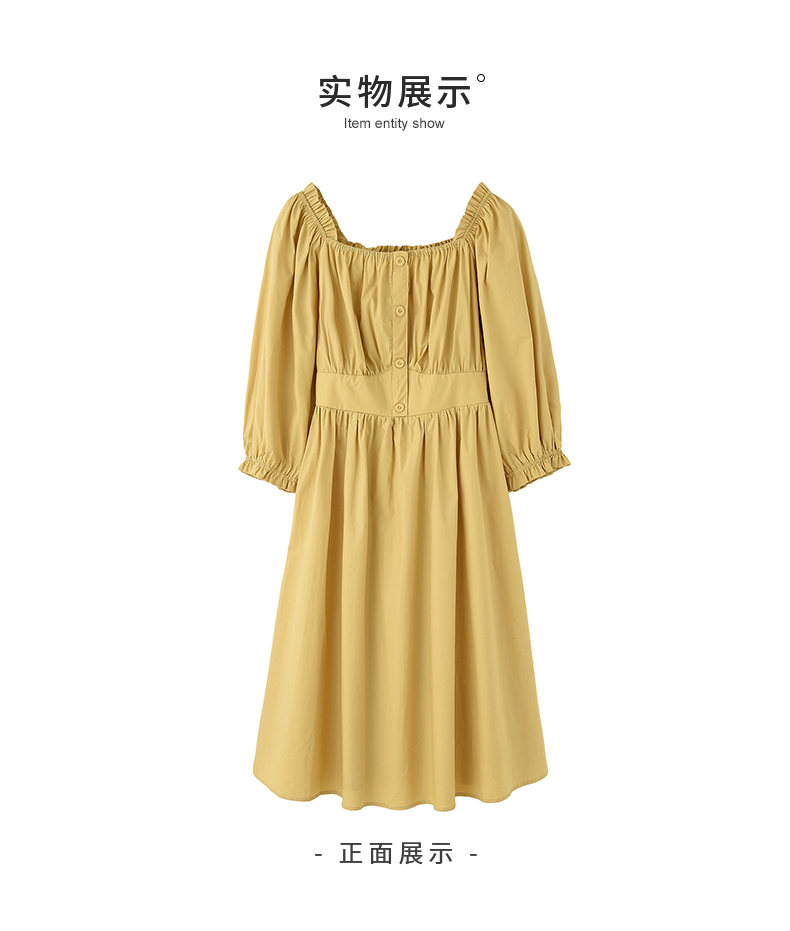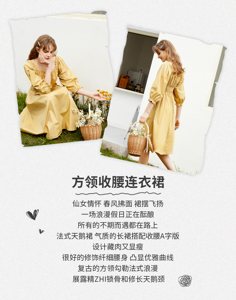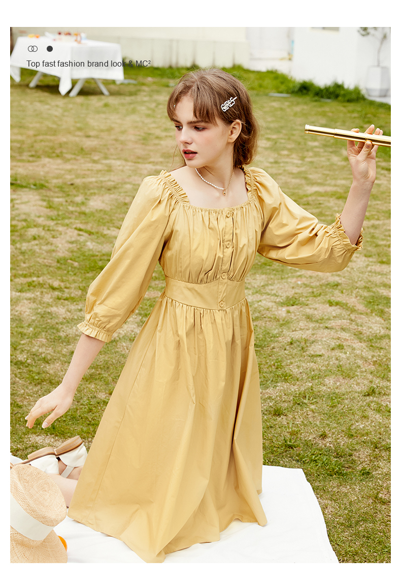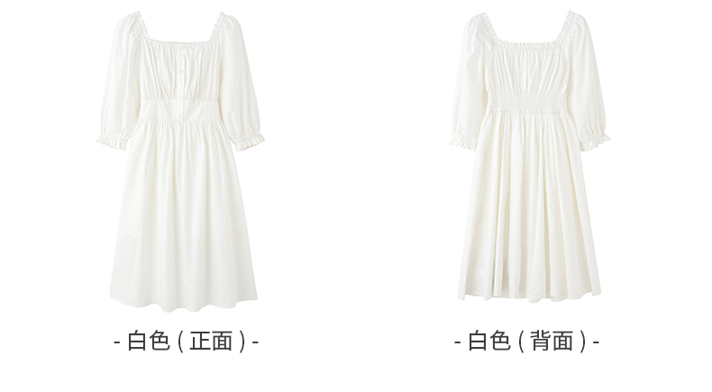 【新品】2021年夏季新款法式气质方领泡泡袖连衣裙中长款超仙气温柔风长裙