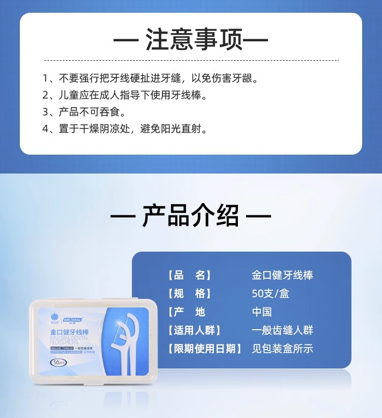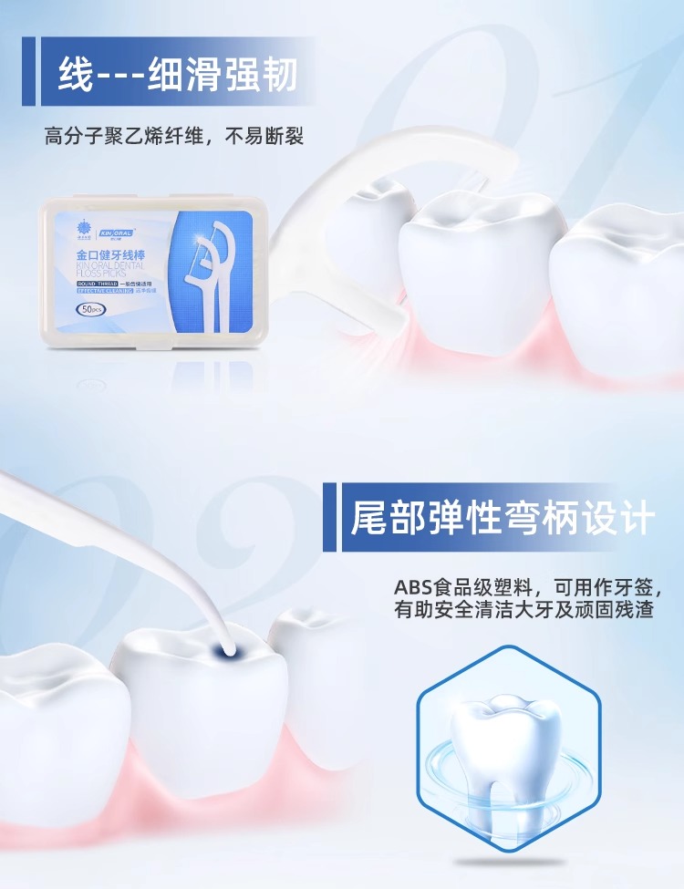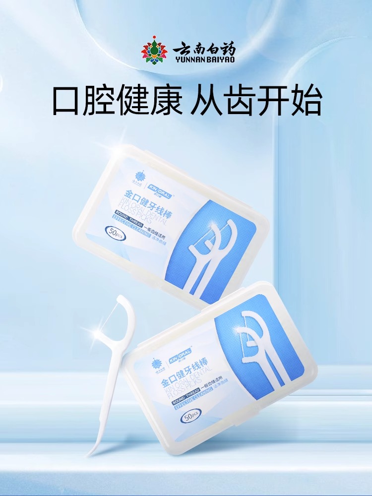 【官方正品】云南白药金口健牙线棒50只便携随身强韧细滑大容量家庭装一次性